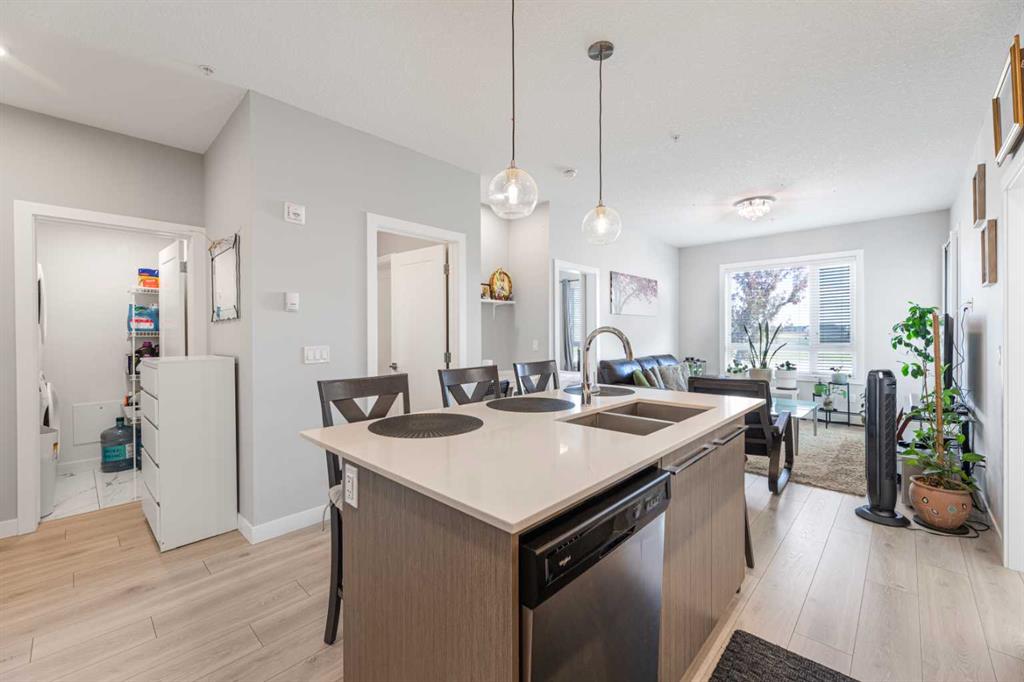Welcome to this pristine 2 bedroom, 2 bathroom corner apartment that comes with titled underground parking. This unit is one of the largest plans in the complex and is very sought after! As you enter, you'll notice the meticulous care the current owner has invested to maintain its new condition. Situated on the main floor, it offers the quietude of having no adjacent neighbors. The kitchen boasts floor-to-ceiling cabinetry, providing ample storage and a large island with eating area. The stainless steel appliances are in like-new, undamaged condition and the stove was recently upgraded. Luxury Vinyl Plank flooring and ceramic tiles grace the bath and laundry areas. The living room is welcoming with with an upgraded balcony sliding screen door for bug free enjoyment. The laundry room offers additional storage, and the machines are well-maintained. The complex is an oasis featuring a garden area for those who enjoy growing their own vegetables. There is party room for events, a theater room in building 2000, and a full gym, spin and yoga studios, and a pet spa in building 1000. Ample visitor parking is available. The building is Air BnB friendly for those looking to use for short term rental. Ensure you don't miss out on this exquisite apartment – book your viewing today!
