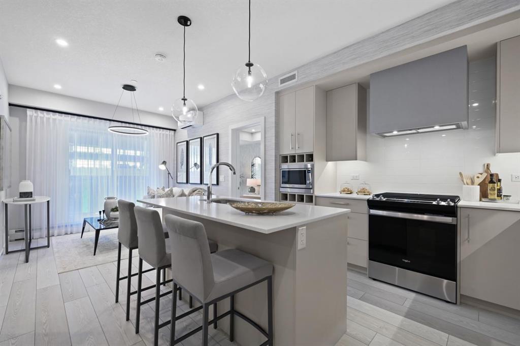 Welcome to Mondrian, a modern 2-Bedroom plus den condo in the heart of West District, where contemporary living meets ultimate convenience. This charming residence is designed to offer the perfect balance of comfort, style, and functionality, ideal for those looking to make the most of urban living. As you step into the open-concept living space, you’ll immediately appreciate the sleek kitchen with premium appliances and plenty of storage—perfect for cooking and entertaining. The inviting living area flows seamlessly onto a private balcony, offering the ideal spot to enjoy your morning coffee or unwind after a long day. Both bedrooms are designed with your comfort in mind, while the versatile den provides an ideal space for a home office, reading nook, or extra storage. With in-suite laundry and window coverings throughout, this home ensures everyday convenience and comfort. Plus, the unit includes 1 underground parking spot, providing secure and easy access to your vehicle. At Mondrian, exceptional amenities enhance your lifestyle. Take advantage of the stunning rooftop terrace, where you can relax on the seating areas and enjoy beautiful views of West District—whether you’re socializing or enjoying a quiet moment to yourself, this space is perfect for both. Located just steps from trendy shops, exciting dining options, and green spaces, you’ll have everything you need right at your doorstep, all within one of Calgary’s most desirable neighbourhoods. Move-in ready and waiting for you, this condo at Mondrian is the ideal place to start your next chapter. Don’t miss out on the opportunity to call this stunning home yours. Live Better. Live Truman.
