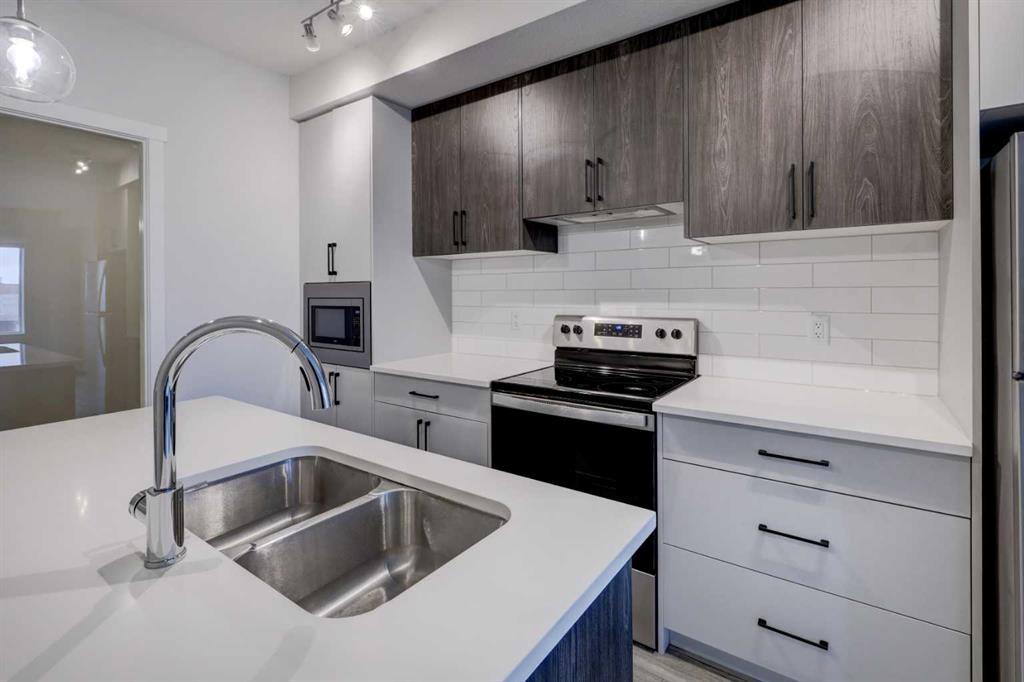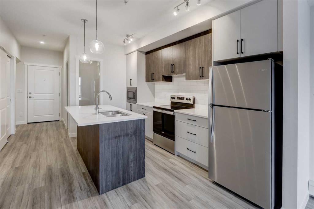 Welcome to refined living in the heart of Sage Hill. This beautifully appointed 1 bedroom + den residence offers an exceptional blend of modern design, comfort, and everyday convenience, all within a well-maintained and highly desirable complex. Thoughtfully designed with an open-concept layout, this home showcases a stylish kitchen featuring quartz countertops, sleek full-height cabinetry, stainless steel appliances, and a generous island—perfect for entertaining or casual dining. The living area is both elegant and inviting, highlighted by large windows that flood the space with natural light and lead to your private balcony, an ideal setting for morning coffee or unwinding at the end of the day. The spacious primary bedroom provides a tranquil retreat with ample closet space and a serene ambiance. The versatile den adds incredible functionality, making it perfect for a sophisticated home office, reading nook, or guest space. A well-appointed 4-piece bathroom, along with in-suite laundry and contemporary finishes throughout, further enhances the home’s appeal. This unit also includes a titled parking stall and offers the ease of low-maintenance living, making it an excellent opportunity for professionals, first-time buyers, or savvy investors seeking a turn-key property. Perfectly situated, you’re just moments from scenic walking paths, parks, and an array of nearby amenities including grocery stores, restaurants, cafes, and fitness options. With quick access to major roadways, commuting is effortless while still enjoying the charm and tranquility of one of NW Calgary’s most sought-after communities. Experience elevated condo living in Sage Hill—where style, comfort, and location come together seamlessly.