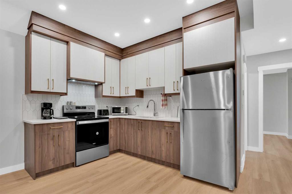 This exquisite property offers over 1600 square feet of meticulously designed living space, featuring a fully finished basement with a separate/private entrance. Elegant and sophisticated, fully upgraded home! It is ideally located in a prime location on a quiet treelined street within walking distance to schools. This stylish, contemporary home with an open concept floor plan is bathed in natural light highlighting the high-end finishes, gleaming floors and lavish designer style. The bright living room overlooks the street with a casually elegant vibe that invites you to sit back and relax. Culinary adventures are inspired in the chef’s dream kitchen featuring premium stainless-steel appliances including an electric stove, a large island, a plethora of cabinets and over looking to the adjacent dining room. Off the rear entrance is a handy mudroom with built-ins to hide away bags, jackets and shoes. Ascend the beautiful staircase illuminated by elegant lighting to the upper floor. The primary bedroom is an opulent oasis with an expansive walk-in closet and a luxurious ensuite boasting the vanity, a deep soaker tub and an oversized shower. Both additional bedrooms on this level are generously sized and share the 4-piece main bathroom. An upper-level laundry room further adds to your convenience. Step down to the fully finished basement with a separate entrance. A 4th bedroom and another full bathroom with separate laundry finishes the basement. The cherry on top is the insulated and drywalled double detached garage, which safely keeps your vehicles out of the elements. Electric car charger point can be added to the garage. This exceptional home is in a phenomenal inner-city location, perfect for your active lifestyle, walk to transit, schools, parks and recreation. Don't wait and call your favourite realtor to schedule a private viewing.