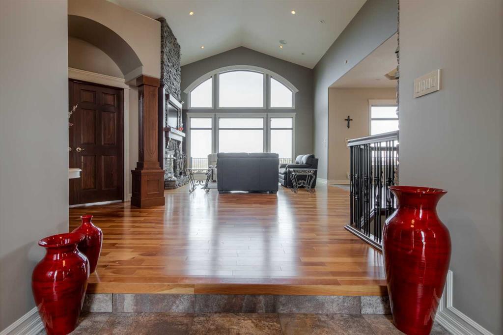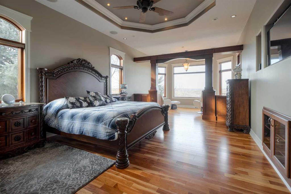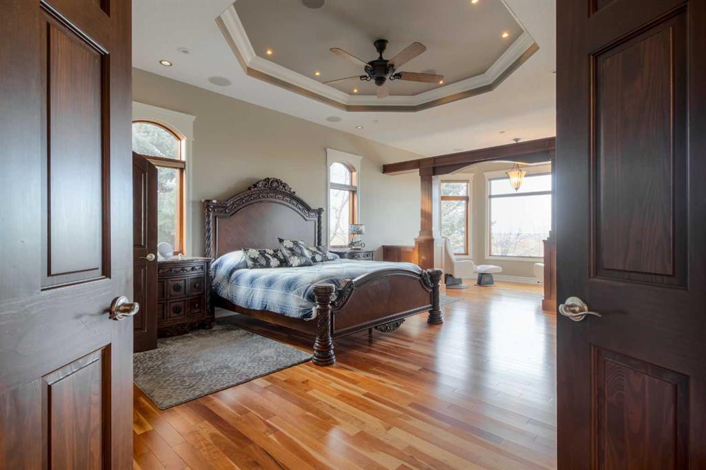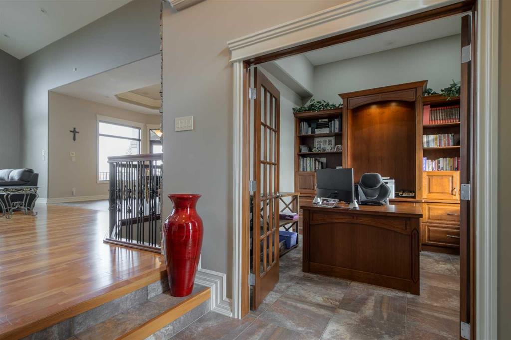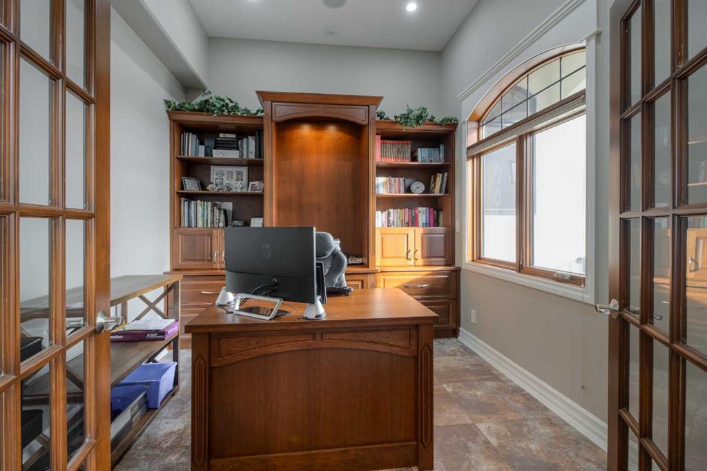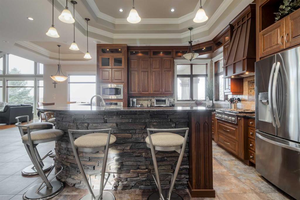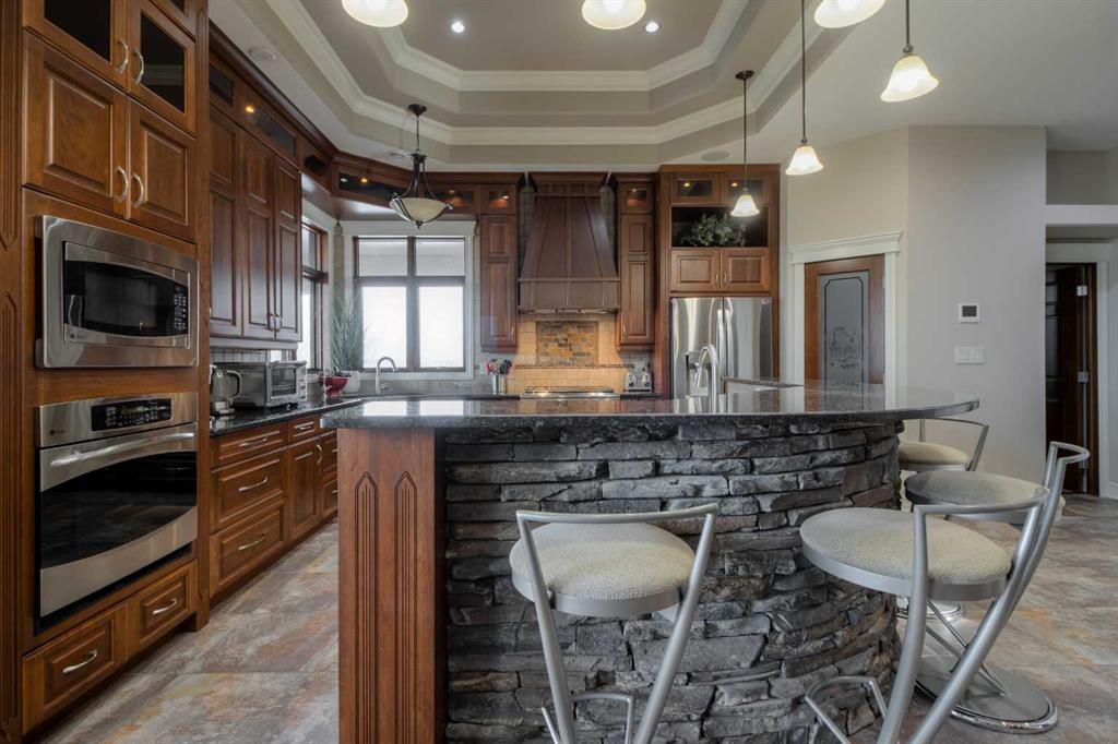 Welcome to this exceptional custom-built 2485 square foot Bungalow, perfectly positioned in a quiet cul-de-sac with breathtaking coulee views and a fully developed walk out basement. Thoughtfully designed with both luxury and functionality in mind, this home offers 4 spacious bedrooms plus a private office, main floor laundry room, an exercise room, and four beautifully appointed bathrooms, including a stunning five-piece en-suite retreat. The open concept main living area is ideal for everyday living and entertaining, while the lower level features a dedicated recreational space perfectly suited for the pool table or quilting table and a separate wet bar for hosting the guests. Triple pane windows, and radiant heat throughout the house and garage ensures year round comfort, complemented by a smart home security system for peace of mind. Car enthusiasts will appreciate the triple attached garage designed to accommodate a vehicle lift, while outdoor living is elevated with a professionally landscaped yard (has it's own running stream) two decks to enjoy the views from, and a private hot tub - perfect for relaxing while taking in the serene surroundings. There is a designated wine room, a water feature wall that runs from upstairs to down, beautiful staircase, and tons of storage throughout the home and garage. A rare combination of craftsmanship, location and lifestyle, this remarkable home offers refined living in one of the areas most sought-after settings.
