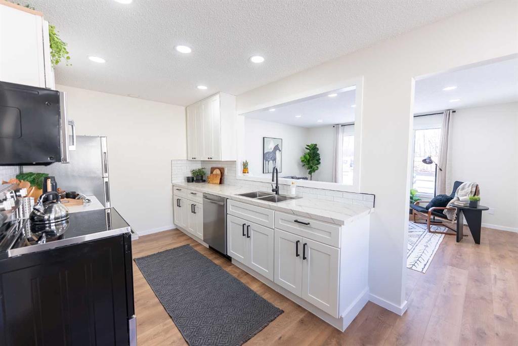 SUITE SOPHISTICATION! Bring your whole family to this gorgeous, fully-renovated, five bedroom/two bath home. It is complete with TWO new kitchens with superior quality, crisp-white shaker cabinets. CUSTOM epoxy countertops upstairs and butcher block countertops downstairs. Two separate entrances, two sets of new Kitchen appliances(except basement stove) and two laundry areas with washers and dryers. All new LUXURY VINYL PLANK flooring. NEW BATHROOMS, NEW TRIM, NEW BASEBOARDS, NEW DOORS, JACKED UP AND UPGRADED LIGHTING IN LIVING ROOM AND KITCHEN WITH FANTASTIC BRIGHT POT LIGHTS. HUGE living room with an EXPANSIVE WEST-FACING WINDOW FOR LOTS OF SUNLIGHT. NEW FRONT SIDING THAT REALLY MAKES THIS HOME STAND OUT ON THIS BLOCK. EXTRA insulation has been blown in in the attic for extra energy efficiency. Large fenced yard with two sheds! TONS of off-street parking. Located across from a Greenbelt, close to schools, shopping, restaurants, and coffee shops. There’s nothing to do here but move in and enjoy. It’s great home isn’t it! Shouldn’t it be yours?