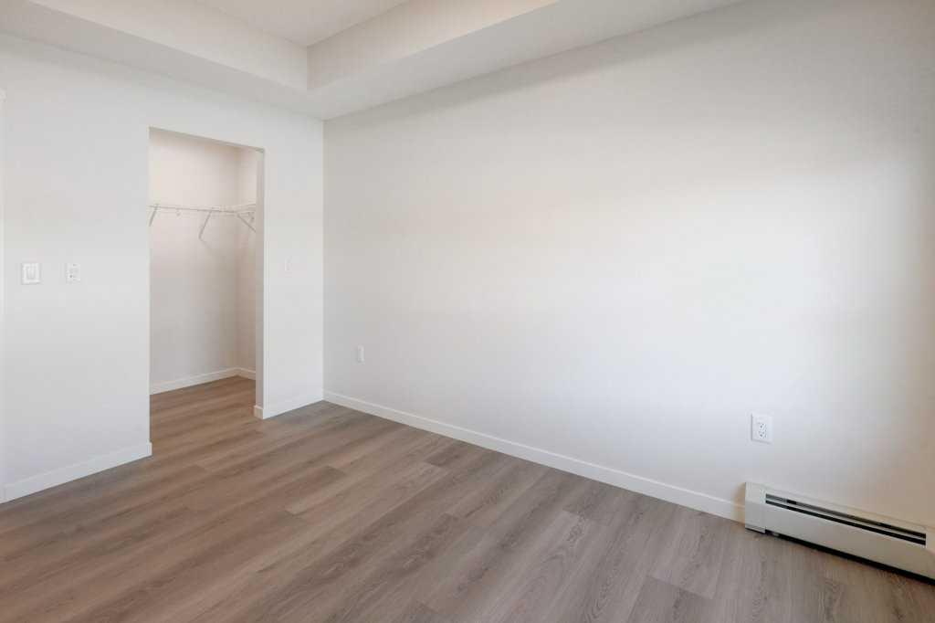 INTRODUCING GLACIER RIDGE, IN BEAUTIFUL NORTHWEST CALGARY. BUILT BY CEDARGLEN LIVING, WINNER OF THE Customer Insight BUILDER OF CHOICE AWARD, 6 YEARS RUNNING! BRAND NEW "GR04" unit with high-spec features. You will feel right at home in this well thought-out, 590.72 RMS sq.ft. 1 bed, 1 bath home with open plan, 9' ceilings, LVP flooring throughout (NO CARPET), Low E triple glazed windows, BBQ gas line on the patio, Fresh Air System (ERV), A/C rough-in, and so much more. The kitchen is spectacular with full height, two tone cabinets, quartz counters, upgraded bank of drawers for pots and pans, undermount sink, rough-in water line to the fridge and S/S appliances. The island is extensive with built in flush breakfast bar, which transitions into the spacious living area, perfect for entertaining. The spacious primary bedroom has a large bright window (triple pane windows) and sizeable walk-in closet. Right beside your bedroom is a 4pc bath with quartz counters, upgraded tiles to the ceiling, and undermount sink. Nearby is the spacious laundry/storage room, this is a must see (washer & dryer included). Highlights include: Hardie board siding, designer lighting package, sound reducing membrane to reduce sound transmission between floors, clear glass railing to balconies and 1 titled underground parking stall included. A once in a lifetime community in Northwest Calgary. Framed by views of the Rocky Mountains and distinguished by natural coulees that cross the land, Glacier Ridge offers a rare chance for families to live in a new community. PET FRIENDLY COMPLEX, IMMEDIATE POSSESSION AVAILABLE AND DON'T FORGET TO CHECK OUT THE VIRTUAL TOUR.