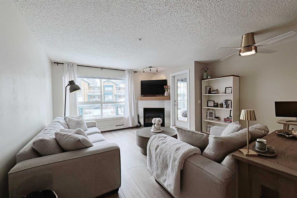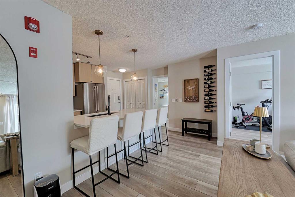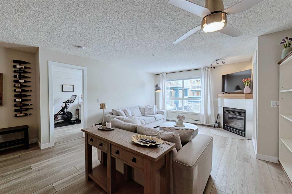 Welcome to Laurel House At The Park where this unit showcases an absolutely stunning renovation and courtyard views! Offering 940 SF of well-designed living space with dual master suites for ultimate functionality. The bright and open layout features vinyl plank and tile flooring throughout, a gorgeous kitchen with updated stainless steel appliances, timeless maple cabinetry, waterfall Quartz countertops, breakfast bar and undermount sink with modern black faucet. The living room has a cozy gas fireplace and offers access to the large, sunny WEST facing balcony with courtyard views. Both primary suites are generously scaled and offer ample closet space each with their own ensuite (4 piece ensuite and a 3 piece ensuite) with quartz countertops and updated faucets. Don't overlook the insuite laundry, secure underground and titled parking, assigned storage unit, bike storage, on-site gym and party/rec room. Pets are welcome with approval. The complex backs onto extensive walking paths near Mount Royal University, and the surrounding area continues to grow with an array of amenities and restaurants, providing plenty of dining and lifestyle options. Book your showing today!