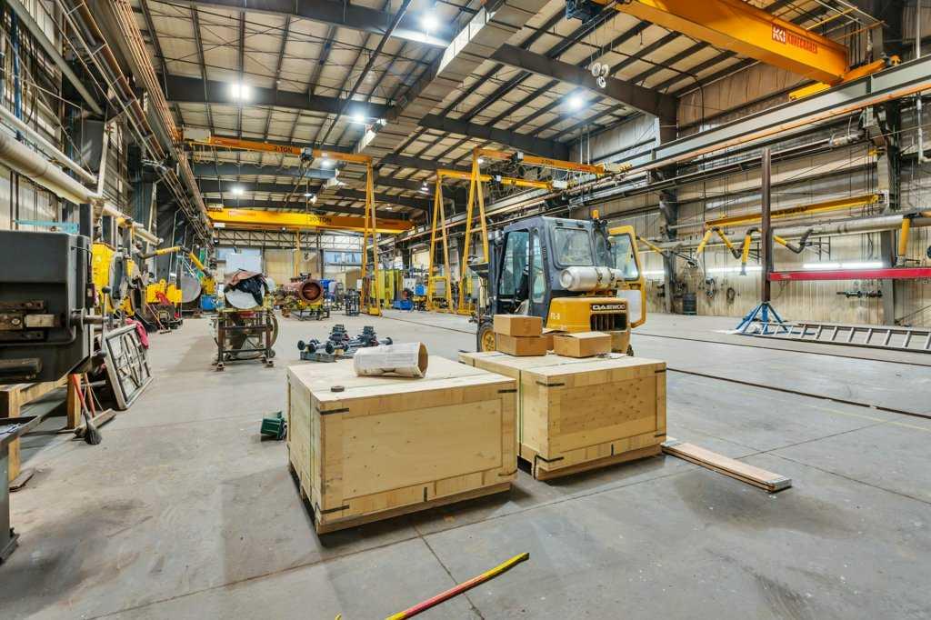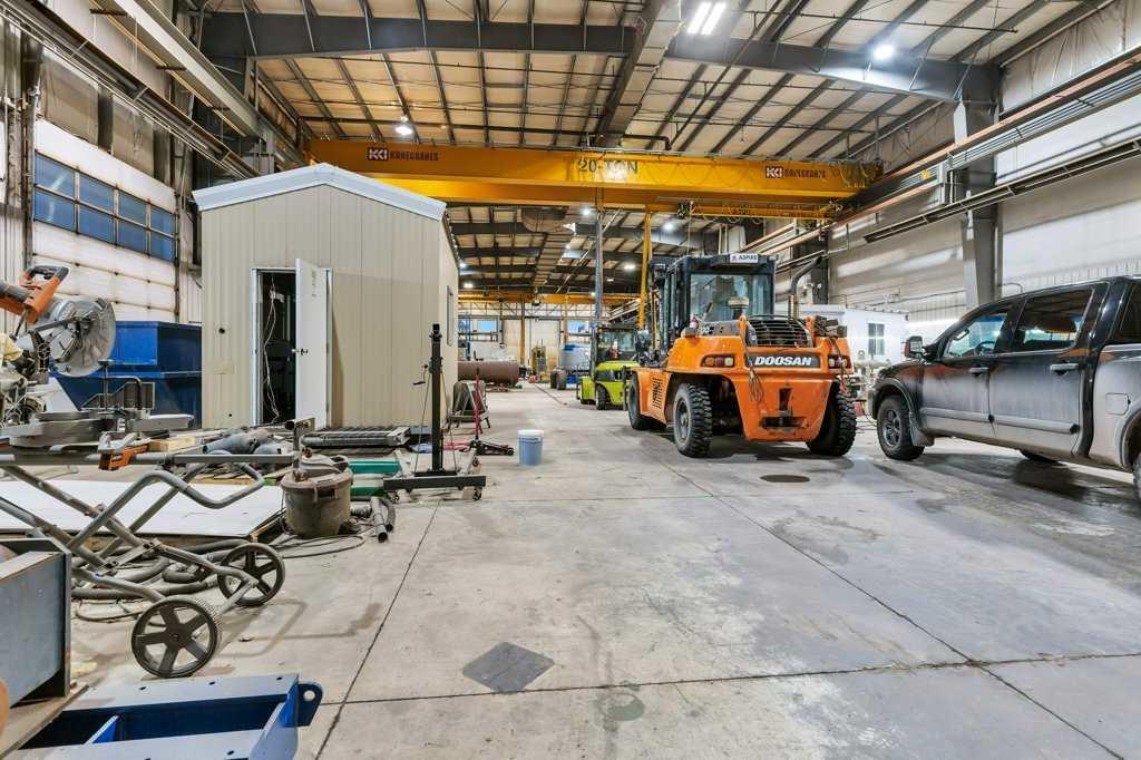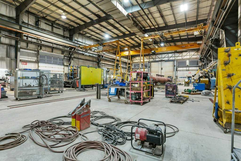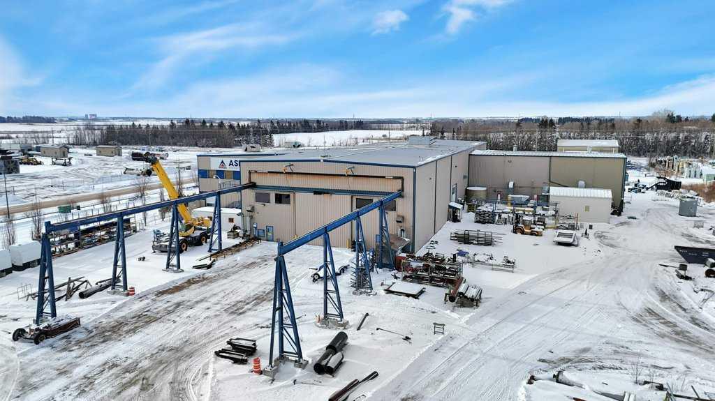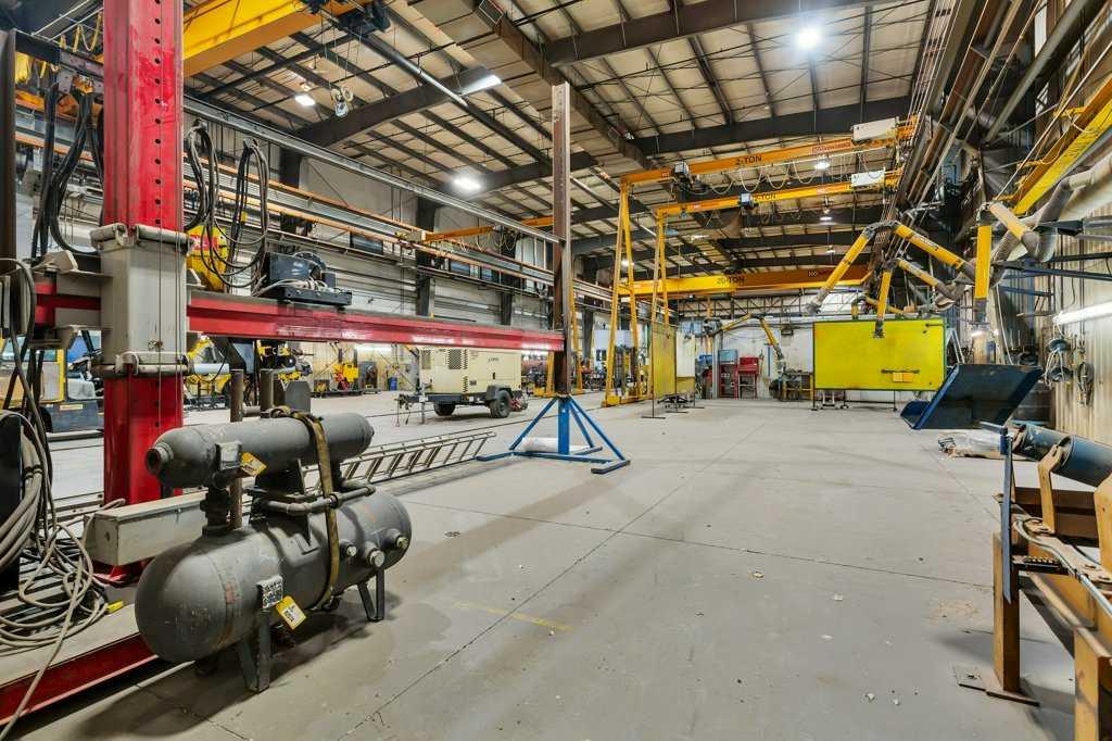 Now offering "For Lease" in the fast paced and quickly expanding area of Gasoline Alley next to the south end of Red Deer, AB. A well maintained and equipped 45,553 sqft office / shop / manufacturing facility on approximately 5 acres. 2 story multiple office area and an attached 29,200 plus sqft shop, detached cold storage building, sandblasting building, and storage tent. The shop consists of a 10 ton and 20 ton crane on the east and west ends of the shop that are capable of travelling to the exterior of the shop on a crane rail. (4) 2 ton cranes located throughout the interior of the shop. Fume extraction systems for welding, compressed air systems and floor drain / sump system. Large paint bay in the main shop with a steel partition door and a smaller detached heated enclosed paint bay outside. 22' wide x 18' high bay doors in the main shop with various other overhead doors. 120/240/480/600 volt availability. Centralized make up air unit. 6 zone radiant heaters. Lunch rooms, locker room areas, multiple washrooms. Lease rates are as follows: Office space $15.00 per sqft plus $4.50 per sqft additional rent. Shop space $12.00 per sqft plus $4.50 per sqft additional rent. Detached heated paint bay $12.00 per sqft plus $4.50 per sqft additonal rent. Cold storage building, sandblasting building and tent $5.00 per sqft.