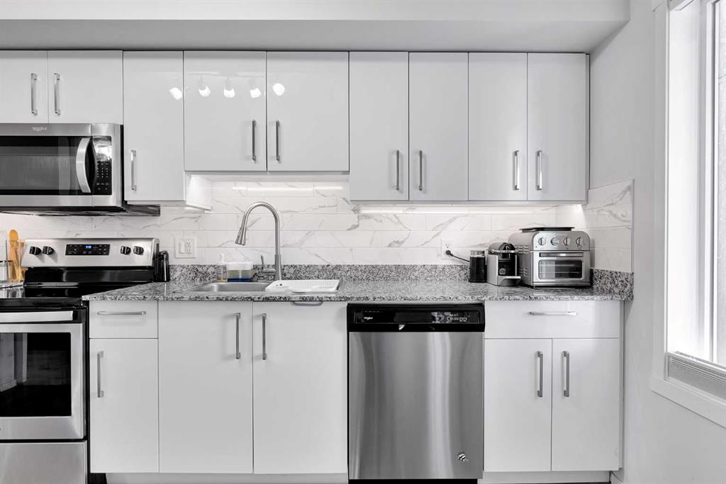 What a Gem! Yes - this one is as good as it looks! This BRIGHT and well-maintained 2-bedroom, 1-bath condo is located on the second floor and features UPGRADED LVP FLOORING (2023) and a functional open-concept layout that maximizes space and NATURAL LIGHT. The 2-bed layout offers flexibility, with the second bedroom also ideal as a home office or den. All of this comes with EXTREMELY LOW CONDO FEES! Enjoy your PRIVATE north-facing BALCONY, perfect for morning coffee or evening relaxation. The kitchen is finished with GRANITE COUNTERTOPS, SOFT-CLOSE CABINETS, upgraded STAINLESS-STEEL APPLIANCES, and a NEW TILE BACKSPLASH with UNDER-CABINET LIGHTING (2023). Recent updates include FRESH PAINT and a NEW WASHER (2023). This secure building offers UNDERGROUND PARKING, VISITOR PARKING, plus amenities including a FITNESS CENTER, COMMON/PARTY ROOM, and an ON-SITE DAYCARE (fee-based)! Located near schools, shopping and major routes! Hurry Up!