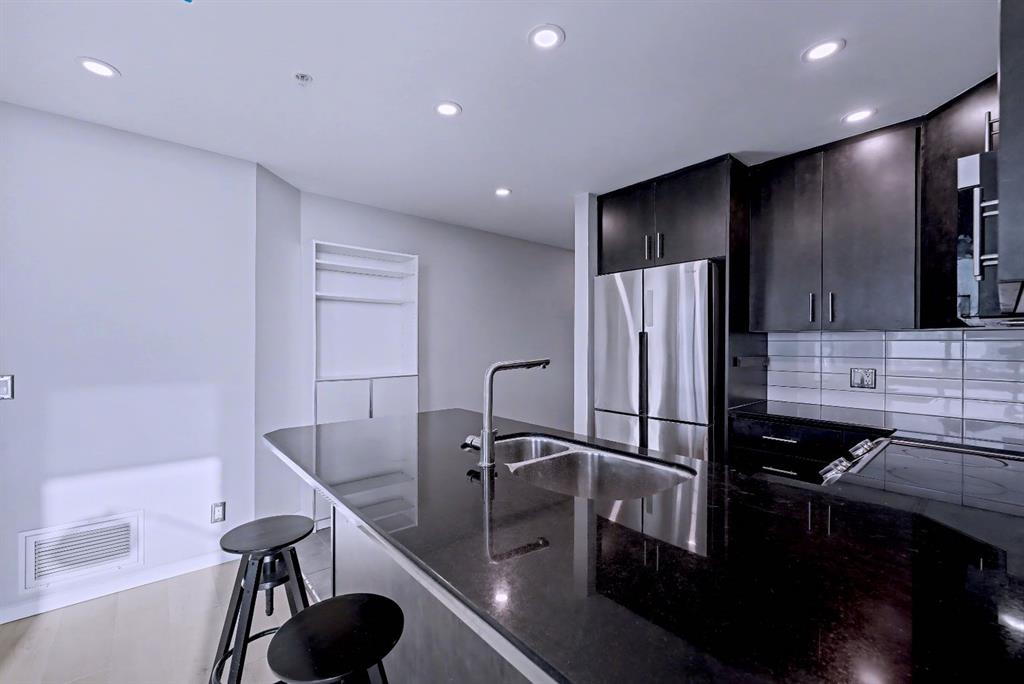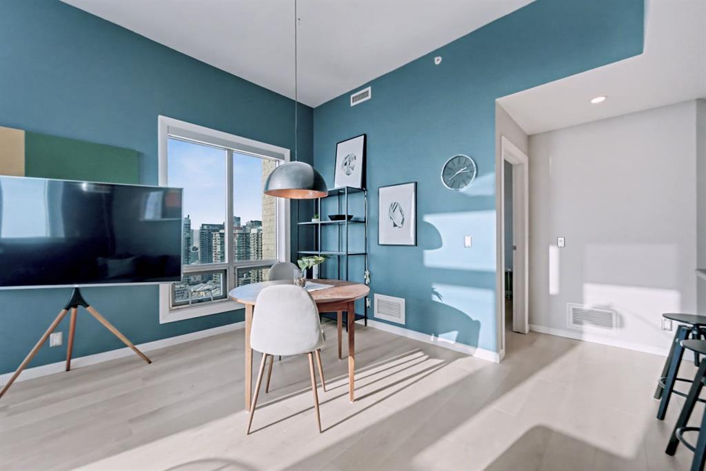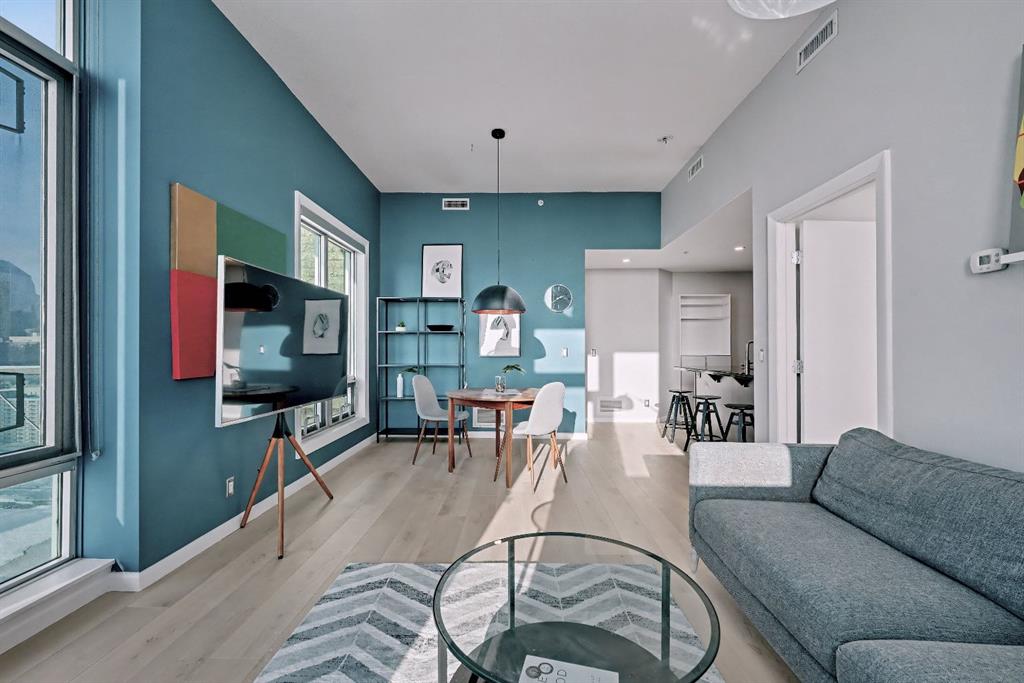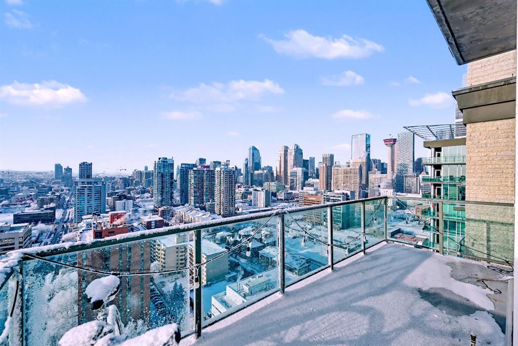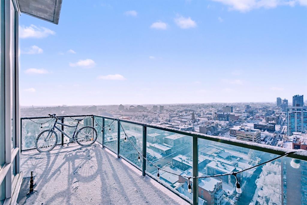 Upgraded 2 bedroom, 2 bathroom condo in the heart of Victoria Park, offering southwest corner 22nd-floor panoramic views of the Stampede Grounds, Elbow River, MOUNTAINS, and downtown. Bright, open-concept layout with OVER 10’ CEILINGS, FLOOR-TO-CEILING WINDOWS filling the space with natural light, updated paint and flooring, and a modern kitchen featuring granite counters, full-height cabinetry, white tile backsplash, and updated stainless steel appliances. Bedrooms on opposite sides include a primary with 4-piece ensuite, plus additional storage for convenience. Enjoy a private patio with GAS BBQ HOOKUP—perfect for outdoor entertaining. In-unit laundry, STORAGE, heated secured UNDERGROUND TITLED PARKING with bike rack, and access to a fitness facility, sauna, hot tub, and social room. Steps to C-Train, shopping, restaurants, and the Scotiabank Saddledome.