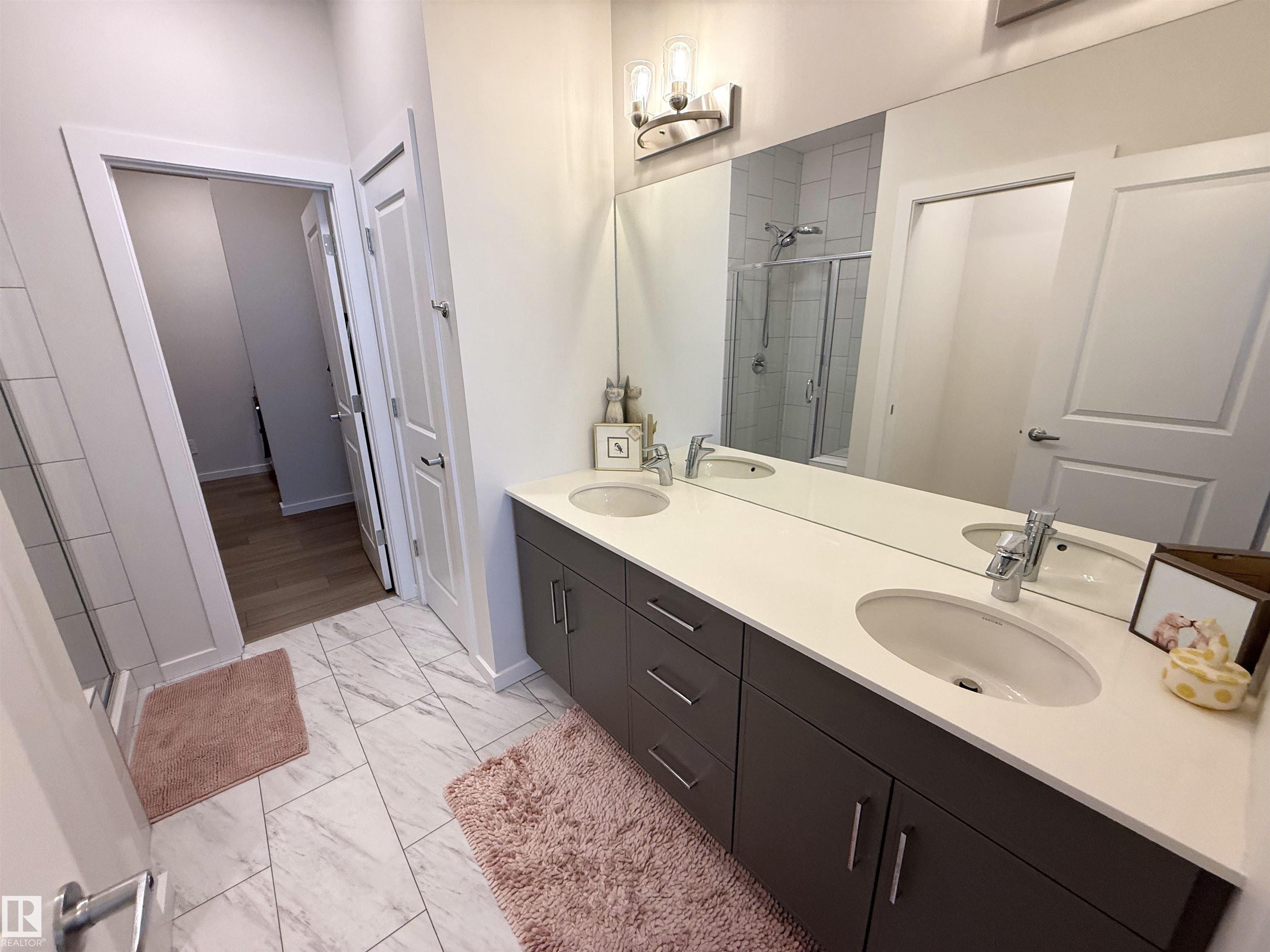 Beautiful 2022-built half-duplex bungalow with attached double garage (19Wx22L, heated, insulated) in Rosenthal. This 1,390 sq ft (plus full basement) home features central air conditioning, Chameleon built-in vacuum system, vinyl plank flooring and 11’ ceilings. On the main: gas fireplace in the living room, bright dining area and gourmet kitchen with eat-up island, quartz countertops and corner pantry. The owner’s suite offers a 4-pc ensuite and walk-through closet that connects to the main floor laundry room. Also on the main: 2-pc powder room off the mudroom. The fully finished basement offers a spacious family room with wet bar, one bedroom, 4-pc bathroom and a large storage room. Outside: HUGE landscaped pie-shaped lot with a two-tier deck and gazebo. Located near walking trails and ponds, 5 minutes to Costco, 10 to WEM, and with easy access to Whitemud Drive & Anthony Henday. A fantastic opportunity!