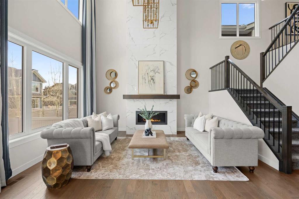 STEPS TO THE PARK | SOUTH BACKYARD | FULLY UPGRADED | VAULTED CEILING Open House Saturday April 18, 2:30-4:30pm. This is an exceptional custom-built Albi Home where every element comes together perfectly. With over 3,600 sq ft of living space and more than $100k in upgrades, the Savona model offers a stunning 18 ft vaulted ceiling, expansive kitchen, main floor office/flex space and an inviting upstairs bonus room. Ideally situated on a quiet street, you are just steps to a park as well as a playground with a skating rink and a fire pit in the winter time. The whole family will enjoy the year-round fun right outside your door. Walking distance to St. Joan of Arc and close to other top-rated schools including West Springs, West Ridge, CFIS, Webber, Rundle and Calgary Academy. A spacious front foyer greets you and leads to the living room that makes a breathtaking impression. Soaring vaulted ceilings and sunny south exposure fill the space with natural light, creating an uplifting and airy space. The kitchen has been beautifully upgraded with built-in appliances - Bosch gas cooktop and dishwasher and a 600 cfm hoodfan. The kitchen shines with marble mosaic tiles, natural stone counters, glass upper cabinets and a Blanco silgranit sink. Your family will appreciate the walk-through pantry connecting seamlessly to the mudroom. Upstairs, a well-sized bonus room provides the perfect space for relaxing or play. The primary suite is a true retreat with heated ensuite floors, a tiled shower, soaker tub, dual vanities and a walk-in closet. The two additional upper bedrooms are in their own wing and spacious with walk-in closets and close by to a 5-piece main bathroom with dual vanities and a separated shower area. A professionally finished basement is ready to enjoy with 9 ft ceilings, a built-in bar, ideal open rec space, a 4th bedroom and full bathroom. The home is enhanced with two furnaces for comfort, air conditioning, a backyard shed and an oversized garage with a gas line. Summer months just ahead will be savoured with the sunny south exposure, composite deck and parks just steps away. West Springs is a family friendly community with a wide array of amenities, dining options and grocery stores. Conveniently located with easy access out to the Rocky Mountains, a quick commute into Downtown and Stoney Trail nearby to get around the city. You will love where you live.
