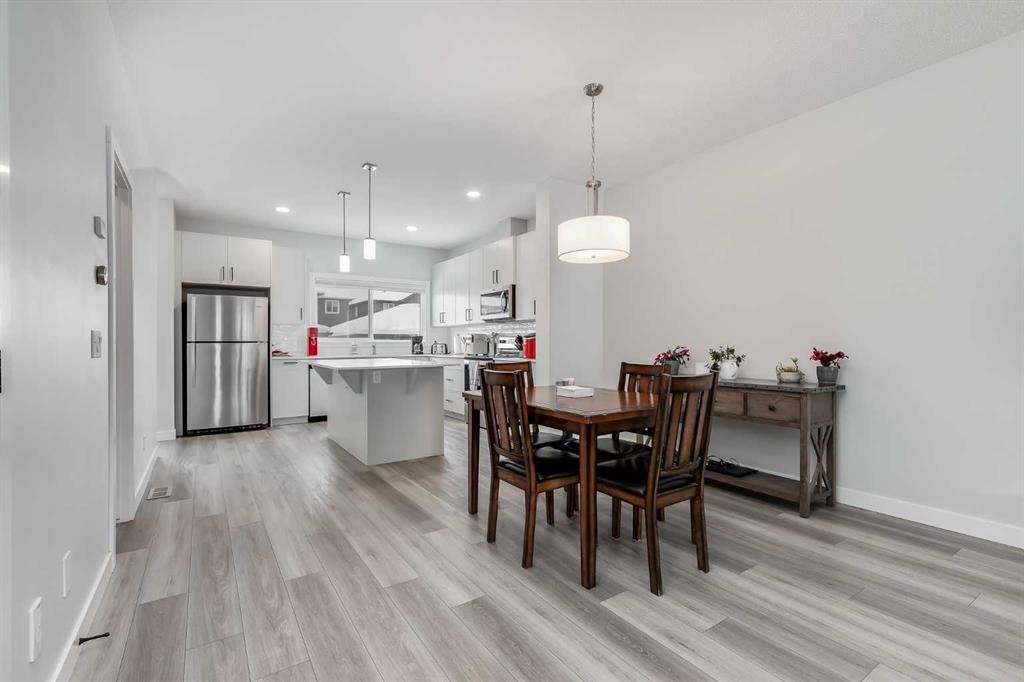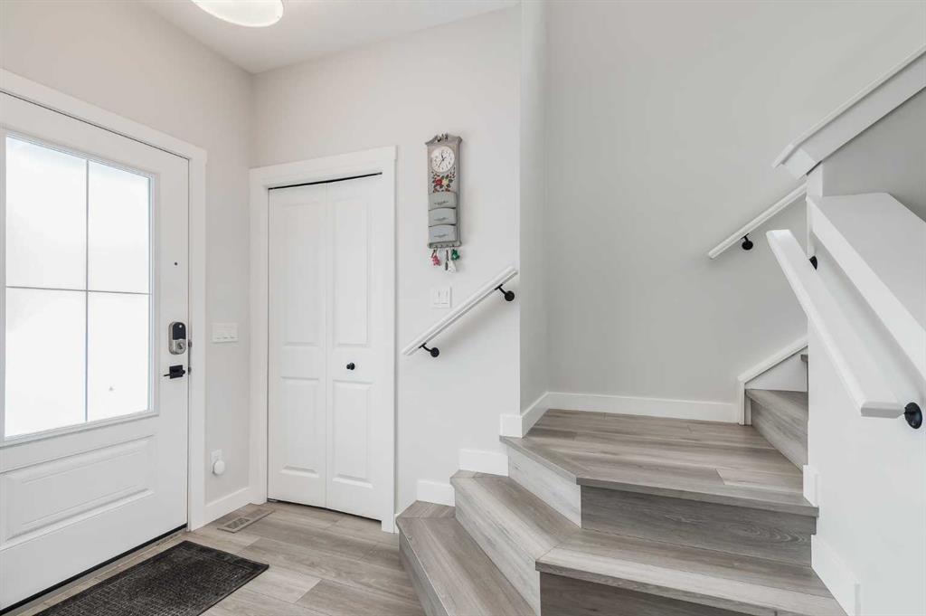 Welcome to Midtown! A centrally situated Airdrie community known for excellent walkability, quick access to everyday amenities, and a welcoming neighborhood feel. Step into this nearly new and beautifully cared for 1,622 sqft home set across two well designed levels that support a modern and comfortable lifestyle. The inviting front porch leads into an open main floor where the kitchen, living, and dining spaces flow easily together. Highlighted by nine foot ceilings, tall upper cabinetry, quartz counters, massive pantry, and direct access to the rear deck and yard. Double Detached Garage is already built for your convenience. The upper level features three roomy bedrooms and a versatile bonus area that works well for quiet downtime or a kids area. Two full bathrooms including a private ensuite and a convenient upper laundry room complete the upper level. A separate side entrance to the basement adds flexibility for future development options tailored to your needs. Midtown is popular for its central pond, community gathering spaces, and pathway network that links to parks, local shops, and restaurants. Come out and see for yourself why Midtown is regarded as one of Airdrie’s desirable communities, and imagine yourself settling into this home.