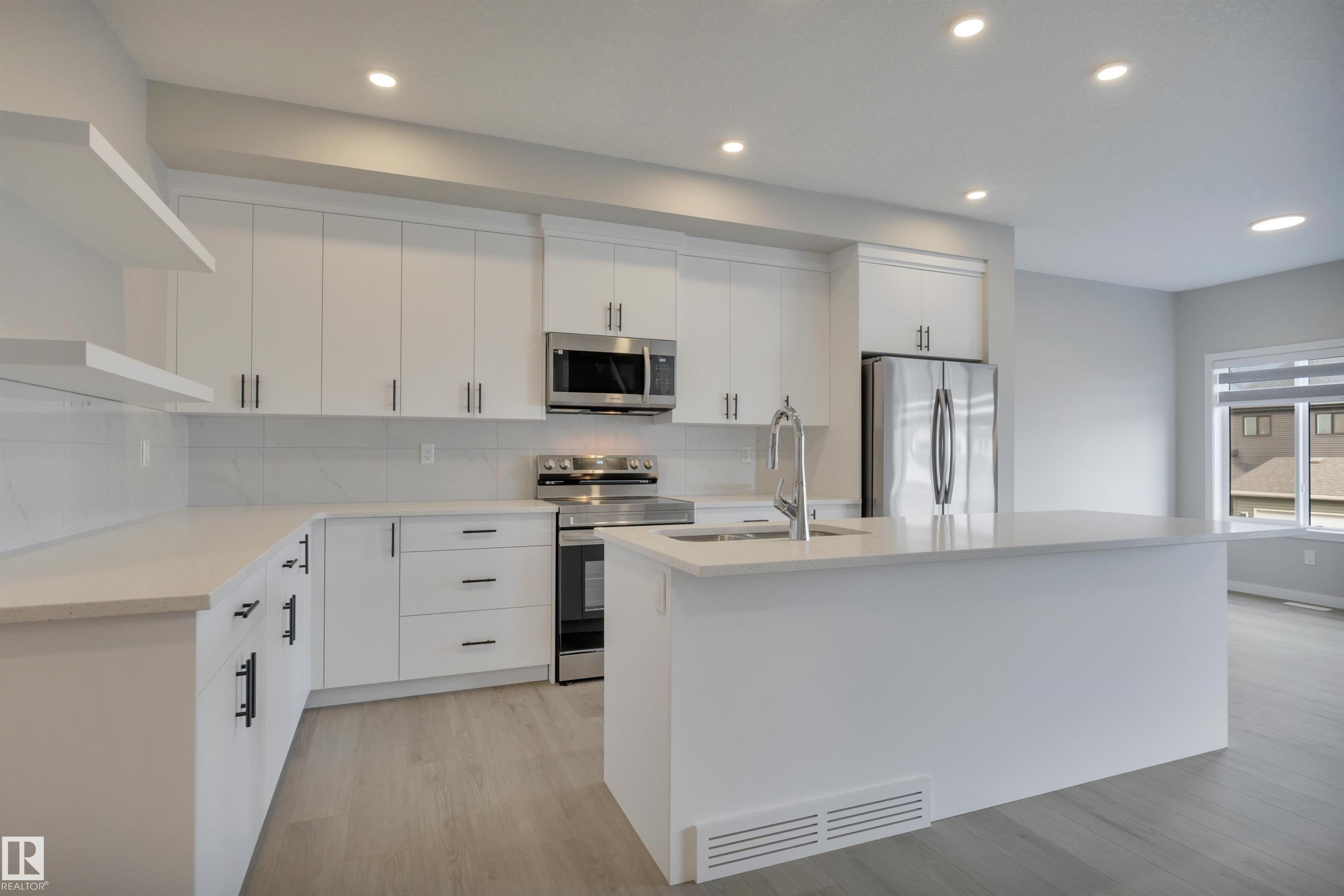 Welcome to sought after ALCES & Excel Homes popular model the Rosewood. With just under 2300 sf upon entering you’re greeted with 9ft ceilings, LVP flooring, a grand statement foyer, setting the tone for its spacious and thoughtfully designed layout. FLEX ROOM & FULL BATH offer the perfect setup for multi-generational living or hosting guests. At the heart of the home, the open-concept main floor features a beautifully upgraded kitchen, an island extension, 1.25" QUARTZ COUNTERTOPS THROUGHOUT, SS appliances, Large WALK THRU PANTRY flows seamlessly into the bright and SPACIOUS great room and dining nook. Upstairs, the bonus room acts as a natural divider, offering privacy between the primary suite and additional bedrooms. Completing the second floor are a total of 4 bedrooms, full bath, and convenient laundry room. The 9’ basement is roughed-in for a LEGAL SUITE, GREEN BUILT. FRONT LANDSCAPING INCLUDED rear to final grade, BLINDS INCL. Completion September 22, 2025