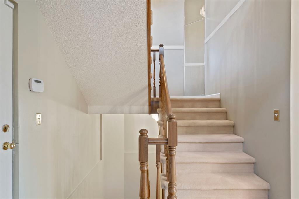 Set in one of Calgary’s most peaceful & picturesque locations, this beautifully maintained home combines timeless character with thoughtful updates and an incredible setting—backing directly onto the vast beauty of Fish Creek Park. Step out your back door & into one of North America’s largest urban parks, where walking & cycling trails weave through lush forest & open meadows. It’s a rare lifestyle that blends nature’s calm with the ease of city living! With the Ring Rd on your doorstep - get anywhere in minutes! Inside, you’re welcomed by a bright double height grand foyer & warm hardwood floors that flow throughout the main level. The layout offers both function & comfort, featuring a formal dining space perfect for family gatherings or holidays. Opens up to a cozy sunken living room centered around a classic brick wood-burning fireplace. Large patio doors open to a large WEST-facing private deck, surrounded by mature trees that create privacy & offer year-round natural beauty. The kitchen offers a practical layout with ample cabinet space & a charming breakfast nook that also opens onto the tiered deck—ideal for quiet mornings or summer bbq's. A convenient two-piece bath completes this main level. The attached double garage offers secure parking & extra room for tools or equipment. Plus guests can park on the driveway! Upstairs, two generous bedrooms provide excellent separation & comfort. The primary retreat features a bright 5-piece ensuite w/dual sinks, a soaker tub, step-in shower & skylight flooding the room with natural light. A 4 piece bath, laundry area & open loft nook overlooking the vaulted living room - complete the upper floor. The lower level extends the living space - with a large recreation area, half bath & a substantial storage room for seasonal items or hobbies. Vacuflo. Tucked within a quiet, well-managed conventional condo complex, this property offers the convenience of low-maintenance living without sacrificing space, privacy, or access to nature or amenities! Costco and other shopping options/services/restaurants/coffee shops - are mins away! With a double ATTACHED garage, driveway parking PLUS direct access to Fish Creek Park, it’s an exceptional opportunity for anyone seeking tranquility, comfort & connection to the outdoors—all of this is vacant and move-in ready before the snow falls! Check out the 3D Tour or book a showing at this home today!