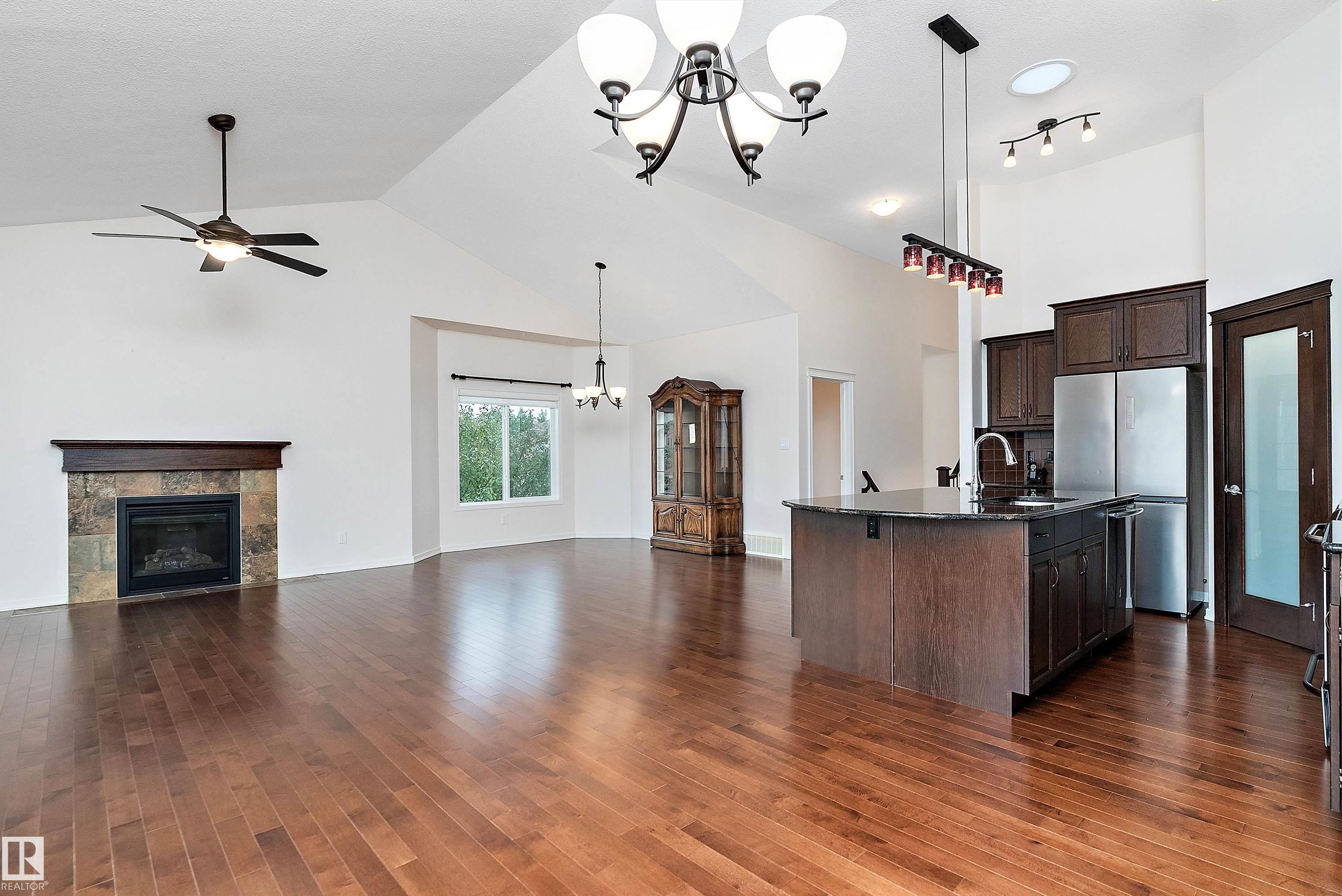 IDEAL setup for snowbirds, shiftworkers, retirees or anyone looking for a quiet, 18+ community. Situated on a large corner lot is this original owner walkout bilevel, featuring stunning landscaping. The interior is elegant with soaring vaulted ceilings, beautiful hardwood flooring, & custom cabinetry. The main floor is ideal for hosting with an impressive chefs kitchen, dining space & a large living room with cozy gas fireplace. Tucked away is a main floor office for your convenience. Up a couple stairs the primary oasis offers a jacuzzi & shower, private toilet, & walk in closet with custom built ins. The lower level is a brightly lit & inviting walkout leading to the back patio - surrounded by flowering trees for privacy. Every season is cozy & inviting with floor to ceiling windows and an additional gas fireplace. The basement living is complete with an extra large bedroom & 4 piece bath. Finally, the double attached garage ensures your comfort & convenience. THIS is what you've been looking for!