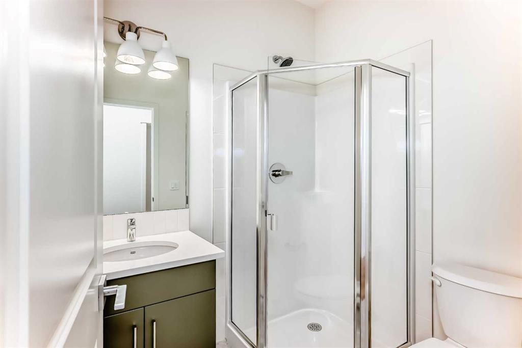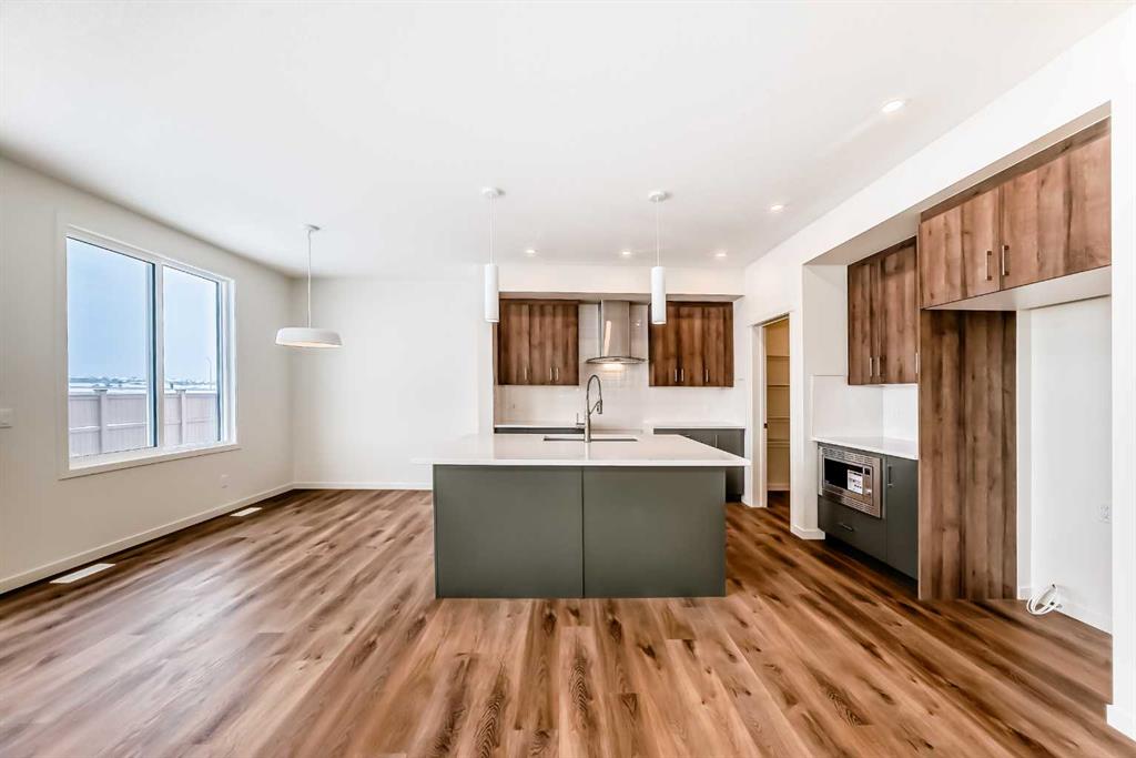 Welcome to the “Grada” by Hopewell Residential, where elevated design and everyday functionality come together in Calgary’s visionary garden-to-table community of Rangeview. Offering 2,119 sq. ft., 4 total bedrooms, and a thoughtfully designed layout that balances style with practicality, this is a home that feels as good as it looks. From the moment you step inside, you’ll appreciate how well this home is designed for modern family living. Just off the front entry, a main floor bedroom is paired with a convenient 3-piece bathroom, creating exceptional flexibility for a variety of lifestyles. Whether used for multi-generational living, a live-in nanny, overnight guests, or even as a private home office, this space adds versatility that is increasingly hard to find. As you move further into the home, the main floor opens beautifully into a spacious dining area and inviting lifestyle room, creating an effortless flow for both everyday routines and entertaining. The open-to-above living room creates a dramatic sense of space, while floor-to-ceiling windows flood the home with natural light. A beautiful fireplace anchors the room, adding warmth and character to this impressive central gathering space. The kitchen is a true standout, blending contemporary style with timeless finishes. Designed to impress, it features quartz countertops, a large central island, built-in microwave, upgraded storage drawers, and a striking stand-alone hood fan wrapped in a classic white 4x4 backsplash that adds texture and charm. The two-tone cabinetry offers a designer look with modern green lower cabinets paired with wood grain upper cabinetry, creating a warm and sophisticated aesthetic that sets this home apart. Upstairs, the thoughtful layout continues with a central bonus room overlooking the main living space below and benefiting from the home’s oversized two-storey windows, which fill the upper level with light and create an airy, open feel. You’ll also find three spacious bedrooms, including a well-appointed primary retreat featuring a step-in shower for a spa-inspired feel. A full bathroom and conveniently located upper floor laundry. The lower level provides excellent future potential with a 9-foot foundation, giving you flexibility to expand your living space over time or explore the possibility of a secondary suite (a secondary suite would be subject to approval and permitting by the city/municipality). Located in Rangeview, one of Calgary’s most unique new southeast communities, this home offers more than just beautiful interior finishes—it offers a lifestyle rooted in connection, nature, and community. Designed around a garden-to-table vision, Rangeview brings residents together with thoughtfully planned green spaces, pathways, gathering areas, and a strong sense of belonging. It’s the perfect setting for families looking for a fresh start in a neighbourhood built with lifestyle in mind. Discover the perfect blend of comfort, style, and community with The Grada in Rangeview.