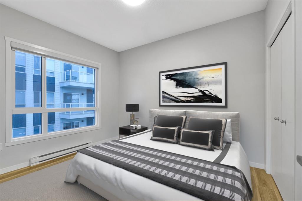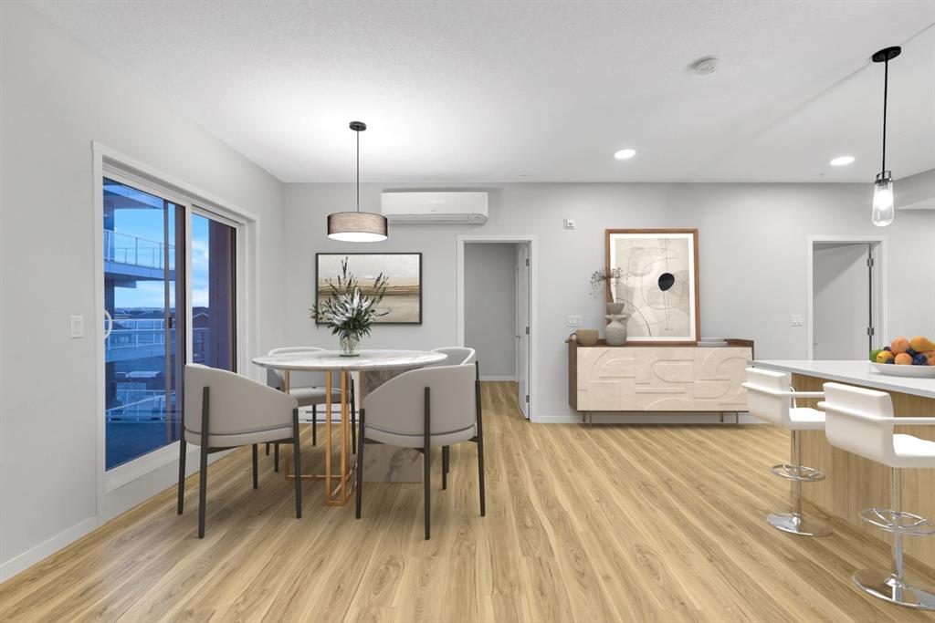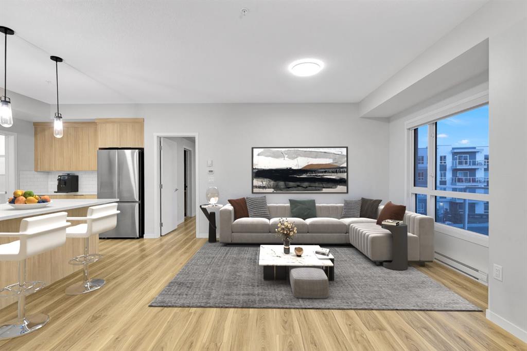 Discover life at Seton Summit, one of Calgary’s most desirable master-planned communities by Cedarglen Living. This beautifully appointed third-floor residence offers three bedrooms and two full bathrooms within 1,189 square feet of intelligently planned living space (1,269 sq.ft. builder size). The open layout is enhanced by 9-foot knockdown ceilings, luxury vinyl plank flooring, and an abundance of natural light throughout. With sunny southern exposure, the home opens onto an impressive balcony stretching more than 20 feet—an ideal setting for morning coffee, evening relaxation, or hosting friends. The kitchen is a standout, featuring full-height cabinetry, quartz countertops, an undermount sink, stainless steel appliances, upgraded lighting, a walk-in pantry, and a generous island that connects effortlessly to the living and dining areas. The primary bedroom offers a private and peaceful retreat, complete with a walk-in closet and a well-appointed four-piece ensuite with dual sinks and a walk-in shower. Two additional bedrooms allow for versatility, whether accommodating family, guests, or a dedicated home office. A conveniently located laundry and storage room, along with a second full bathroom, round out the efficient floor plan. Additional highlights include clear glass balcony railings, triple-pane windows, and air conditioning for year-round comfort. Residents also benefit from low condo fees, ample visitor parking, separate storage, and dedicated bike storage. The building is pet-friendly, allowing up to two pets weighing up to 35 kg. Underground titled parking and included roller blinds add to the everyday convenience. Located just steps from the world’s largest YMCA, the Seton HOA, shopping, dining, cafés, and the South Health Campus Hospital, this home offers an exceptional combination of lifestyle, comfort, and practicality in one of Calgary’s most vibrant communities.