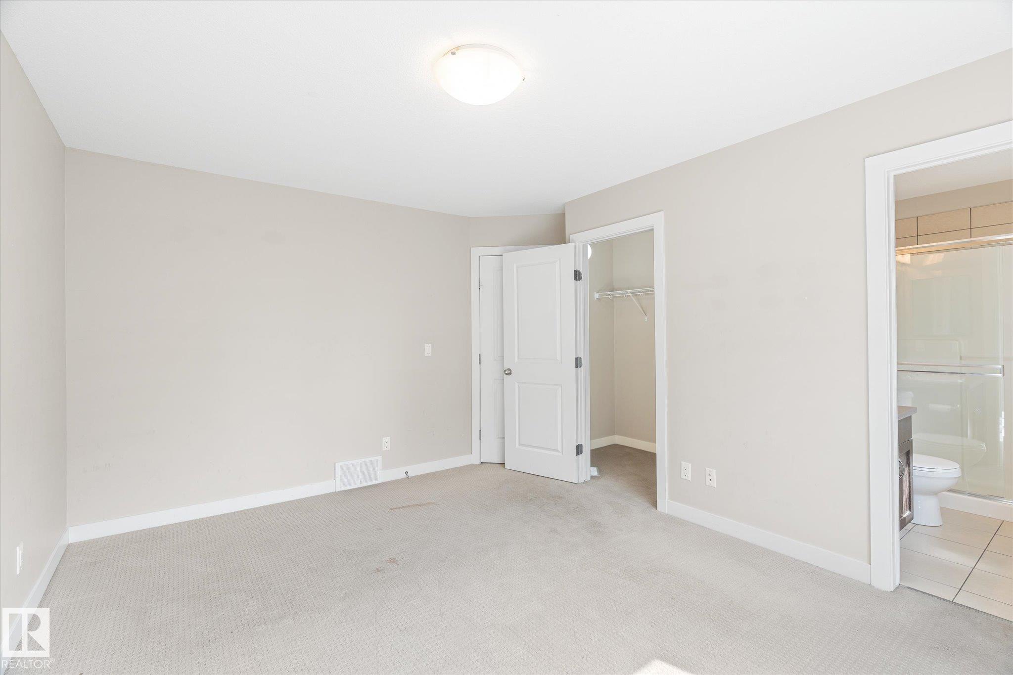 Looking for a larger floorplan with a larger garage? This condo boasts 1270 square feet and a 25 foot deep double garage, that is enough room to fit a truck! The glass staircase leads you upstairs to 2 bedrooms each with their own ensuite and tons of closet space. Perfect setup for room mates! The main floor has a sunny south facing living room that leads to the dining and kitchen area. Kitchen is nicely equipped with stainless steel appliances, pantry and tons of counter space. The dining area has patio doors that lead to your balcony to relax on. A half bathroom round out the main floor. The basement has a laundry area and leads to the double garage. South Terwillegar location is great for walking to restaurants, grocery store and shopping. There is a large park nearby and you also have easy access to transit and the Henday freeway. Excellent value in a prime location!