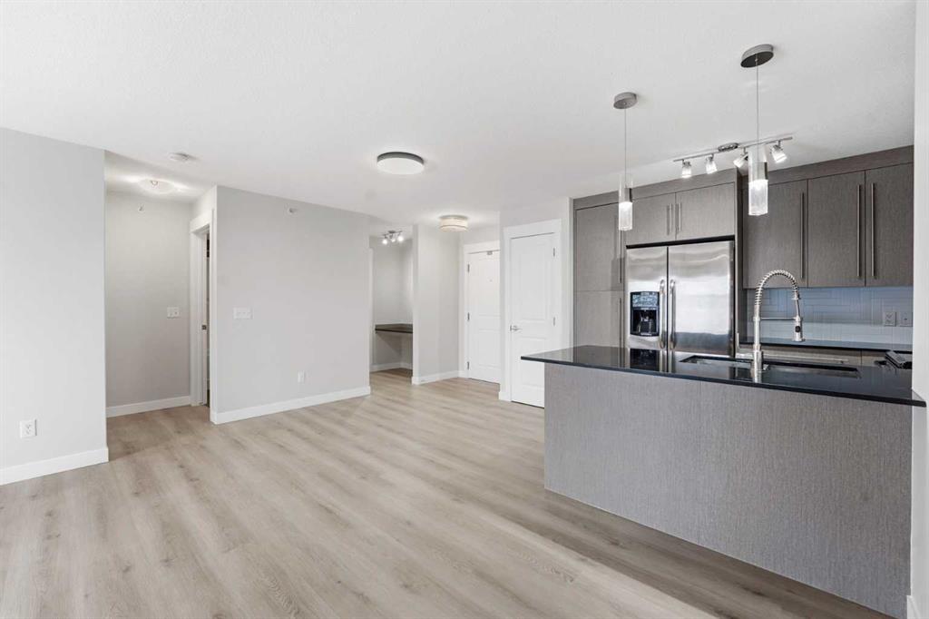 TOP floor / Lake View! Parking & storage just 3 stalls from elevator Elevated living for your next chapter. Rarely available top-floor with lake views in Mahogany, this beautifully updated 2-bedroom, 2-bathroom residence offers the perfect blend of sophistication, privacy, and effortless lifestyle — ideal for those ready to simplify without compromise. Top-floor inventory in this building is limited, and with panoramic views toward the lake, this home offers a quiet, elevated setting that feels both peaceful and refined. Freshly painted and enhanced with new designer flooring, the interior presents a clean, contemporary finish — move-in ready and impeccably maintained. The thoughtfully designed open-concept layout offers comfortable, low-maintenance living with no wasted space. Expansive windows fill the home with natural light while framing calming lake views — a daily reminder that you’ve earned this stage of life. The kitchen is both stylish and practical, featuring stainless steel appliances and generous cabinetry, flowing seamlessly into the dining and living areas — perfect for hosting family or enjoying relaxed evenings at home. The primary suite provides a spacious retreat with dual closets and a private 4-piece ensuite. A second bedroom and full bath offer flexibility for visiting grandchildren, guests, or a dedicated office or hobby space. In-suite laundry adds everyday convenience. Titled underground parking ensures comfort year-round, while secure building access provides peace of mind — perfect for lock-and-leave travel. Living in Mahogany means enjoying private lake access, two beaches, The Beach House, tennis courts, winter skating, boutique shopping, cafés, restaurants, and over 35 km of scenic pathways through the wetlands. With South Health Campus and Seton amenities just minutes away, everything you need is within easy reach. This is more than a condo — it’s a lifestyle upgrade. Low maintenance. Elevated privacy. Lake views. An exceptional opportunity to secure one of Mahogany’s most desirable top-floor residences.
