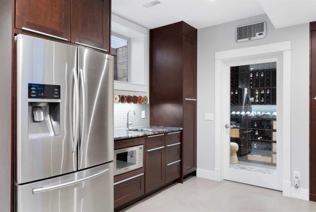 Warm, refined, and impeccably designed, this executive custom-built inner-city home sits on a rare OVERSIZED 30-FT LOT, offering a seamless blend of sophistication, comfort, and thoughtful craftsmanship throughout. METICULOUSLY MAINTAINED, THIS HOME HAS ALREADY BEEN INSPECTED FOR A SEAMLESS BUYING EXPERIENCE. A bright foyer welcomes you into a well-appointed main floor with a dedicated private office and a formal dining room, ideal for hosting and elevated entertaining. At the centre, the chef-inspired kitchen features an expansive island with integrated seating and concealed storage, GRANITE COUNTERTOPS, a gas range, full-depth fridge, built-in microwave, and a discreet APPLIANCE GARAGE. A BUTLER’S PANTRY adds additional prep space and connects effortlessly to both the dining areas. The open-concept living room is both warm and elevated, centred around a gas fireplace with custom built-ins and curated art lighting and opens onto a flat, ground-level WEST backyard—perfect for seamless indoor-outdoor living. A functional mudroom with custom cabinetry completes the main level. Upstairs, the primary suite feels like a true retreat. The VAULTED bedroom is spacious and calming, while the ENSUITE brings in natural light through a SKYLIGHT and offers a spa-like setup w/ a STEAM SHOWER, jacuzzi tub, in-floor heat, and a make-up station, plumbed for a second sink. A fully built-out walk-in closet includes custom shelving and dedicated jewellery drawers. Two additional bedrooms are bright and well-sized (one w/ a walk-in closet), paired w/ a modern main bath and convenient upper laundry w/ built-in sorting stations. The basement is fully developed and finished to the same elevated standard. Custom concrete HEATED FLOORS run throughout, paired w/ a second gas fireplace, custom cabinetry, and a full bar complete w/ sink, full-sized fridge, and convection microwave. A CLIMATE-CONTROLLED WINE ROOM adds a striking focal point, and can be kept as a showpiece or reimagined as a home gym, private office, or hobby space. There’s also a large bedroom, full bathroom, and storage, including a pantry under the stairs. Outside, the low-maintenance backyard is designed for elevated living, complete with TREX decking, pergola seating, gas lines for a BBQ & outdoor heater, ideal for effortless entertaining. IRRIGATION & ambient landscape lighting enhance the space, creating a refined setting for summer evenings. The yard is fully levelled & professionally engineered for proper drainage. Mechanically, the home is well maintained, w/ A/C, serviced furnace systems, in-floor heating zones, and a sump pump w/ battery backup. A heated garage with an epoxy floor complete the home. Set in KILLARNEY, just minutes to downtown with easy access to Bow Trail, Crowchild Trail, and the Westbrook LRT. Walk to parks, recreation, and 17th Avenue’s restaurants and cafés. Families will appreciate the close proximity to Killarney School, Holy Name School, and Ernest Manning High School.