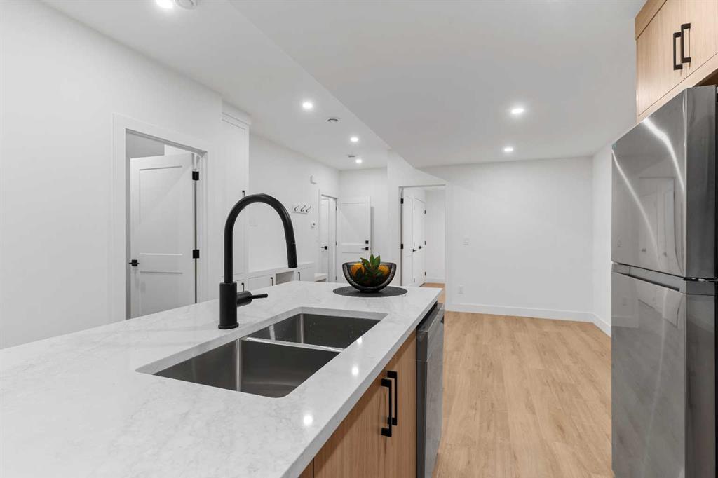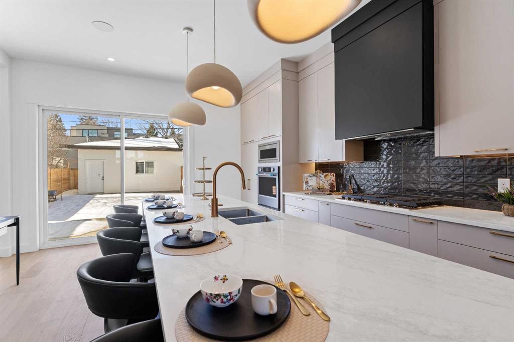 *SHOWSTOPPER ~ WITH A UNIQUE LAYOUT* Welcome to this brand-new, exquisitely designed luxury home located in the highly sought after Killarney inner city area, an exceptional neighbourhood just minutes from downtown Calgary. This stunning residence offers superior finishes and thoughtful features that truly set it apart from the competition. Step into the unique main floor layout and be greeted by an inviting living room to your left, complete with a cozy fireplace and a discreet half bath. The centrally located dining area flows seamlessly into a spacious kitchen at the back, which overlooks a west facing backyard with a raised deck ~ perfect for entertaining or relaxing outdoors. A practical mudroom with a walk~in closet completes the main level, providing ample storage and convenience. Upstairs, the large primary bedroom boasts a vaulted ceiling, private balcony, luxurious ensuite, and generous walk-in closet ~ a true retreat. Two additional secondary bedrooms feature elegant tray ceilings and walk~in closets, complemented by a well~placed upper laundry room for added ease. The fully finished basement offers a legal suite with a central kitchen, two bedrooms positioned on opposite ends for privacy, and a shared living room area. The front bedroom includes a walk~in closet, sharing a modern four ~ piece bathroom. For ultimate comfort, the home is pre~wired with a rough~in for air conditioning and equipped with speakers. This home’s value lies in its exceptional style; stunning curb appeal, high~end finishes, and thoughtfully designed living spaces that elevate everyday living. Don’t miss your chance to own this remarkable and stylish new construction home in the beloved Killarney community.