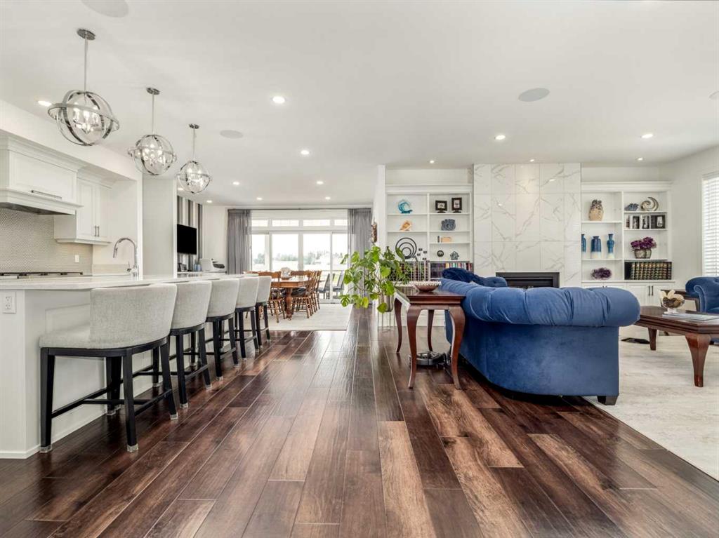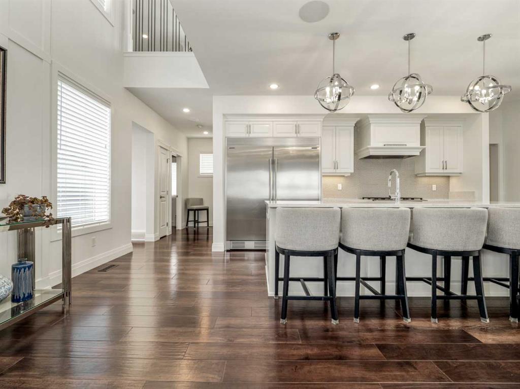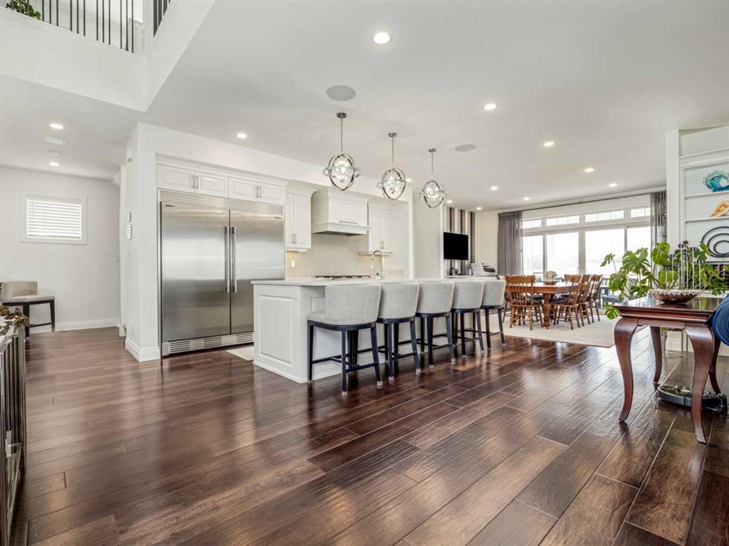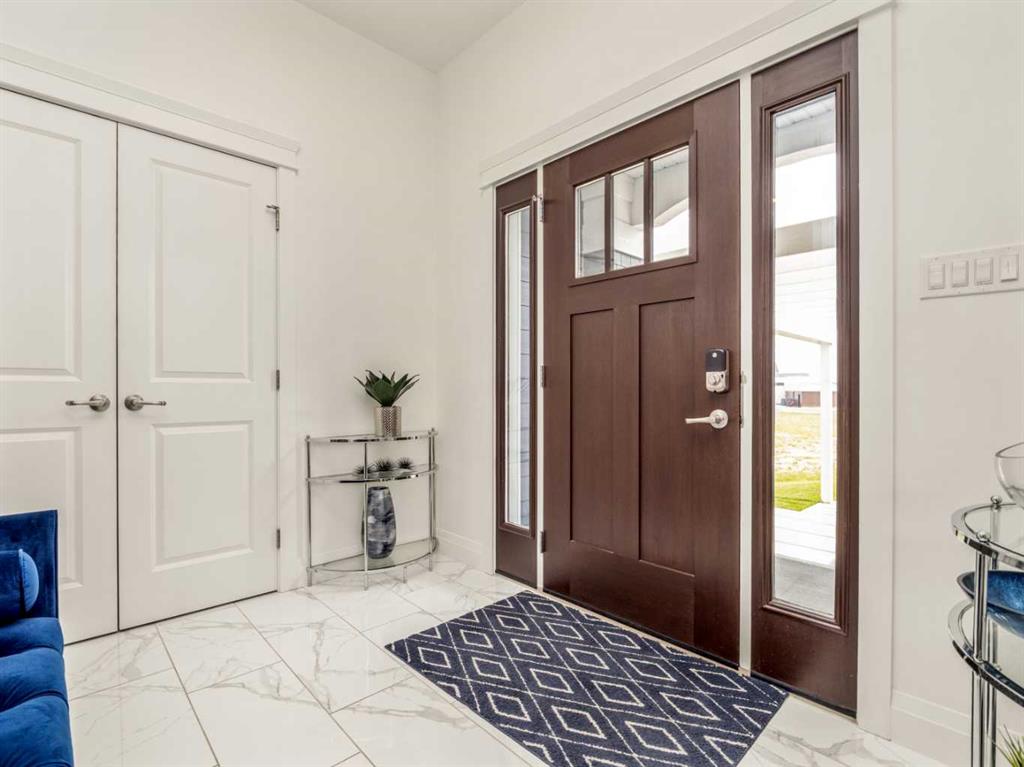 Come and discover a truly one of a kind luxury home in the beautiful neighborhood of Prairie Arbor. This uniquely stunning residence boasts an open concept main floor designed to entertain. The gourmet kitchen amazes with quartz countertops, 6 burner gas stove, under counter lighting, garburator, counter depth fridge and freezer, and an oversized island for meal prep and casual dining. The enormous butler's kitchen/pantry is one that any chef would envy. The main floor has a large kitchen seating area as well as a traditional formal dining room and a truly beautiful living room. A large, partially covered deck adds extra space and a bright airy feel to the main floor. An elegant powder room on the main floor, allows entertaining to take place all on the main level. Continuing the grand design to the 2nd floor you will find an interior balcony overlooking the main floor foyer, highlighted by a modern chandelier. This floor has 3 of the four spacious bedrooms. The main bedroom is a truly amazing personal space with a 4 pce ensuite with vanity area, a massive double shower with bench and a room sized walk in closet complete with 2 sets of built in drawers, an entire wall of shelving for shoes, a full length mirror and island with custom made jewelry drawers. The main laundry is on the second floor, as well as another elegant 4 pce bathroom and 2 more large bedrooms. The bonus room upstairs is the perfect size for some family downtime before you turn in. The walkout basement is equally impressive both in luxury and functionality, boasting a huge theater room, an office, a second laundry with stackable washer and dryer, a dry storage room, cold storage and outdoor storage with Peka rollshutter closure. The oversized bedroom has 2 large closets and large windows for a main floor feel, with in floor heat throughout. The location of the 3 pce bathroom for this floor gives an ensuite feel while serving as the main bathroom for this floor. Another kitchen allows for food service in the games/family room and sliding doors open onto a large covered patio for more indoor outdoor living space. There is a large, well windowed mudroom with built in bench and storage cubbies, that leads to a massive 3 car garage. The garage is every guy's dream with a 12 ft ceiling and Platinum garage floor treatment, in floor heating and wiring for an EV. The 3rd garage door has a pull-through door to a concrete pad in back. For additional storage, there is a newly built house-matching shed in back for extra storage items so your garage can be dedicated to parking vehicles. With the front and side yard fully landscaped with an underground sprinkler system, this lot still has space enough to add any other luxuries you can dream up. From Home One outdoor lighting to Control 4 smart home systems, this home has it all; great location, luxury features, grand design with all the extras. It truly is a dream home.