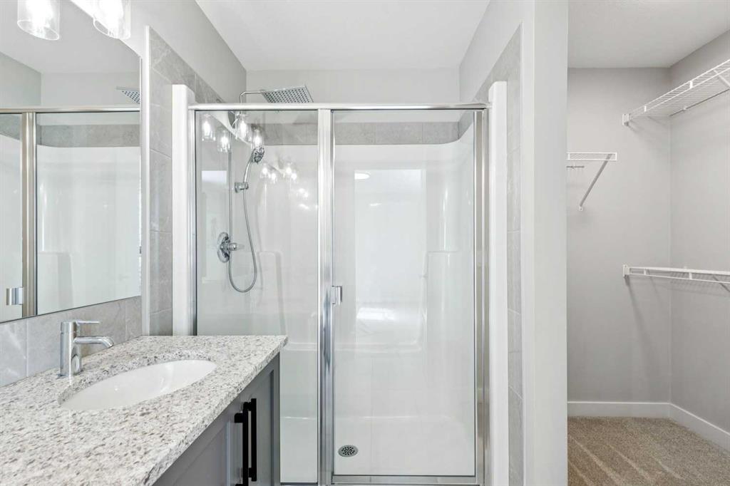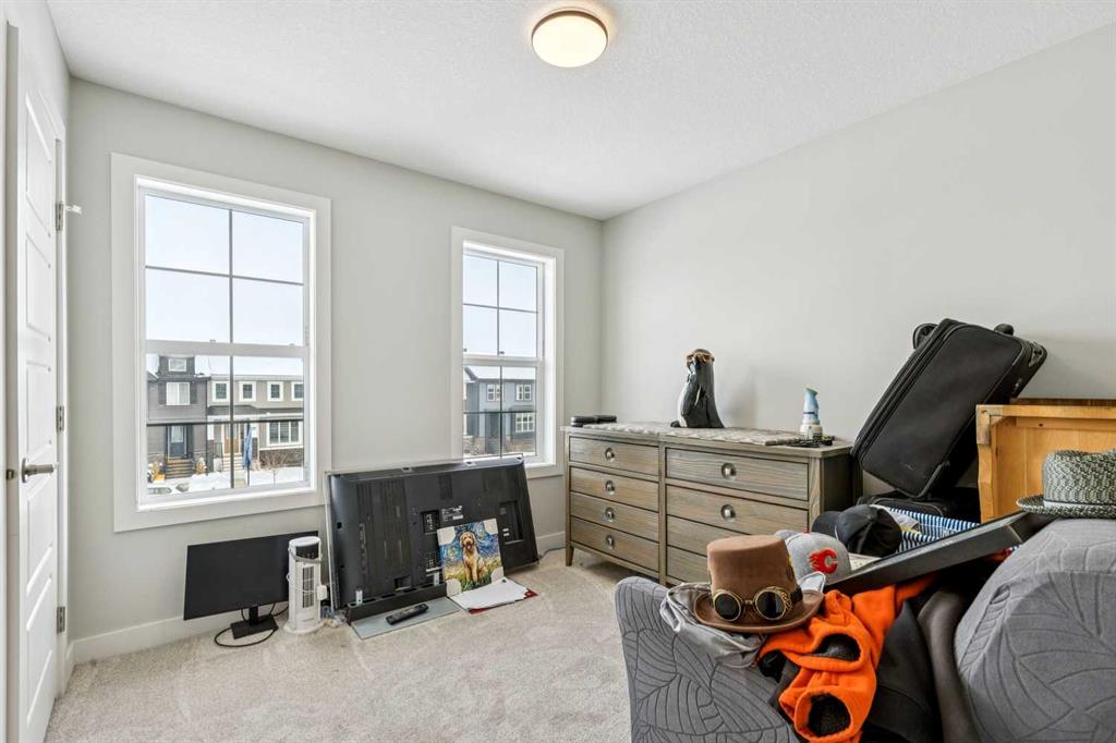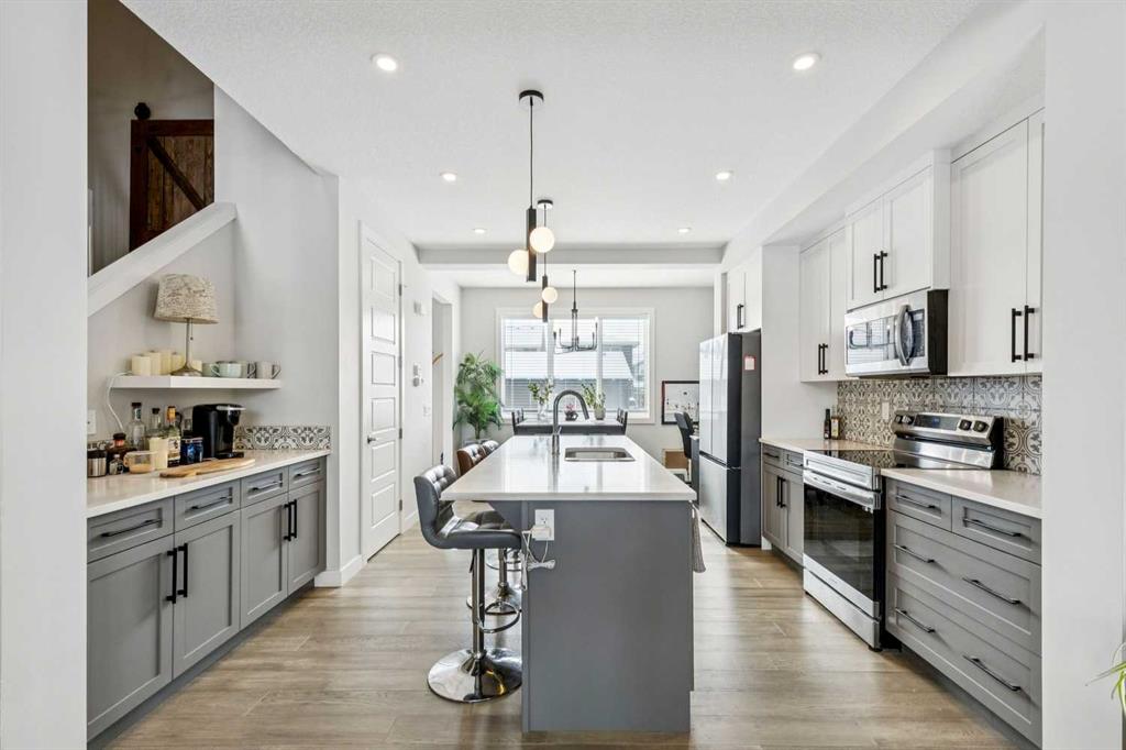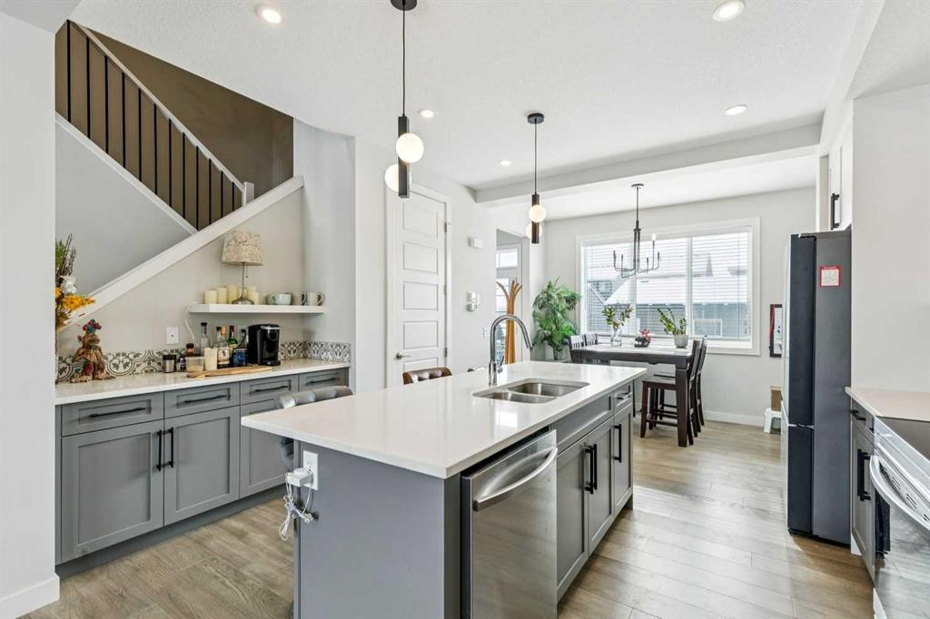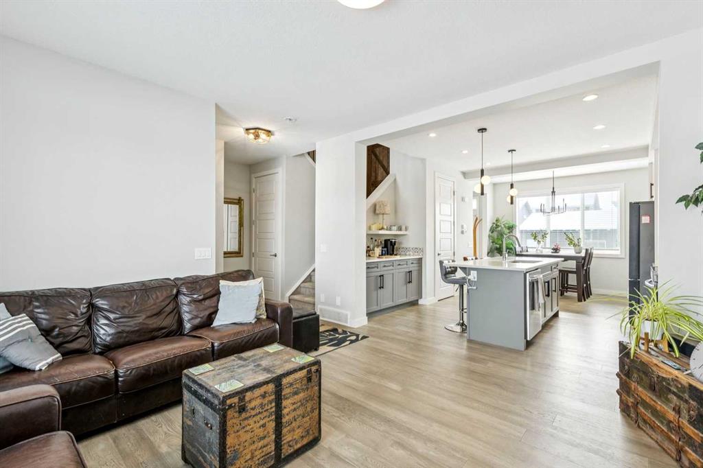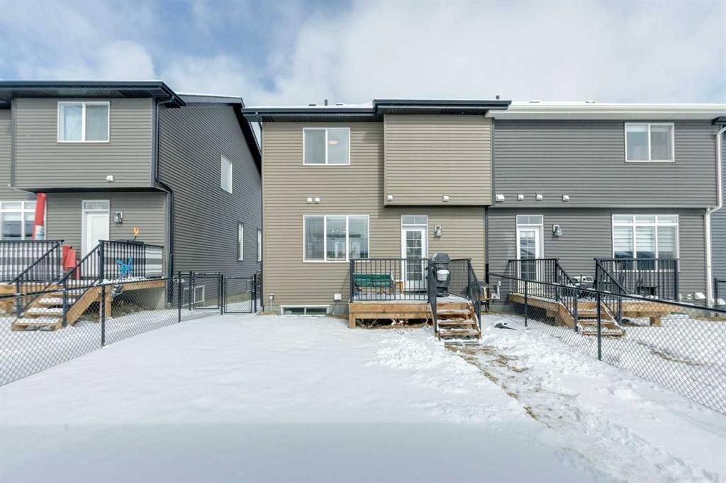Welcome to this beautifully maintained 2 year old END UNIT townhome in the vibrant community of Chestermere, offering over 1,400 sq ft of developed living space above grade and exceptional value for buyers seeking modern comfort and functionality. The open concept main floor features engineered hardwood flooring and a bright, inviting living room complete with a cozy fireplace perfect for relaxing or entertaining. The modern kitchen showcases upgraded appliances above builder grade finishes, along with a convenient eat-up bar and a dedicated coffee area, creating the ideal space for casual dining and morning routines. A half bath completes the main level. Upstairs, you’ll find three spacious bedrooms, including a primary retreat with a private 4 piece ensuite. The second bedroom also features its own 4 piece ensuite, making it perfect for guests, family members, or roommates. The upper-floor laundry with full size washer and dryer adds everyday convenience right where you need it. The undeveloped basement offers a blank canvas for future development to suit your lifestyle. Outside, enjoy a fully landscaped and fenced yard, along with a detached double car garage providing both privacy and practicality. As an end unit, this home offers additional natural light, extra privacy, and enhanced curb appeal. Located just minutes from Chestermere Lake, parks, schools, and local amenities, this nearly new townhome delivers an outstanding combination of style, space, and value. An exceptional opportunity to own a modern home in one of Chestermere’s most desirable and growing communities.