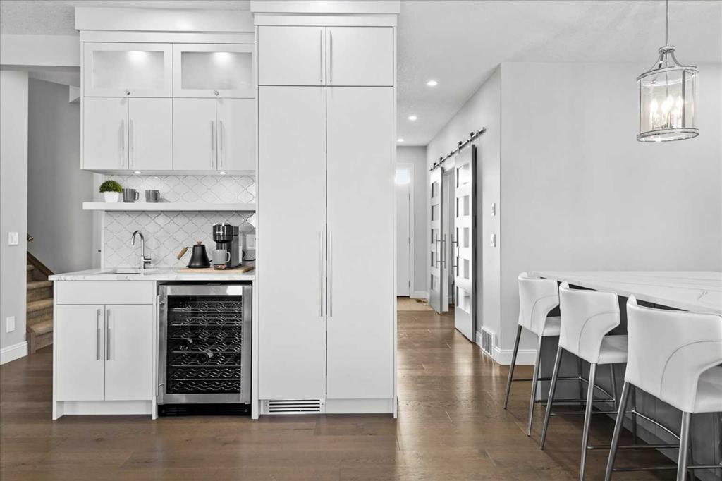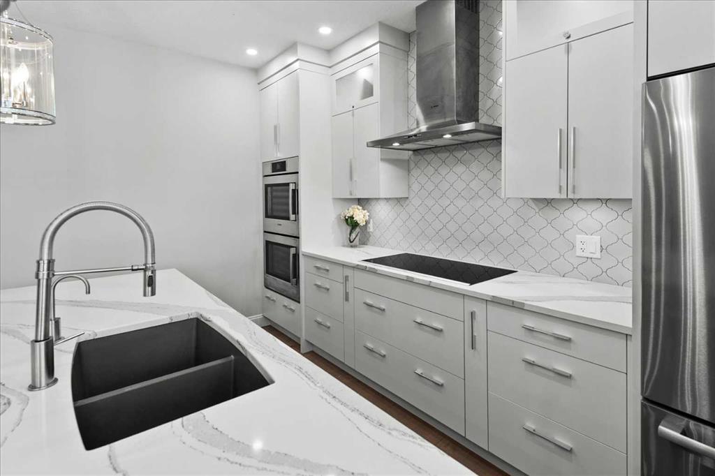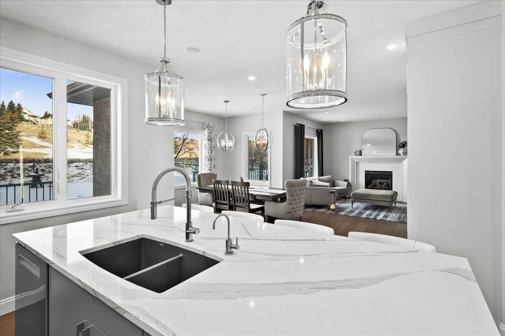 Beautiful two-storey family home in Gleneagles offering over 3,800 sq. ft. of developed living space on large fenced lot overlooking the 14th fairway. The heart of this home is the fully renovated contemporary kitchen, featuring a quartz central island, built-in cabinetry, central vac with kitchen sweep inlet, and stainless-steel appliances—perfect for everyday living and entertaining. A stylish coffee bar with new wine fridge sits adjacent to the kitchen, while the spacious dining area is surrounded by windows overlooking the expansive yard and golf course. The inviting living area showcases an updated fireplace mantel and tile surround. The main floor is complete with a large, bright front den, hardwood flooring throughout, and a fully renovated 2-piece bath. Note the spacious back entry cupbaords and customized built-in locker cubbies. Upstairs, retreat to the breathtaking primary bedroom with gas fireplace and access to a private balcony—the ideal place to enjoy your coffee at sunrise or take in the mountain views at sunset. The ensuite is a stunning 7 pce spa-like retreat with underfloor heating. Two additional bedrooms, a beautifully renovated 4-piece bath, over sized family/media room and convenient upper-level laundry complete this level. The fully developed lower level offers additional living space including a fourth bedroom, generous family room, work out area and a renovated 3-piece bathroom—ideal for guests or growing families. Upgrades and renovations over $330,000 include complete kitchen , cabinets, a large island, updated lighting, fresh paint, stainless-steel appliances, flooring throughout (lava oak), carpeting, main-floor 2-piece bath, main floor fireplace -mantel and tile surround. Upstairs, 4-piece bathroom , primary bedroom and ensuite have been extensively upgraded, including a fully renovated 6-piece ensuite. The lower level renovations include family room and fireplace, 3-piece bathroom, mechanical and utility upgrades-furnace, reverse osmosis system, hot water tank (2023). The cedar shake roof was inspected and repaired as required (2025). Just move in and enjoy the breathtaking views, privacy of rear yard, bike/ walking paths and just minutes to town to restaurants and every amenity for your family.