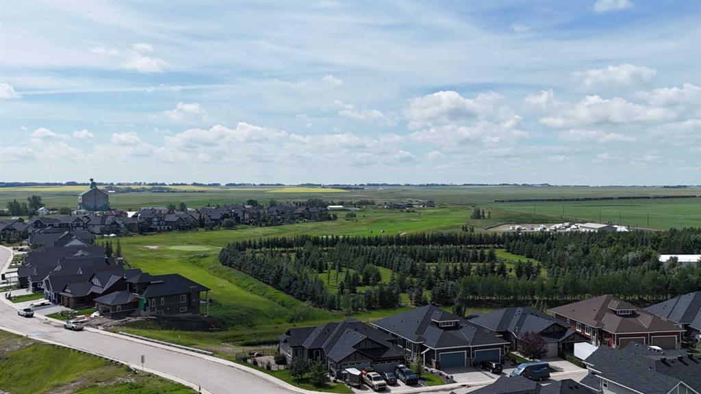 ELIGIBLE FOR FIRST HOME BUYERS GST REBATE. Brand New Fully Finished Bungalow | Pond & Mountain Views | Quiet Cul-de-Sac | Lakes of Muirfield Welcome to 26 St. Andrews Close—an exceptional brand-new semi-detached bungalow perfectly positioned on a quiet cul-de-sac in the sought-after golf course community of Lakes of Muirfield. Backing onto open space with no neighbours behind, this home offers stunning pond and mountain views along with 3,258 sq ft of beautifully finished living space. The main floor spans 1,662 sq ft above grade and showcases soaring vaulted ceilings and an open-concept design filled with natural light. The chef-inspired kitchen features quartz countertops, an oversized island with seating, stainless steel appliances, modern cabinetry, and statement pendant lighting. The kitchen flows seamlessly into the dining area and spacious living room, highlighted by a dramatic floor-to-ceiling tile fireplace feature wall. Expansive rear windows frame peaceful water views and open skies, creating a truly serene backdrop. The primary suite is a private retreat complete with a walk-in closet and a luxurious 5-piece ensuite with dual vanities, a deep soaker tub, and separate shower. A second bedroom, full 4-piece bath, mudroom, and convenient main-floor laundry complete this thoughtfully designed level. The fully finished basement offers incredible additional living space with a massive recreation room and stylish wet bar—perfect for entertaining or relaxing. Two additional bedrooms, a full bathroom, ample storage, and a second laundry area add flexibility and function, ideal for guests or multi-generational living. Enjoy low-maintenance living in this quiet, established golf course community just 20 minutes from Calgary and Strathmore. With pond views, mountain views, no neighbours behind, and a premium cul-de-sac location, this home offers the perfect blend of privacy, comfort, and modern design.