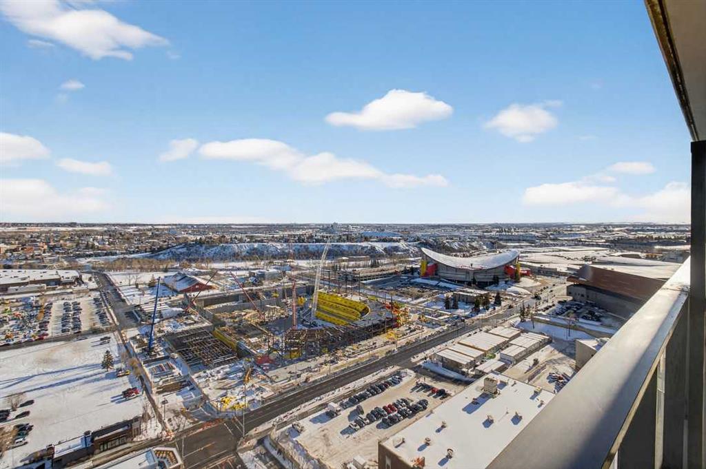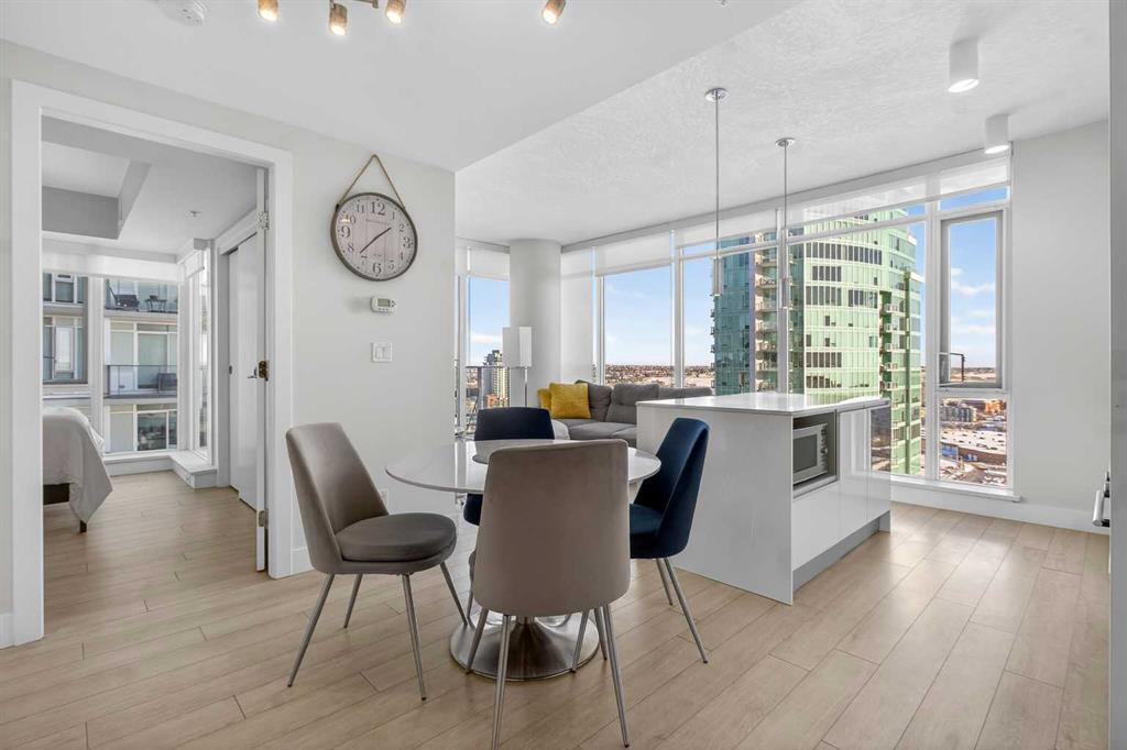 TURNKEY INVESTMENT | 2 BED, 2 BATH | 2 CAR PARKING STALL | DOWNTOWN VIEWS | Welcome to The Guardian South Tower — an INVESTMENT-FRIENDLY residence perfectly positioned in the heart of Calgary’s entertainment and business district. Perched high on the 26nd floor, this 2-bedroom, 2-bathroom suite offers sweeping city views through 2 Balconies, and floor-to-ceiling windows, creating a bright, energized atmosphere from sunrise to nightfall. The open-concept layout is designed for both everyday living and entertaining, featuring a sleek, modern kitchen equipped with integrated appliances, glass electric cooktop, built-in oven, and ample cabinetry. Natural light pours into the living space, enhancing the contemporary finishes and maximizing the sense of height and space. The primary bedroom offers a large closet and private ensuite, while the second bedroom provides flexibility for guests, a home office, or additional rental income. With two full bathrooms, functionality and comfort are seamlessly balanced. This unit includes two titled underground parking stalls—a rare and valuable offering in the Beltline—and the peace of mind of 24-hour security and concierge service. Residents enjoy access to premium amenities including a fitness centre, social lounge, workshop, and rooftop garden terrace with BBQs and panoramic views. Steps from Stampede Park, the BMO Centre, downtown offices, East Village, transit, shopping, and some of Calgary’s best dining and nightlife, this location is unmatched for professionals, investors, or those seeking a vibrant urban lifestyle. Whether you’re looking for a turnkey investment or a stylish downtown home, this high-floor Guardian suite delivers location, views, and long-term value. Book your private showing today. **Furniture can be included for an additional, negotiable amount**