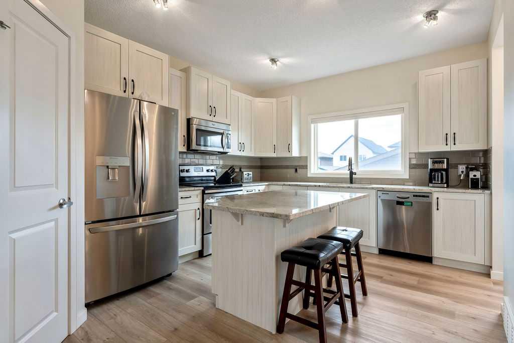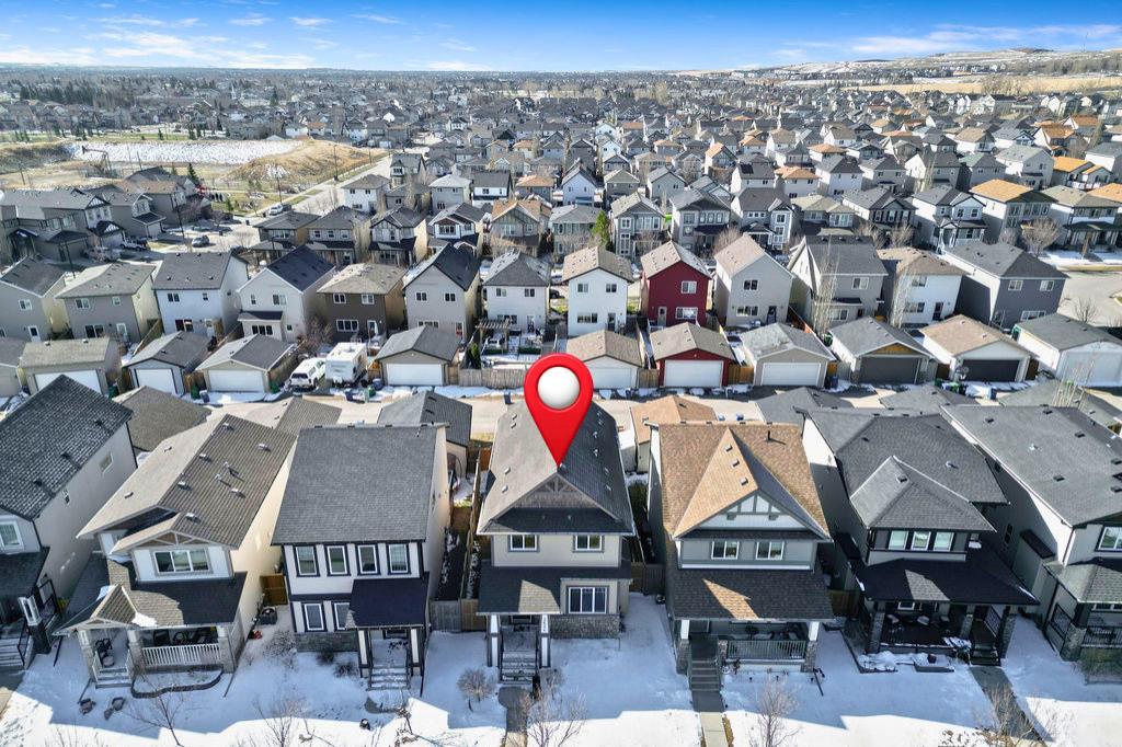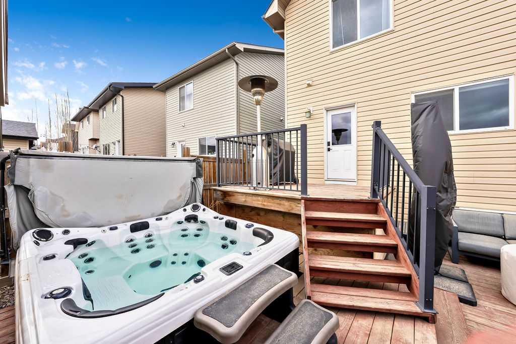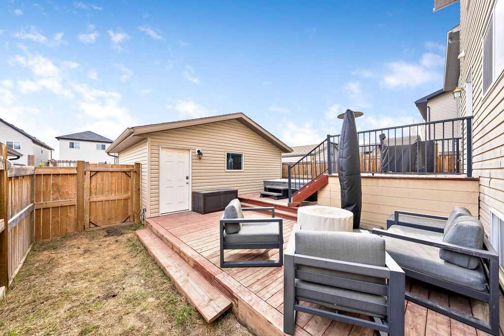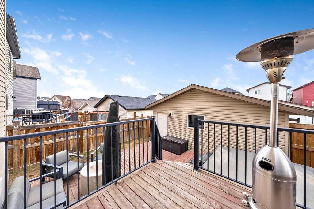 SMART LAYOUT WITH POCKET OFFICE | 9’ CEILINGS | HEATED DOUBLE DETACHED GARAGE | FINISHED BASEMENT | TIERED DECK WITH HOT TUB Welcome to this thoughtfully upgraded two-storey in Reunion, where the layout just makes sense and the spaces actually support how you live day to day. The main floor feels open and elevated with 9’ ceilings and durable flooring, anchored by a modern kitchen with quartz countertops, stainless steel appliances, a corner pantry, and a dining area that easily handles both quick mornings and full gatherings. The pocket office with a window is one of those features you don’t realize you need until you have it, tucked away enough for focus while still connected to the main living space. The living room centers around a clean, modern fireplace with custom built-ins, creating a space that feels both functional and pulled together. Upstairs offers three bedrooms including a spacious primary retreat with a walk-in closet and a 4-piece ensuite with a separate shower, along with the convenience of upper laundry exactly where it belongs. The finished basement adds flexibility for a second living area, gym, or play space, giving you room to adapt as life changes. Outside, the tiered deck and hot tub create a backyard setup designed for actual use, not constant upkeep, while the heated and insulated double detached garage is ready for Airdrie winters, projects, or extra storage. This is a home that balances clean design with practical upgrades, in a community known for parks, pathways, and an easy, family-friendly feel. You may see a virtual tour of this home by clicking the 3D tour icon.