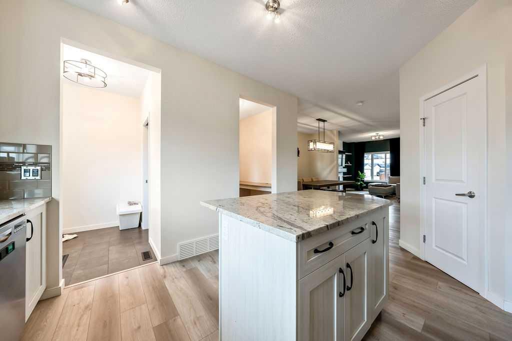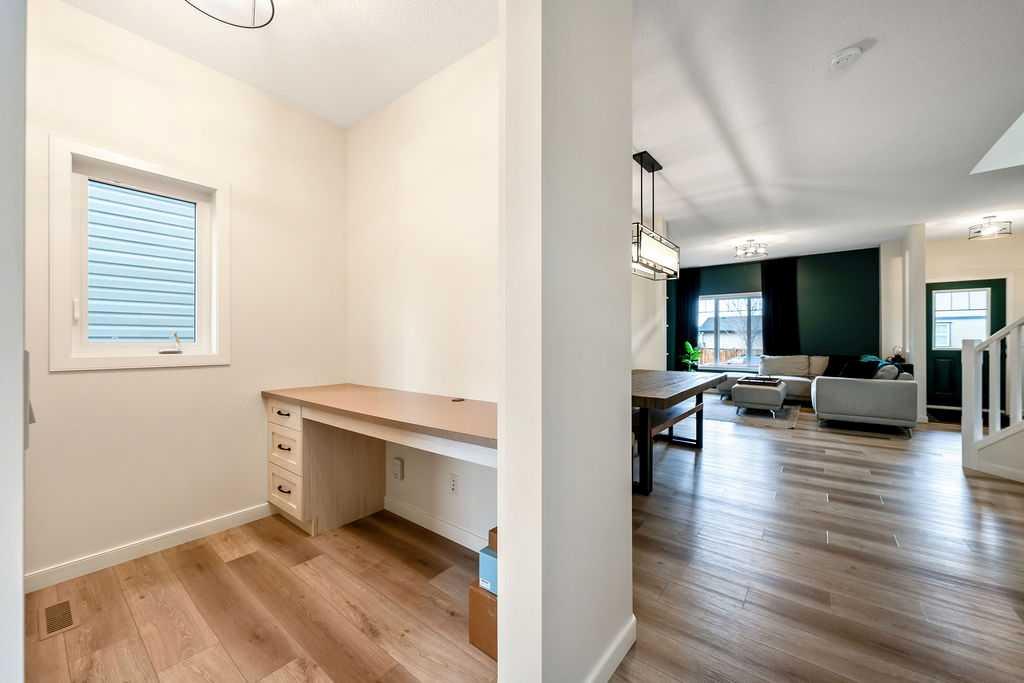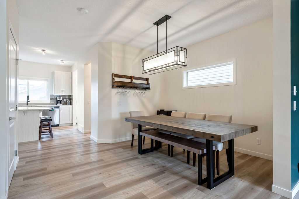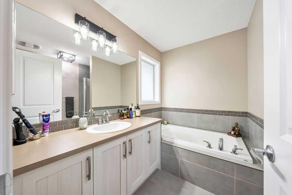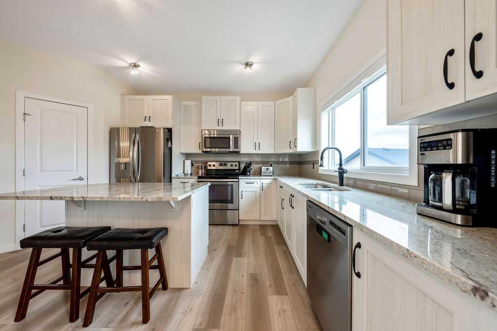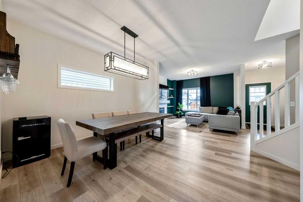 SMART LAYOUT WITH POCKET OFFICE | 9’ CEILINGS | HEATED DOUBLE DETACHED GARAGE | FINISHED BASEMENT | TIERED DECK WITH HOT TUB Welcome to this thoughtfully upgraded two-storey in Reunion, where the layout just makes sense and the spaces actually support how you live day to day. The main floor feels open and elevated with 9’ ceilings and durable flooring, anchored by a modern kitchen with quartz countertops, stainless steel appliances, a corner pantry, and a dining area that easily handles both quick mornings and full gatherings. The pocket office with a window is one of those features you don’t realize you need until you have it, tucked away enough for focus while still connected to the main living space. The living room centers around a clean, modern fireplace with custom built-ins, creating a space that feels both functional and pulled together. Upstairs offers three bedrooms including a spacious primary retreat with a walk-in closet and a 4-piece ensuite with a separate shower, along with the convenience of upper laundry exactly where it belongs. The finished basement adds flexibility for a second living area, gym, or play space, giving you room to adapt as life changes. Outside, the tiered deck and hot tub create a backyard setup designed for actual use, not constant upkeep, while the heated and insulated double detached garage is ready for Airdrie winters, projects, or extra storage. This is a home that balances clean design with practical upgrades, in a community known for parks, pathways, and an easy, family-friendly feel. You may see a virtual tour of this home by clicking the 3D tour icon.