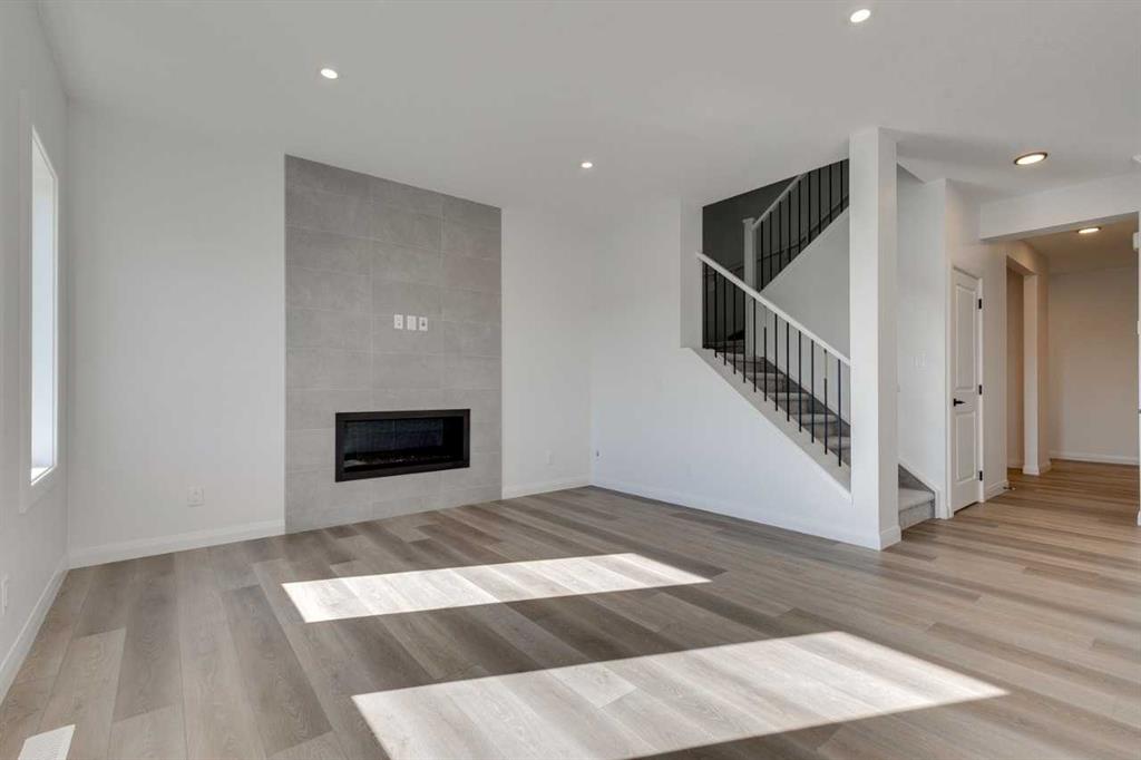 Welcome to the York by Broadview Homes in Dawson’s Landing—This 2,029 sq. ft. home offers 3 bedrooms, 3 full bathrooms, and a versatile main floor flex room with a full bath, perfect for guests or a home office. The heart of the home is a spacious kitchen with stainless steel appliances, plenty of counter space, and elegant finishes, opening to a bright living area complete with a cozy gas fireplace. Upstairs, enjoy a bonus room, two secondary bedrooms, and a massive primary bedroom featuring a spa-inspired ensuite and walk-in closet. With 9’ ceilings on the main and basement levels, plus basement plumbing rough-ins for potential future development, this home combines style, space, and functionality.