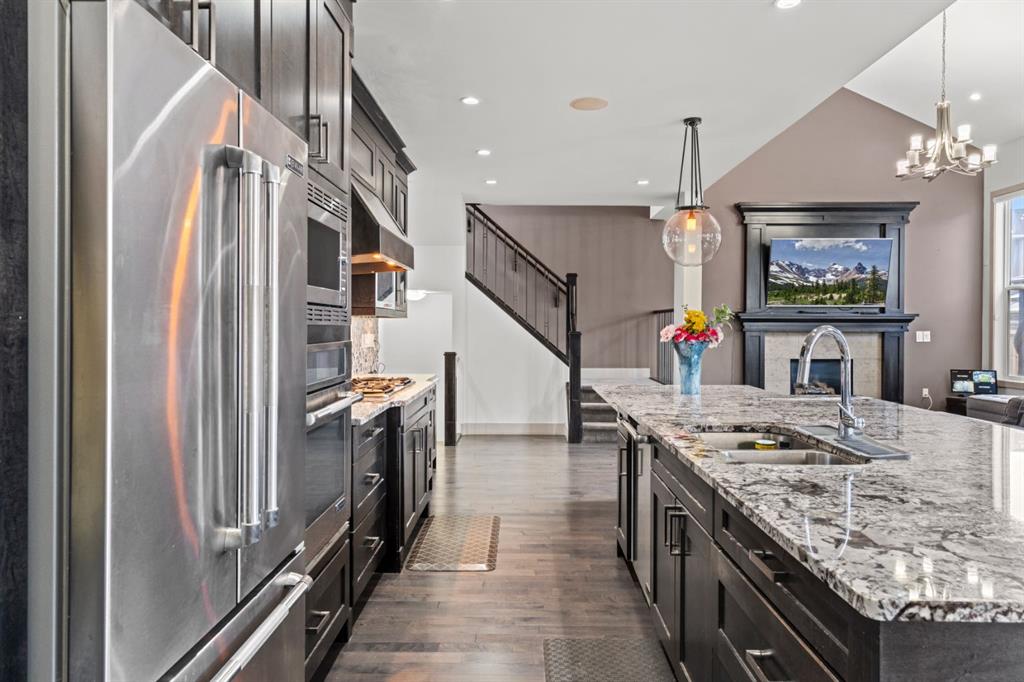 Discover this exceptional two-story residence in the highly sought-after community of Kinniburgh, Chestermere. It showcases 3,960 sq ft of beautifully finished living space designed for modern family living with a touch of sophistication. Step through the grand entrance into an inviting main level featuring vaulted ceilings, a stunning open-to-below living room, and large windows that fill the home with an abundance of natural light. The open-concept layout flows effortlessly, creating an ideal setting for both entertaining and everyday comfort. A versatile main-floor office provides a quiet space to work from home or can easily serve as a sixth bedroom for guests or multi-generational living. Upstairs, you’ll find four spacious bedrooms, including a luxurious primary suite complete with a spa-inspired ensuite, soaker tub, dual vanities, and a walk-in closet. The fully developed basement adds another layer of flexibility, offering a fifth bedroom, a full bathroom, and open space ready for your vision — whether that’s a home theatre, wet bar, gym, or entertainment lounge. Enjoy the outdoors in your large, landscaped backyard, which features a beautiful gazebo. This space is perfect for hosting or relaxing with family. Ideally located close to Chestermere Lake, top-rated schools, shopping, parks, and pathways, this home combines luxury, location, and lifestyle in one remarkable package. Experience elevated living in one of Chestermere’s premier communities. Welcome home to Kinniburgh!