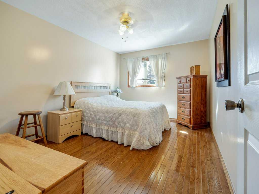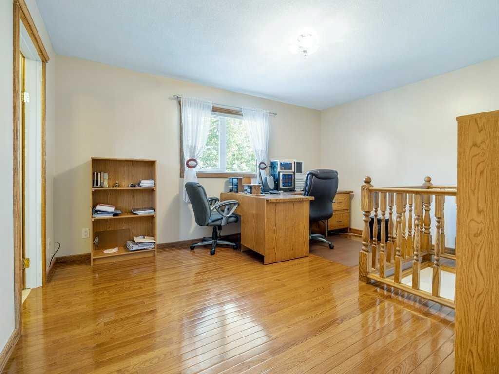 Almost 1,800 square feet! A solid built, one owner home. This well cared for house sits in a cul-de-sac and backs onto green space. Main level has living room, family room, laundry room, a full bathroom, kitchen and dining room. Most of your daily activity all on one level. Upstairs is 2 bedrooms, 1 full and 1 half bathrooms, plus a bonus room. A full unfinished basement is waiting for you to finish the way you want it. Basement also has a roughed in bathroom. 2 hot water tanks and a newer furnace. Furnace is about 3 years old. Central vac, newer windows upstairs, 2 car heated attached garage. Back yard has covered deck, patio with gas bbq line, garden space, 2 sheds, mature trees, and a fire pit. Yard is fenced with access to green space. Masonite and brick siding. This property has wood floors, granite countertops, solid wood cabinetry, fireplace and so much more! Call your realtor today! Come and see!