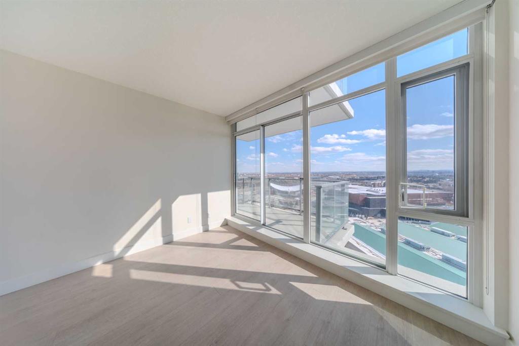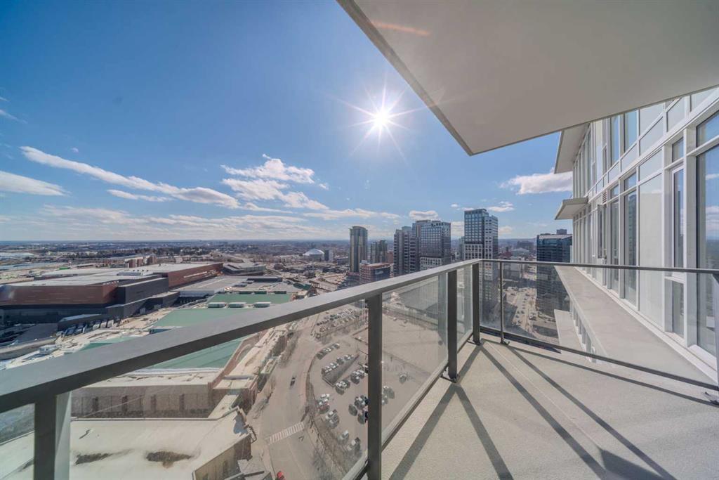 Experience elevated city living in this bright and well maintained south-facing one-bedroom residence, showcasing expansive unobstructed views from a high-floor vantage point. Designed with efficiency and style in mind, this well-laid-out home offers over 500 sq. ft. of contemporary living space. The open-concept layout maximizes functionality, complemented by upscale finishes including durable laminate flooring, elegant Italian-designed cabinetry, quartz surfaces, and fully integrated stainless steel appliances. Floor-to-ceiling windows flood the interior with natural light throughout the day. The unit features a generously sized bedroom alongside a sleek four-piece bathroom finished with imported Italian cabinetry. Additional highlights include in-suite laundry, titled tandem parking accommodating two vehicles, and a dedicated storage unit. Residents have access to an impressive array of amenities, including a fully equipped fitness facility, workshop space, secure bicycle storage, a social lounge with an outdoor garden terrace, and 24-hour concierge and security services. Located in the heart of Calgary’s dynamic Beltline district, this home places you within walking distance of downtown, Stampede Park, the Central Library, Riverwalk pathways, and convenient LRT access. Daily essentials and lifestyle perks are just steps away, including an on-site café, nearby dog park, Tesla Supercharger station, and a grocery store just around the corner. Combining modern design, valuable upgrades, and a prime inner-city location, this property offers both a refined urban lifestyle and strong long-term investment potential.