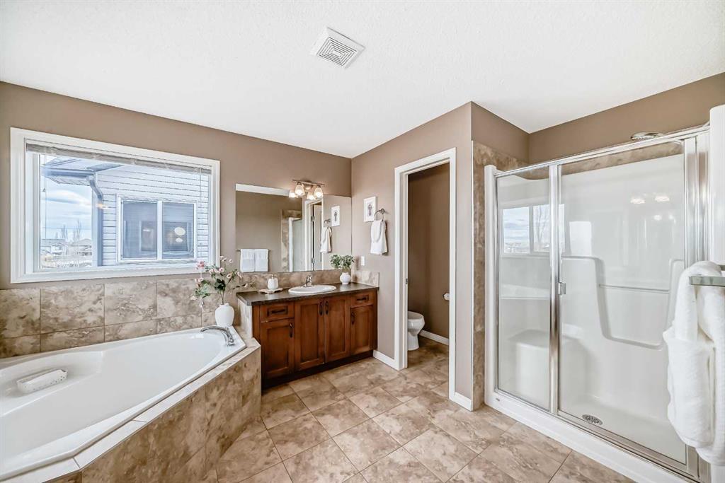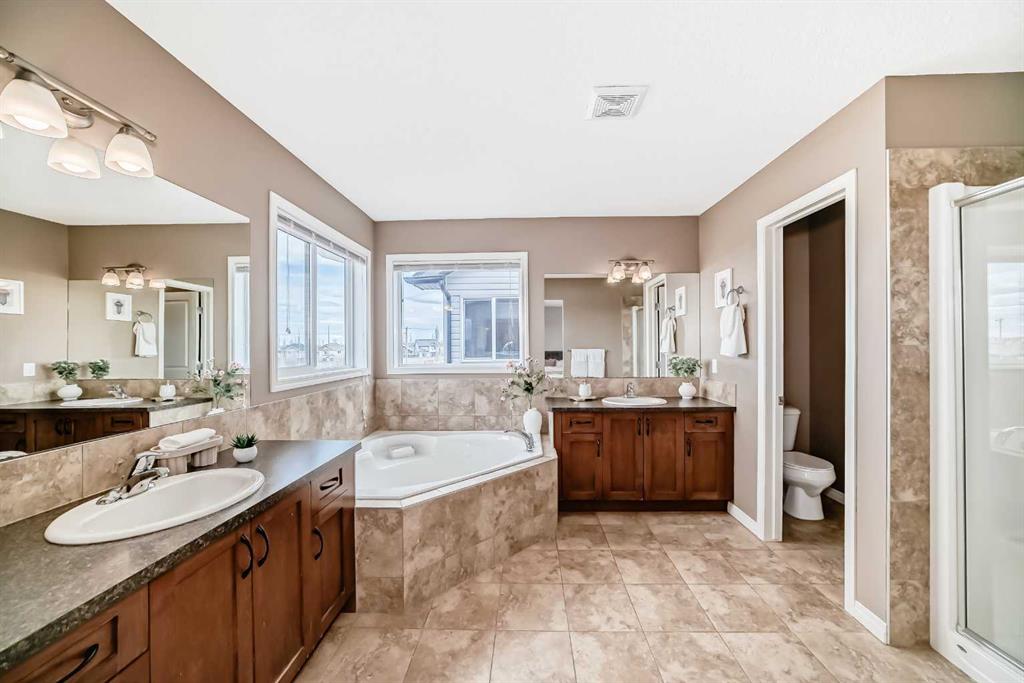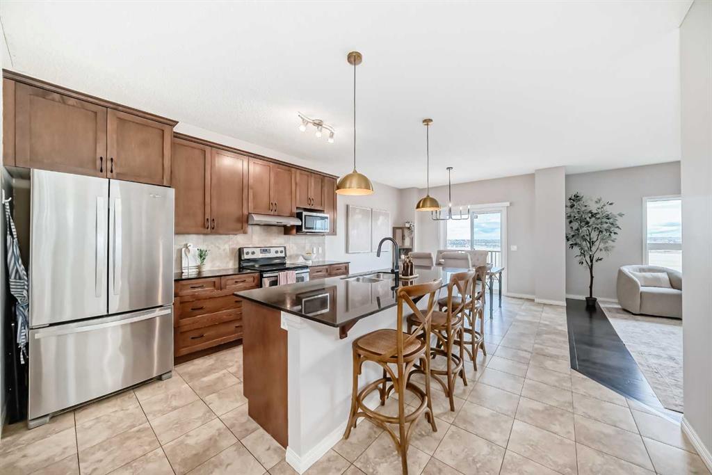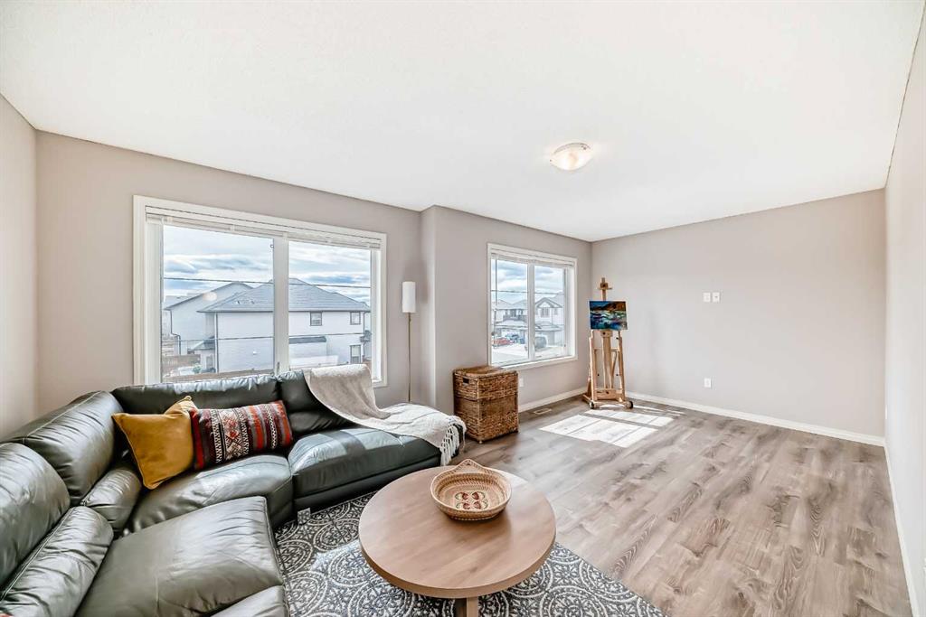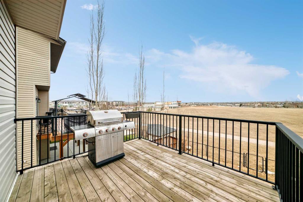 Come home to your dream house in the heart of Airdrie’s sought-after Prairie Springs community! Situated on a large lot and backing onto an incredible school green space, this beautifully designed two-story walkout house offers the perfect blend of modern elegance and functionality. Step inside to an inviting open-concept main floor, anchored by a spacious living area with a cozy gas fireplace. The kitchen is ideal for both family life and entertaining, featuring a large granite island, ample cabinetry, a pantry and seamless flow to the spacious living, dining and office spaces. Upstairs, retreat to the primary bedroom, complete with a generously sized walk-in closet and 5-piece ensuite with two vanities. The second floor also features two additional bedrooms, a four-piece bathroom and a bright, south-facing bonus room perfect for lounging or playtime. The natural light-filled walkout basement is an entertainer’s delight with a dedicated movie room featuring built-in surround sound. Two of the 5 bedrooms in the home are in the basement, perfect for any overnight guests. Step outside to a fully fenced private backyard with a stone patio and mature trees. Located at walking distance from schools (Windsong Heights 0-9, W.H. Croxford 9-12), playgrounds, Chinook Winds Park, shopping, and with easy access to Calgary via 40th Avenue onto Highway 2, this home delivers convenience without compromise. Enjoy peace of mind with major upgrades, including a new furnace (2026), air conditioning (2023), and a hot water tank (2023). Don’t miss your chance to call this gem your home!