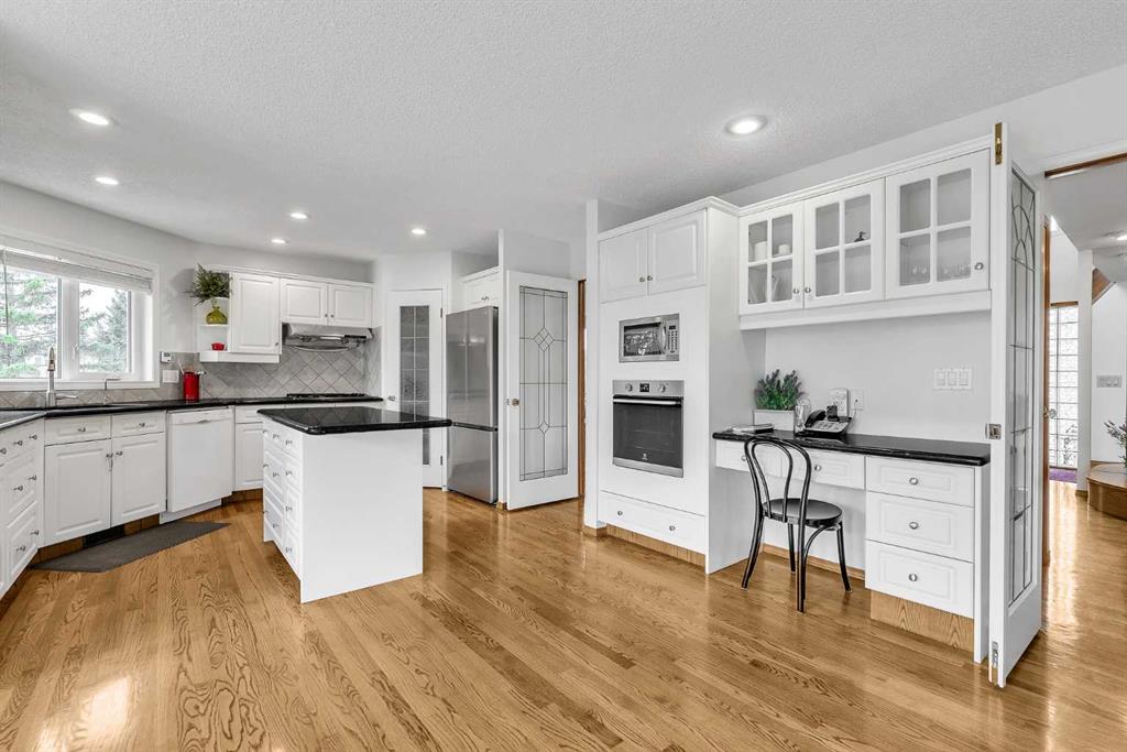 Lovingly cared for 2 storey home in Estate Neighborhood , backing to open green space and fronting to open path way , minutes to Fish Creek Park and easy access to all major roadways . This immaculate 3500 sq.ft home is fully developed with a walk-up lower level that's strategically designed , 2 bedrooms ( with in floor heating ) full bath , and a separate entrance . Large windows through-out make this home bright and inviting . These original owners have meticulously cared for this home and it shows ! Substantial upgrades including Clay Tile Roof , all new Triple Pane Windows , all Poly B removed in 2025 , new furnaces in 2023 , eave troughs 2022 , Hot Water tank in 2022 , Updated primary ensuite in 2023 , some new Appliances 2026 . This outstanding family home offers 4 Bedrooms up plus 2 down , along with a main floor den , formal dining room , cozy family room with feature gas fireplace and spacious living room . The main floor laundry room is oversized allowing for a great work station . . Gorgeous hardwood flooring throughout this immaculate home adds a warm and comforting feel flowing seamlessly throughout the entire home . Truly a great home in a desirable neighborhood .