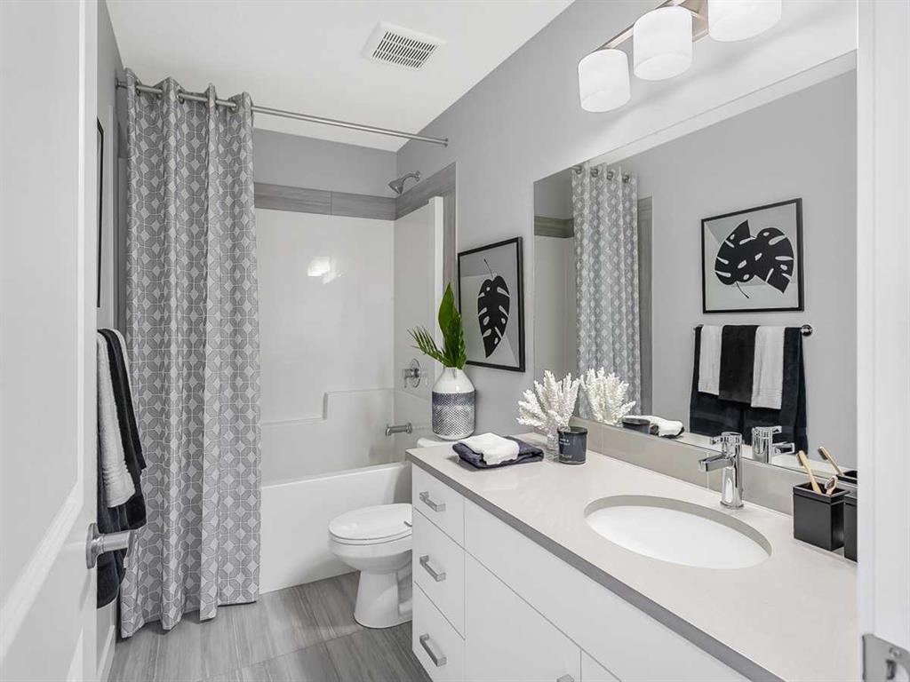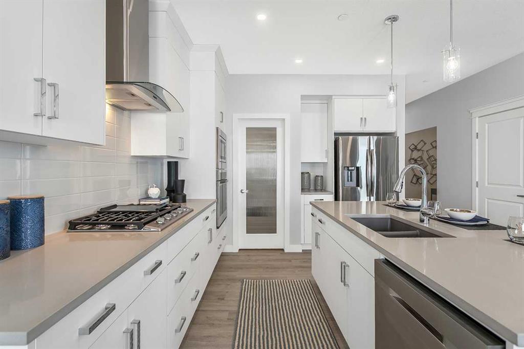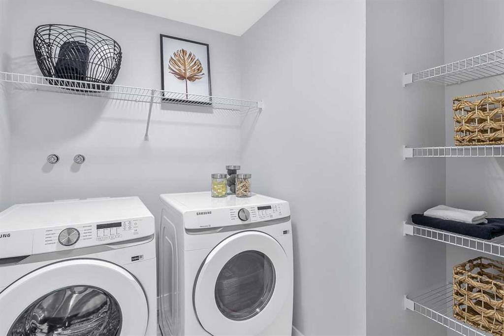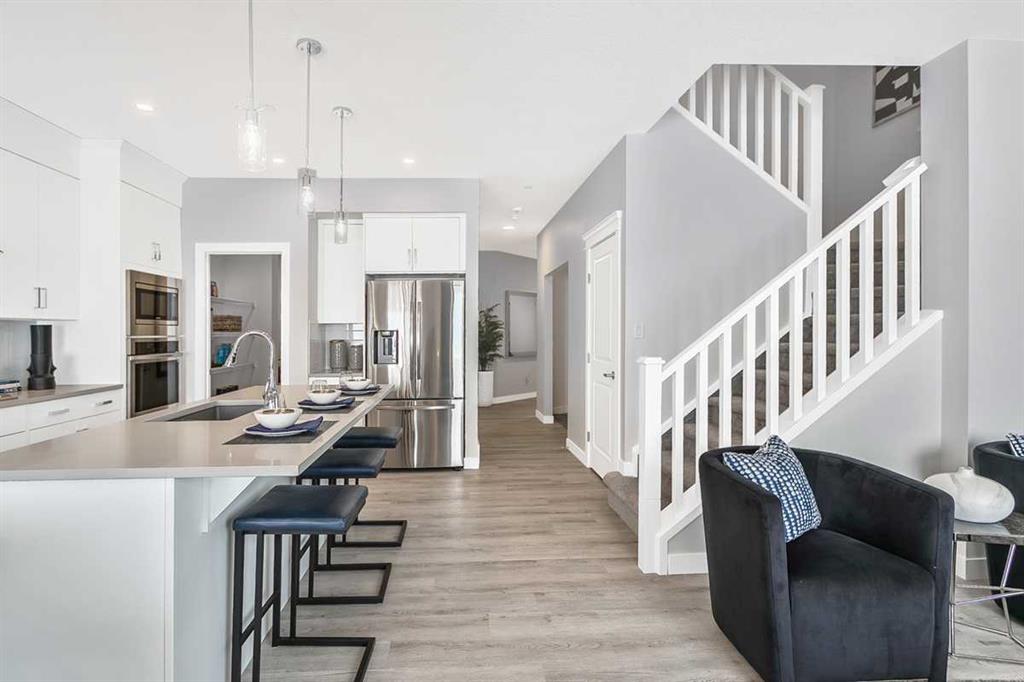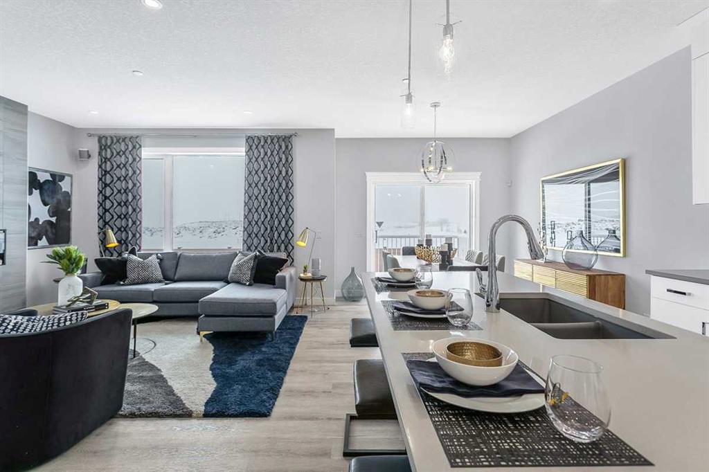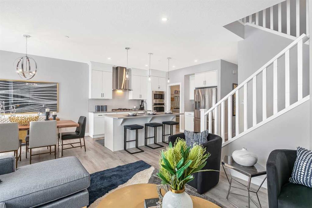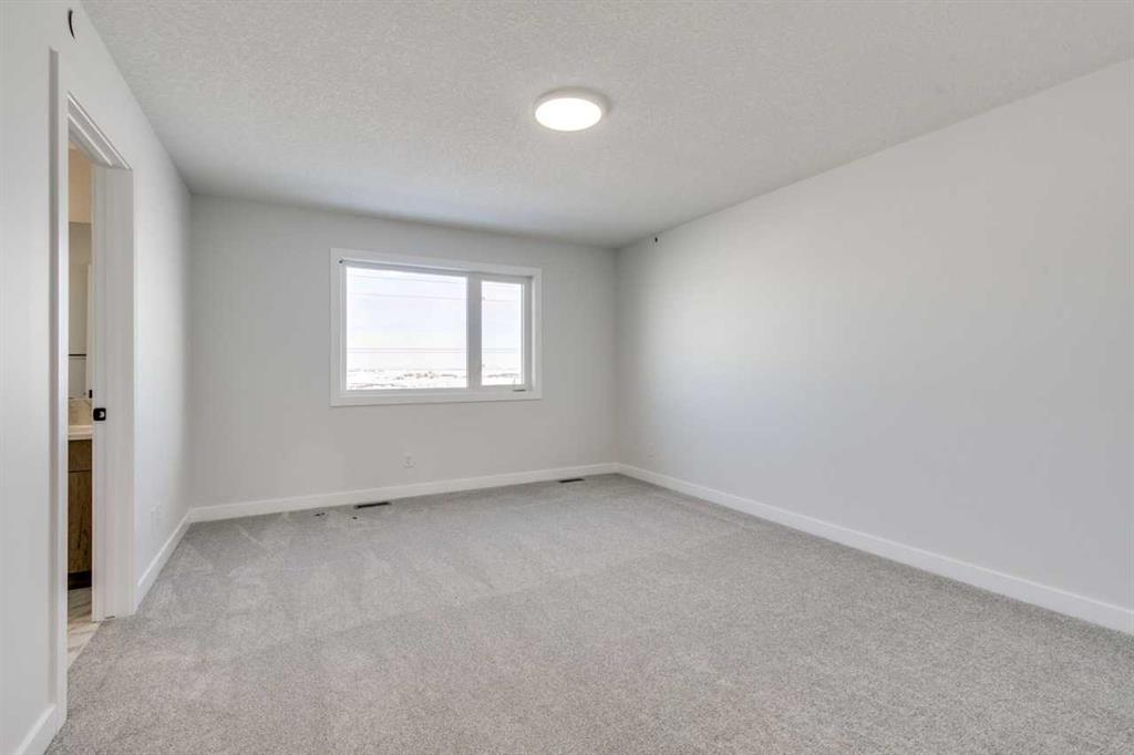 Welcome to your new home in one of Calgary's newest and most accessible communities - Hotchkiss. This beautifully designed 2040 SF home with a double car front attached garage and rear deck offers the perfect balance of comfort, style, and convenience—a short 5 minute drive to Seton amenities and quick access to Stoney and Deerfoot Trail. Step inside to find an open-concept floor plan filled with natural light, high ceilings, and modern finishes throughout. The spacious main floor features a large flex room suitable for a home office, and flows seamlessly into a gourmet kitchen complete with upgraded Samsung stainless steel appliances, quartz countertops, and a generous island—perfect for entertaining or casual meals. Upstairs, the primary bedroom is your personal retreat with large windows, a WIC and ensuite. Two extra bedrooms and a spacious bonus room provide ample space for entertaining, as well as comfortable accommodations for family and guests.