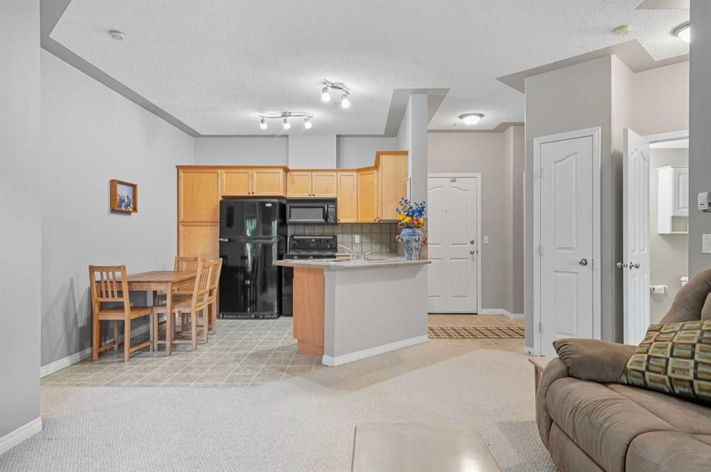 This immaculate condo is move-in ready and beautifully decorated in warm, neutral tones. The open floor plan features a spacious living area, bright dining space, and a functional kitchen complete with maple cabinetry, black appliances, and an over-the-range microwave. The thoughtful layout offers excellent privacy with the two bedrooms located on opposite sides of the unit, each with its own full bathroom. The primary suite includes a walk-in closet and ensuite bath. Step outside to your private patio, which also provides convenient access to your storage room. This home includes **titled underground parking** for added comfort and security. Enjoy an impressive list of building amenities — a fully equipped gym, steam room, games room, theatre, hair salon, party room, and tennis court. The beautifully landscaped grounds feature scenic walking paths and ponds, perfect for relaxing strolls. Located close to shopping, services, and public transit, this complex also offers ample visitor parking. A truly fantastic home that must be seen to be appreciated!
