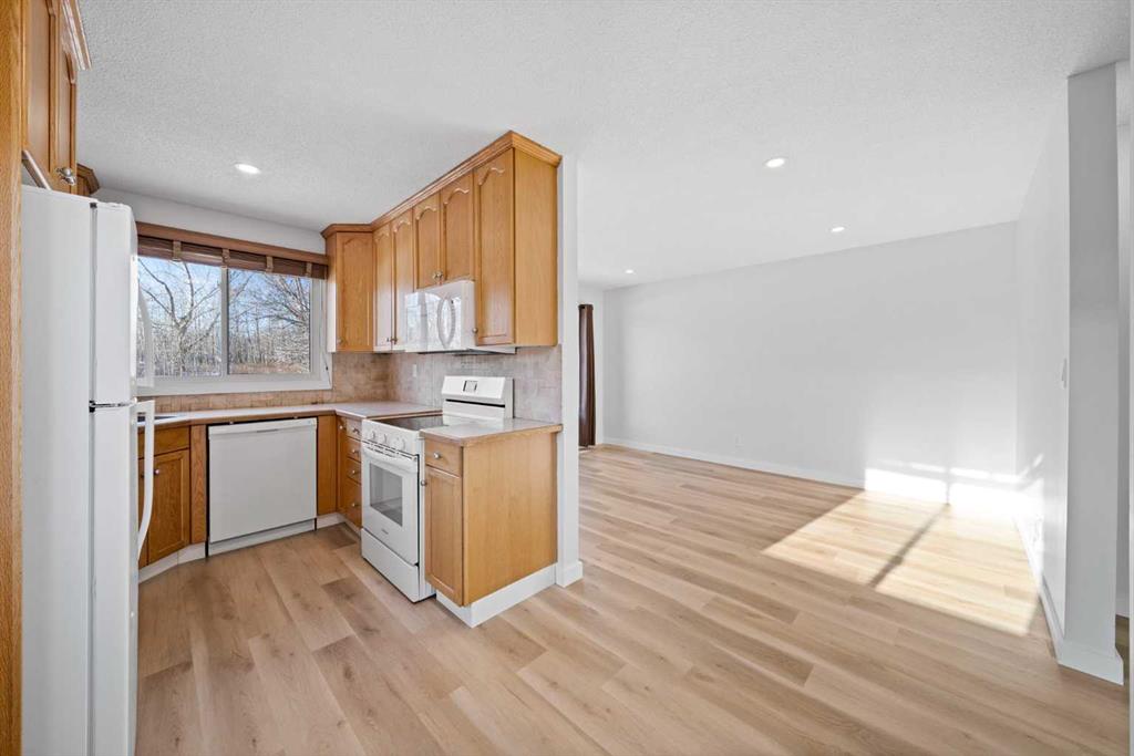 Updated and Move-In Ready Half Duplex Across From Green Space! Perfect for first-time buyer's or investor's, this well maintained half duplex offers fantastic value and convenience. The main floor features 3 bedrooms, 4-piece bathroom and a spacious bright living room. Enjoy a fresh, modern feel with NEW paint, flooring, kitchen appliances, faucet and stylishly updated bathroom! The partially finished basement provides excellent potential for an additional bedroom and bathroom—ideal for future growth or added rental income. Major updates in the last few years include a newer furnace and vinyl windows on the main floor. Outside, the fully fenced and landscaped backyard offers privacy and room to relax, along with two parking pads for added convenience. Located close to parks, schools, transit, and shopping, this home delivers comfort, updates, and location all in one package.