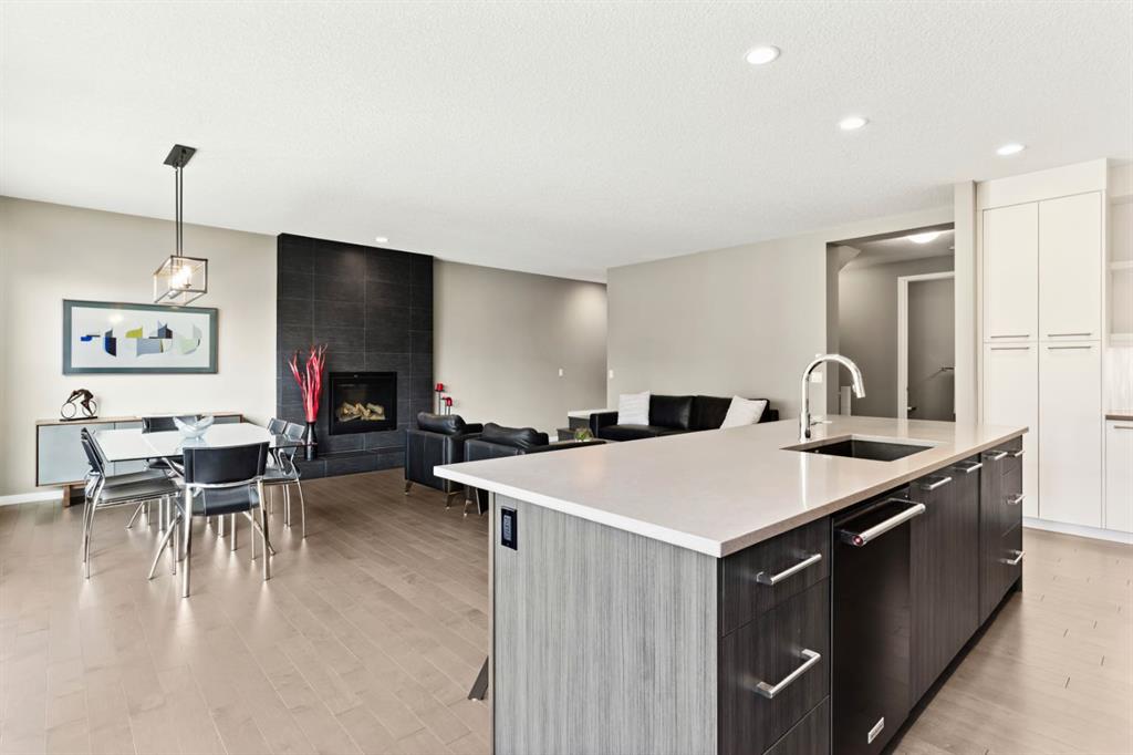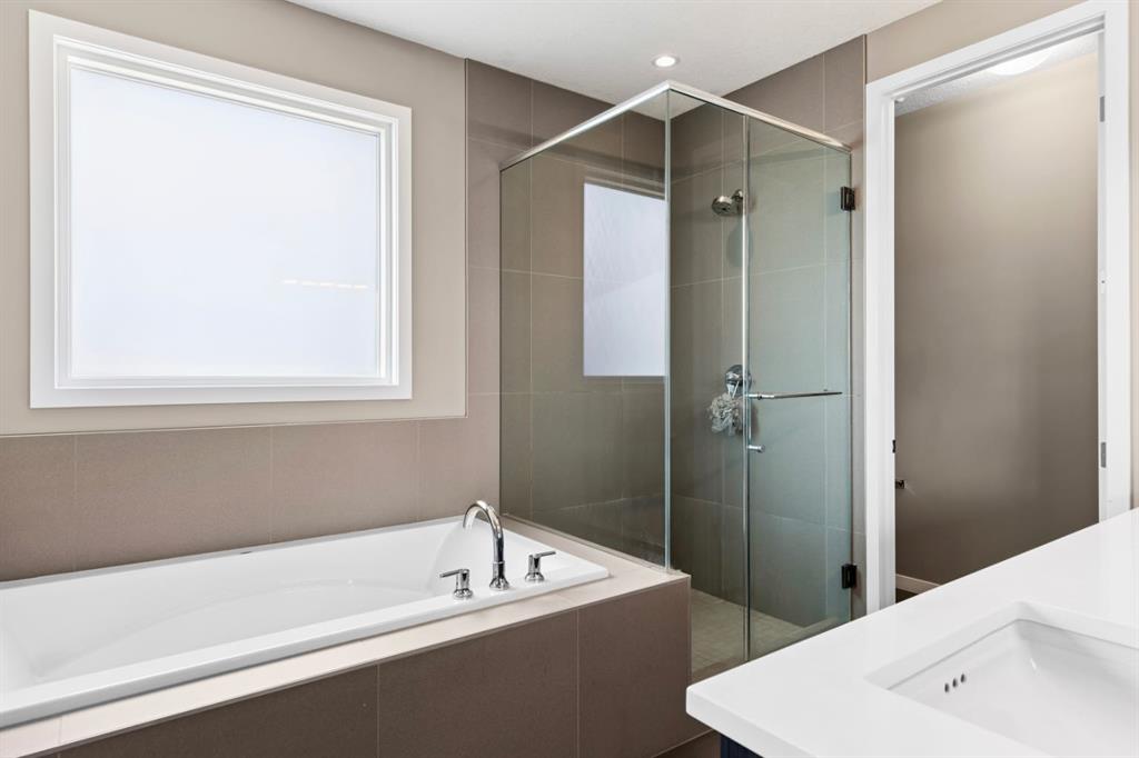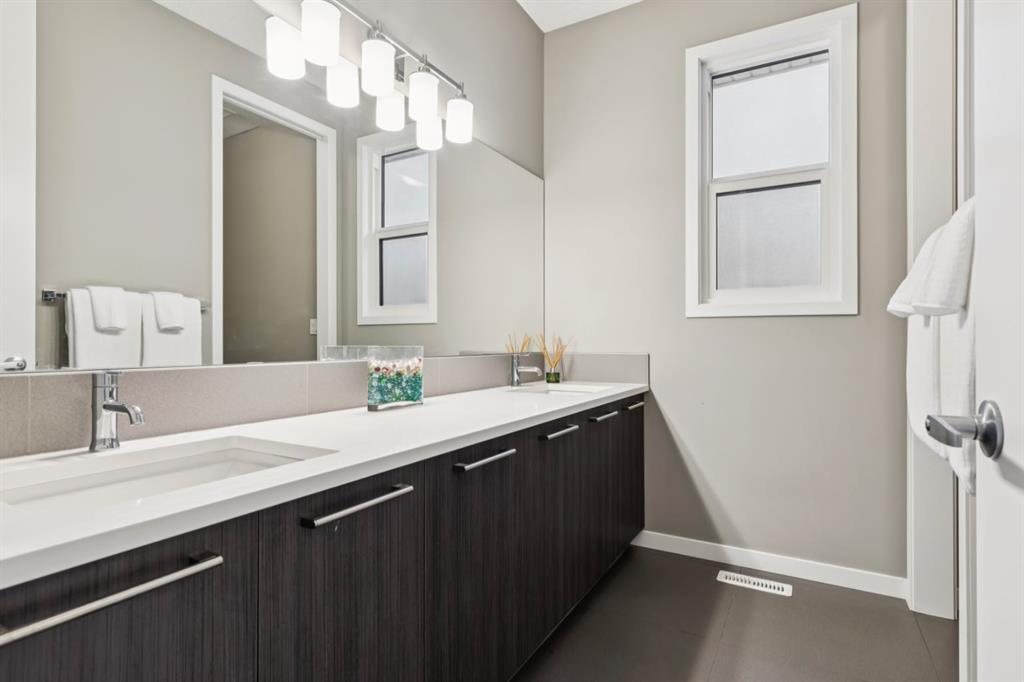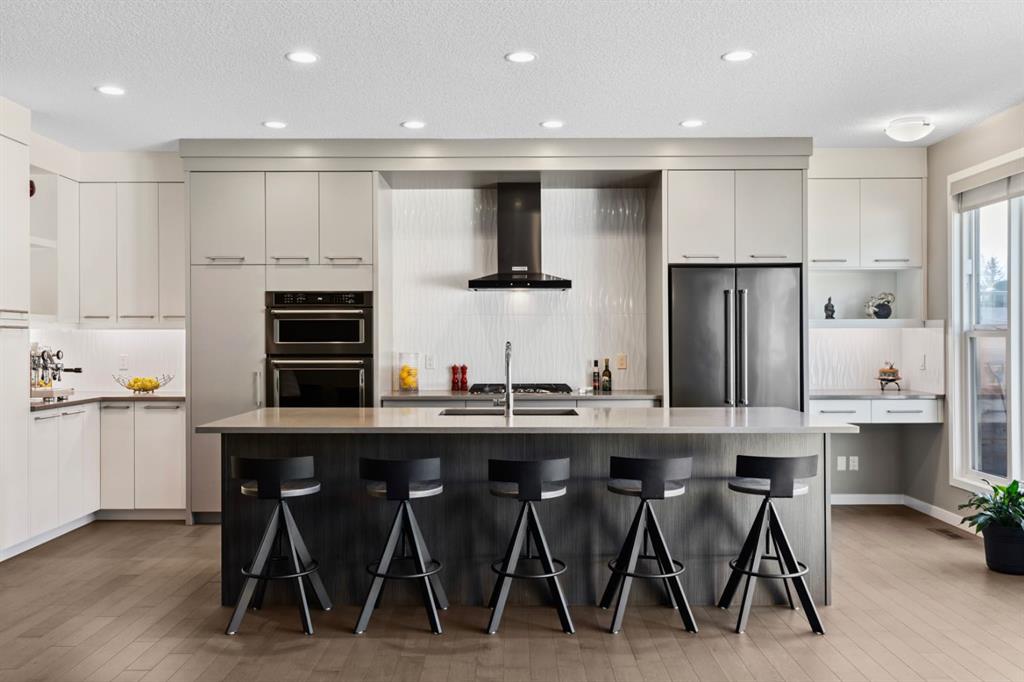 OPEN HOUSE – Sat February 7 (1-3pm) This Cedarglen home, just 7 year young, presents a sophisticated contemporary design, clean and crisp throughout. Featuring a bright, open plan, 9 foot ceilings and 8 foot doors across all three levels, wide plank hardwoods, quartz countertops and an urban vibe throughout – SHARP! This two storey home, just seven years young .... SHOWS LIKE NEW!, offering 3218 sq ft of living space over three levels, 3+1 beds PLUS a Bonus Room up, 3.5 baths and a fully developed lower level! Your family will love this space. This is a premier address, West Grove estates, a lightly travelled crescent in highly desirable West Springs.... great schools, shopping and services within walking distance of your new home! On arrival you will be struck by the exposed aggregate drive and walkway, and acrylic stucco – NICE! Entering you will love the 9’ ceilings (on all 3 levels!), wide plank hardwoods and the BRIGHT, OPEN PLAN. The main floor centers around the Great Room in back, a broad open space with a large family room, generous dining space and a striking kitchen. The kitchen features an abundance of counter space, a center island breakfast bar, S/S appliances including a gas cooktop and wall oven, a SPACE for ENTERTAINING… leading directly to your rear composite deck which spans the entire back of the house – NICE! Leading upstairs you will find a large Bonus Room and three beds. The primary retreat is generous in size and features a 5pc en suite complete with quartz countertops, a soaker tub, free-standing seamless glass shower and a large walk-in closet with built-ins. The two additional beds up are also generous in size and share a full 5 pc bath. The lower level has been professionally developed and offers a broad open rec room which will easily accommodate a media space and/or fitness space as you choose, plus a guest bedroom and full bath.