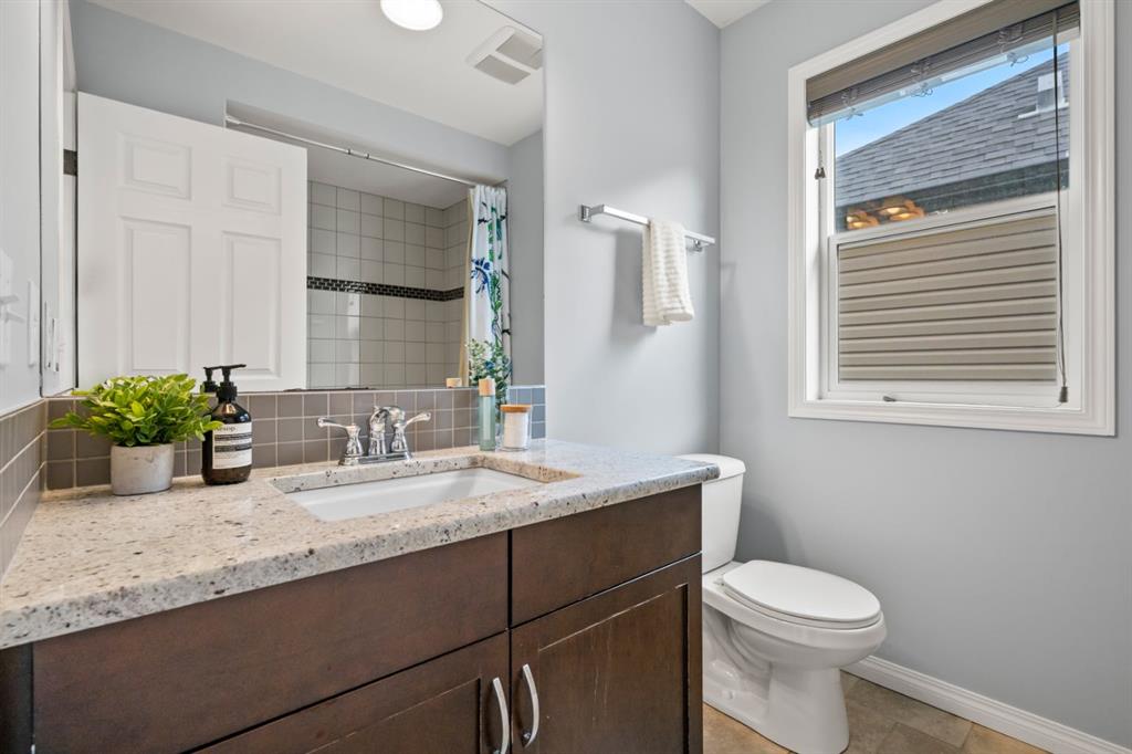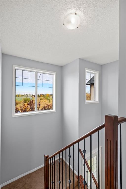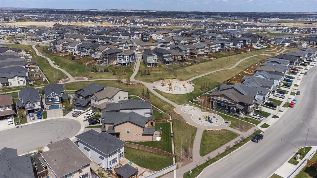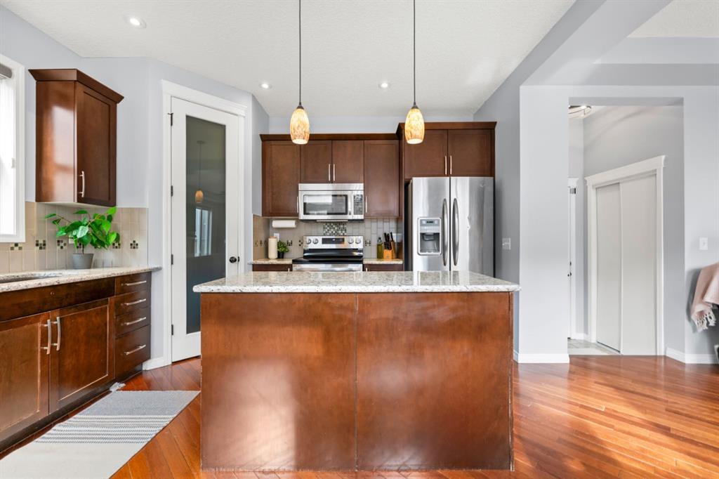 Welcome to Windsong in Airdrie! This beautifully designed 2-storey home offers 1567.70 SqFt. of stylish living with 3 bedrooms, 2.5 bathrooms, and a double attached garage. Freshly painted throughout (2025), the home feels bright, inviting, and move-in ready. From the moment you arrive, the charming covered front veranda and vaulted entry set the tone. Inside, you’ll find 9-ft ceilings, 8-ft doors, diagonally-laid hardwood, oversized windows with Allusion blinds, and detailed ceiling accents with pot lighting. A granite-faced fireplace anchors the open-concept living space, adding warmth and sophistication. The kitchen is both functional and elegant, showcasing espresso maple cabinetry, granite countertops, stainless steel appliances including a new range (2025), a new kitchen sink and faucet (2025), a large island, corner pantry, and heightened cabinets for extra storage. The dining area opens seamlessly to your sunny south-facing backyard—fully landscaped, fenced, and perfect for BBQs (gas hook-up) and family gatherings. Upstairs, the spacious primary suite features a walk-in closet and a luxurious ensuite with a tile and glass shower, granite vanity, and dual sinks. Two additional bedrooms, a full bathroom, and a convenient laundry room with a new washer and dryer (2024) complete the upper level. Additional updates include a new hot water tank (2022), new garage door opener and springs (2025), baseboards freshly painted (2025), new smoke detectors (2025), furnace serviced (2024), and ducts cleaned (2025)—all adding peace of mind and lasting value. Situated directly across from Chinook Winds Regional Park, you’ll love the unbeatable convenience of having a skate park, splash park, ball diamonds, walking paths, and schools just steps from your front door. From your veranda, enjoy front-row seating to Airdrie’s spectacular Canada Day fireworks—a truly unique perk of this prime location. With shopping, dining, golf, and transit nearby, this home combines modern comfort, thoughtful upgrades, and an ideal setting. If you’re looking for a move-in ready home with timeless appeal and an exceptional lifestyle—this Windsong gem is the one!
