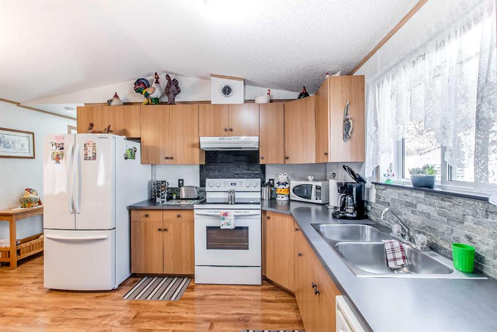 Move-in ready and on its own lot! This charming mobile home is tucked away in a quiet 45+ community in Riverside, just steps from parks, walking paths, shopping, and downtown amenities. The open-concept main living area features vaulted ceilings and a bright, spacious kitchen with a center island, plenty of cabinet space, and a dining area that flows easily into the living room. There are two comfortable bedrooms, a full four-piece bathroom, and convenient in-suite laundry with extra storage. Outside, you’ll enjoy a fully fenced yard (except a small entryway at the front) with a deck, patio, and low-maintenance landscaping, plus a double parking pad out front. Recent updates include a new hot water tank, washer, and dryer (all just one year old). Condo fees are an affordable $119/month and include water and common area maintenance. A great option for anyone looking for easy, affordable living in a peaceful location!