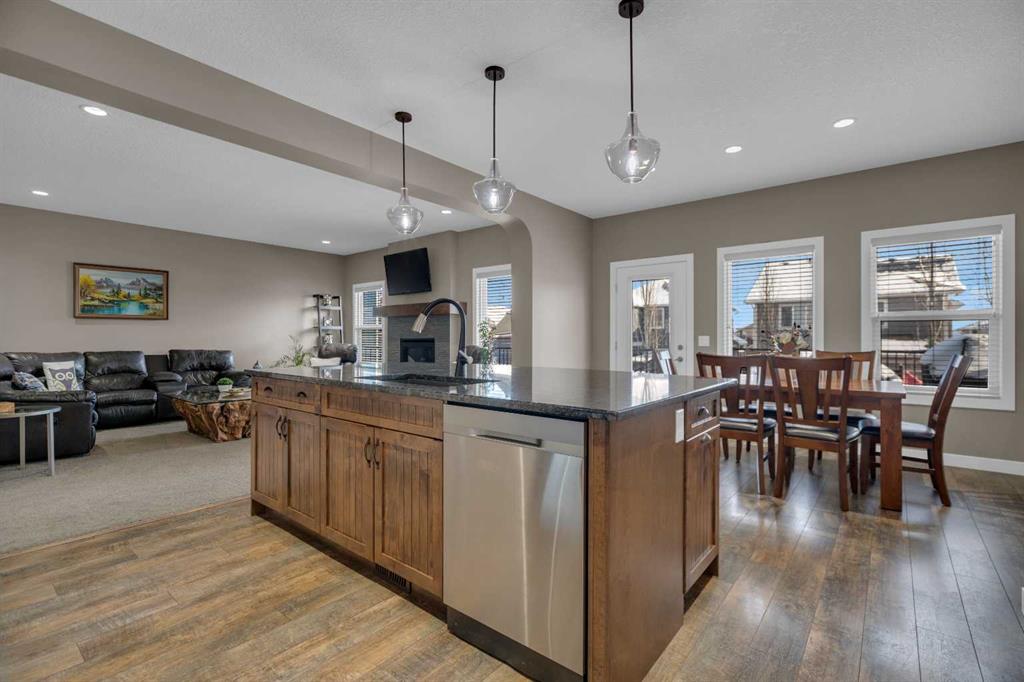 Welcome to Westmere — Chestermere’s Most Loved Community! This beautifully maintained 2,427 sq. ft. home sits on a landscaped lot framed by mature privacy trees, creating a peaceful, private backdrop for everyday living. From the moment you enter, the home feels expansive, inviting, and designed for real life. Step into a large, welcoming foyer that sets the tone for the thoughtful layout ahead. The main level features a legal bedroom—perfect for multigenerational families, guests, or a private office space. The heart of the home is a bright, open-concept living area with a spacious living room. The generous dining space opens out to a back deck big enough to host the whole family! The deck feature 2 custom power awnings so you can customize your outdoor time however you wish, the awnings feature wind sensors to maximize longevity on the luxury feature. The oversized kitchen island is also ideal for hosting. A walk-in pantry and a convenient powder room complete this level. The top floor offers an exceptional layout designed for comfort and boasts vaulted ceilings in every room. The primary suite is impressively large with a beautifully appointed ensuite that truly feels like a retreat. Two additional oversized bedrooms—each with charming window benches—provide space to grow, relax, and personalize. A 4-piece bathroom, a cozy family room, and a laundry room with abundant storage make this floor as functional as it is inviting. The fully developed basement adds versatility with two bedrooms, including one that’s primary-sized. A kitchenette with oven rough-ins, a comfortable living room, a 3-piece bathroom, and smart storage solutions make this level ideal for extended family, teens, or guests seeking their own space. The oversized (that word cannot be used enough to describe this home) garage features a 220V rough in that will excite any handyperson! The garage also has a man door to the side yard for easy access. This home combines space, comfort, and community in one of Chestermere’s most desirable neighbourhoods — the perfect place to settle, grow, and truly feel at home.