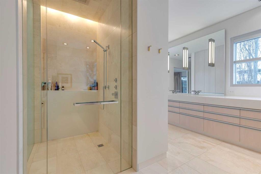 This exceptional Roxboro residence represents a rare synthesis of architectural excellence, superior craftsmanship, and thoughtful modern design, resulting in a home of enduring quality and refined livability. Constructed by award-winning Waterford Homes, with architecture by Marvin DeJong, interiors by Ronald Bills of Macintyre Bills, landscape architecture by Doug Carlyle & Associates executed by Sundance, and a custom kitchen by DENCA, the property reflects a best-in-class collaborative approach to residential construction. Set on a quiet and private 50 by 126-foot lot with a coveted west-facing backyard, the home offers 3,406 square feet above grade and 1,579 square feet below grade across a highly functional 3+1 bedroom, 4 bathroom layout that balances formal and informal spaces with a comfortable family feel. Extensive natural light permeates the interior through commercial-grade Ferguson windows and a seamless indoor-outdoor flow centered around a striking courtyard of mature poplar trees, while radiant-heated limestone flooring on all three levels and custom white ash millwork throughout provide warmth, continuity, and timeless elegance. The custom DENCA kitchen is equipped with a top-tier Sub-Zero and Gaggenau appliance package, including a full-size refrigerator, integrated fridge and freezer drawers, wine and bar fridges, an induction/gas/Teppan Yaki cooktop, and dual wall ovens with steam functionality, complemented by Caesarstone countertops and Dornbracht plumbing fixtures. The primary suite functions as a private retreat, featuring a luxurious ensuite with integrated laundry, an expansive walk-in closet, a Sub-Zero bar fridge, a gas fireplace, and Artemide reading lamps, while the home’s mechanical and structural infrastructure is equally uncompromising, with radiant in-floor heating throughout, two central air conditioning systems, an industrial-grade garage dehumidifier, a central vacuum system, water softener, and a robust, low-maintenance building envelope designed for long-term durability and comfort. Designed for entertaining, the west-facing backyard and rear patio offer a gas-assisted wood-burning fireplace and professionally designed low-maintenance landscaping, extending the living experience outdoors, while comprehensive inclusions such as custom electric window coverings, a fully integrated audio-visual system with built-in speakers and televisions, garage door openers, ensure the home is entirely move-in ready, making this a truly turnkey offering that delivers architectural distinction, functional intelligence, and a refined standard of living rarely found in today’s market.