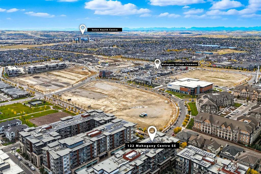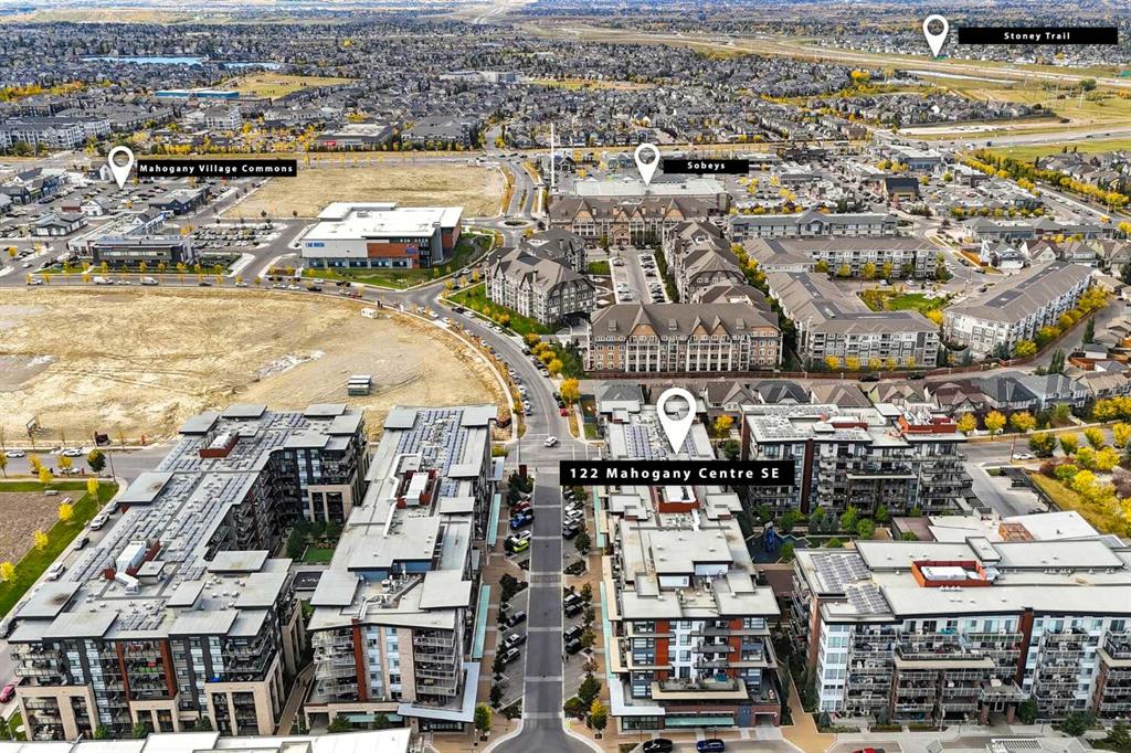 Lake Lifestyle | Resort-Style Amenities | Underground Parking - Welcome to Calligraphy at Westman Village in the heart of Mahogany, Calgary’s premier lake community, where convenience meets resort living. This two-bedroom condo offers a functional layout with thoughtful upgrades, including central air conditioning,and access to unparalleled amenities. There is truly nothing else like this complex in the city. The open-concept main living space is filled with natural light and features a modern kitchen with stainless steel appliances, stone counters, and a large peninsula. Adjacent to the kitchen, the spacious laundry room doubles as a pantry with plenty of storage. The living and dining areas flow seamlessly, creating the perfect setting for both everyday living and entertaining. The private second bedroom offers flexible space for a home office or guest room, while the primary bedroom includes a large window, ample walk-in closet, and easy access to the modern 4-piece bath. Step outside to enjoy a massive private and covered balcony, ideal for relaxing or entertaining year-round. Take advantage of Westman Village’s unmatched amenities: an indoor pool with waterslide, state-of-the-art fitness centre, wine cellar, golf simulator, theatre room, demonstration kitchen, workshop, parks, and more. Stroll the landscaped pathways around Mahogany Lake, relax on the beach, or explore local shops and dining right at your doorstep. With secure underground parking, on-site concierge, air conditioning for year-round comfort, and countless community activities, this is more than a home—it’s a lifestyle. Perfect for professionals, downsizers, or anyone seeking a vibrant community with convenience and recreation at its core. Book your showing today and experience the best of Mahogany living at Westman Village.