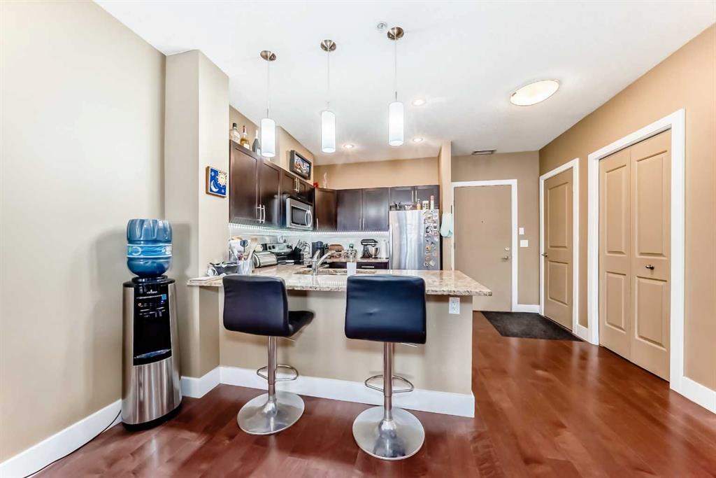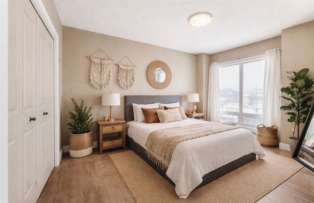 An incredible opportunity to create a space you’ll truly love coming home to. Purchase within the first 30 days and receive a $6,000 credit toward fresh interior paint and new flooring in the two bedrooms — giving you the freedom to design your new home exactly the way you envision it. Go Boho chic, ultra-modern, or ranch farmhouse inspired — professionally prepared concept photos showcase just how impactful this transformation could be. Welcome to Montgomery — one of Calgary’s most sought-after communities for those who appreciate outdoor living paired with urban convenience. With extensive bike paths, river access, local shops, cafés, and restaurants just steps away, this location offers an incredible lifestyle. Ideally situated near the University of Calgary, Foothills Medical Centre, Alberta Children’s Hospital, and WinSport (Canada Olympic Park), this is a prime location for professionals, students, and outdoor enthusiasts alike. This beautifully appointed two-bedroom condo features 9-foot ceilings and in-floor heating for year-round comfort. The open-concept floor plan makes entertaining effortless, highlighted by engineered hardwood floors, granite countertops, and a spacious living and dining area that flows seamlessly to your private balcony — complete with a gas BBQ hook-up. The primary suite is a standout, offering enough room for a king bed and a super generous walk-in closet. A well-sized second bedroom provides flexibility for guests, a home office, or shared living. Design a home that reflects who you are — your vision, your style, your choices. Make it yours from day one. Your next chapter begins right here.