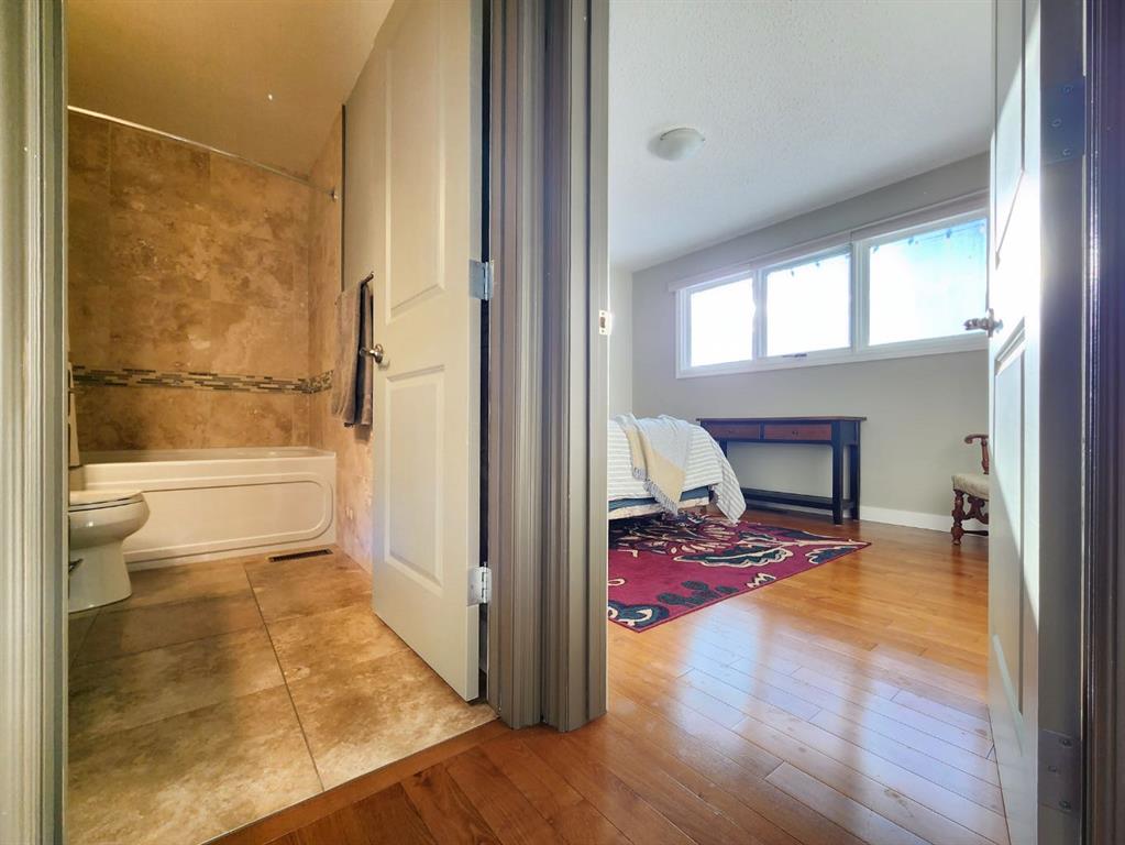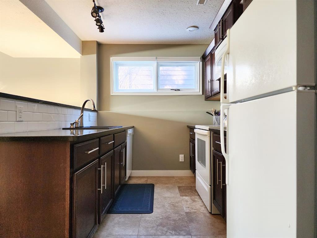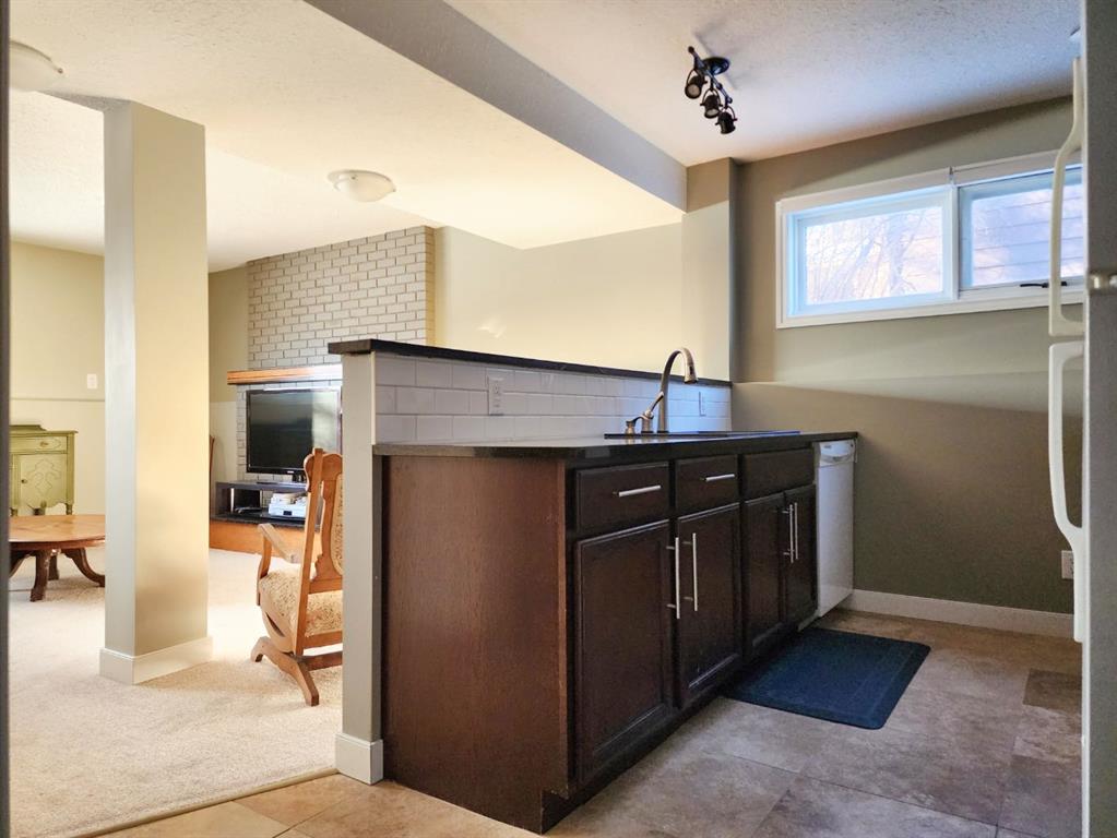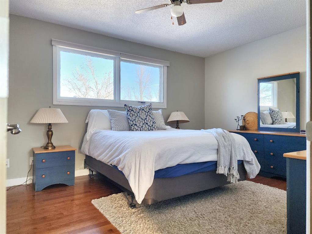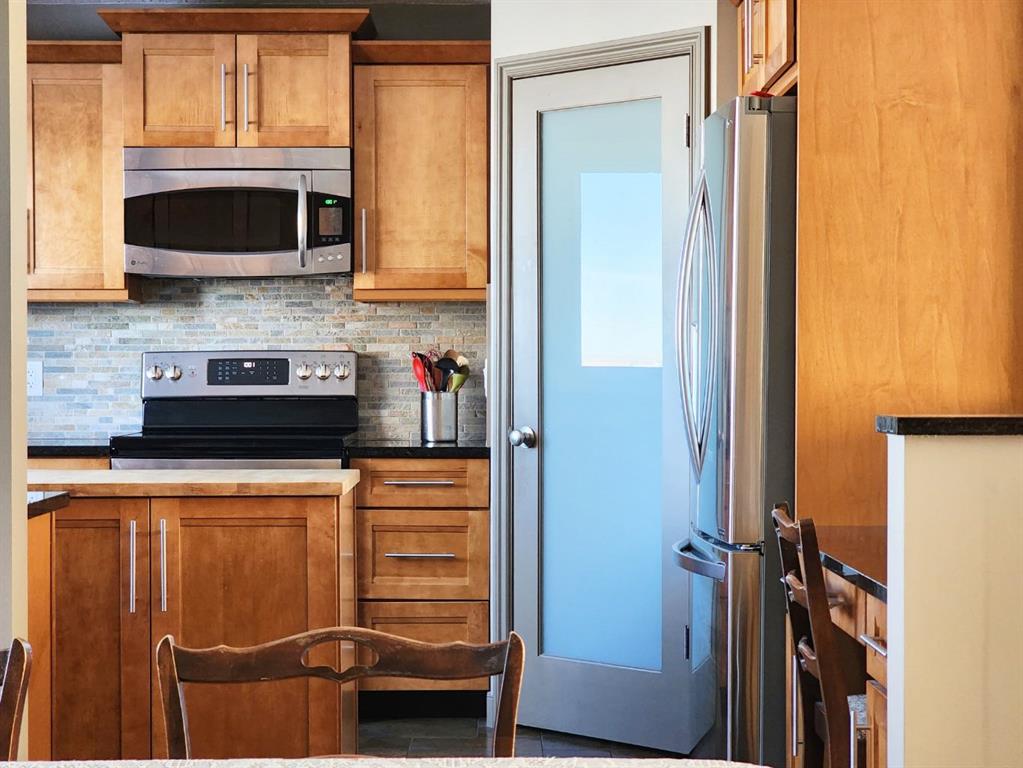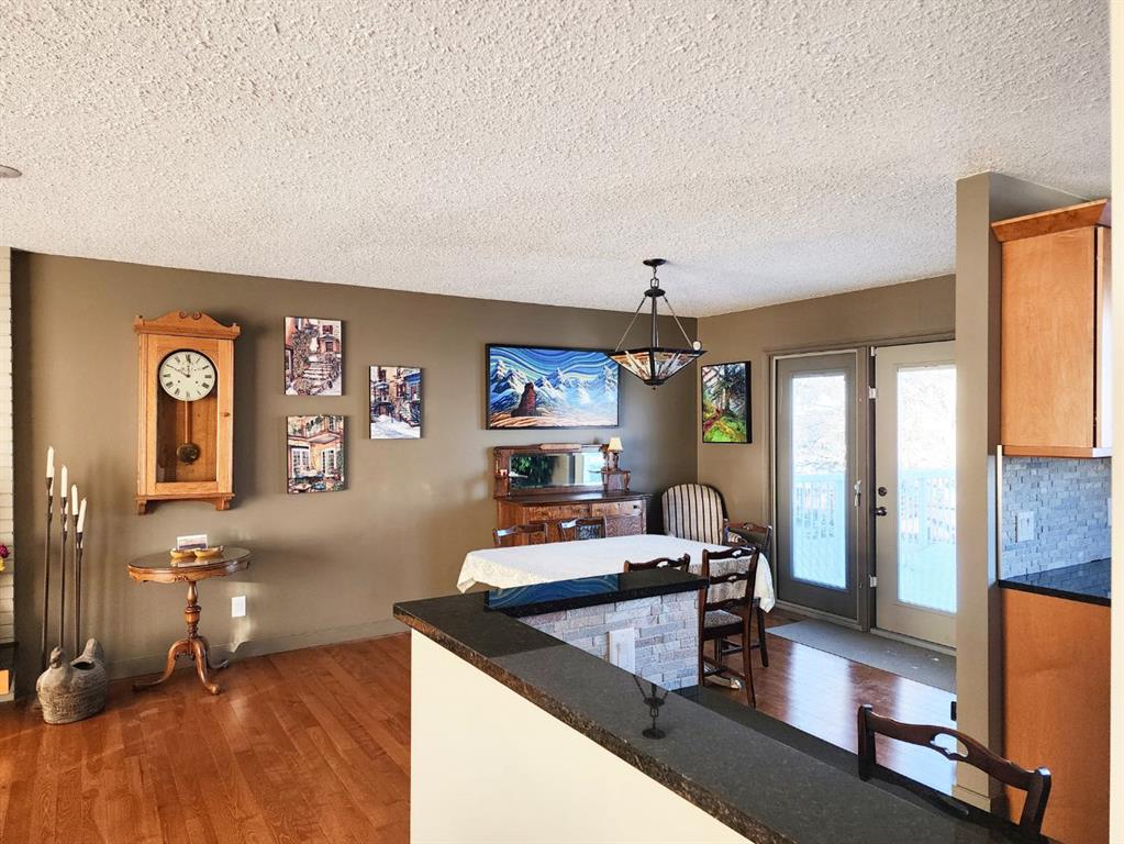 This move-in-ready bi-level home offers 4 bedrooms and 3 bathrooms, with a downstairs suite ideal for a mother-in-law suite, multi-generational living, or a revenue property. The home has been meticulously renovated, well maintained, and thoughtfully updated throughout. The upper level features two bedrooms, a beautifully updated 4-piece bathroom with stunning tile work and granite countertops, and a spacious living and dining area. The renovated kitchen showcases updated cabinetry, granite countertops, tile flooring, a stone-style backsplash, updated sink and fixtures, a large pantry, a movable island, and a built-in desk area with granite countertops. Hardwood flooring throughout the main level adds warmth and character. The fully developed basement includes two additional bedrooms and two updated bathrooms (two 3-piece), along with a full, updated kitchen featuring modern cabinetry, granite countertops, a white subway tile backsplash, fridge, stove, over-the-range microwave, and dishwasher. A mechanical room with laundry completes the lower level. This versatile property can be enjoyed as a 4-bedroom, 3-bath family home or used as a mortgage helper with an illegal basement suite offering one bedroom, one bathroom, a full kitchen, and a separate back entrance. Additional features include an oversized single garage, a large yard with garden area, and a spacious deck off the back dining area—perfect for outdoor living. Located in a cul-de-sac, the backyard backs onto green space, offering added privacy. Claresholm offers the perfect blend of small-town charm and everyday convenience, with schools, shopping, dining, and recreation all close by. Known for its welcoming community and relaxed lifestyle, Claresholm is an ideal place to call home.