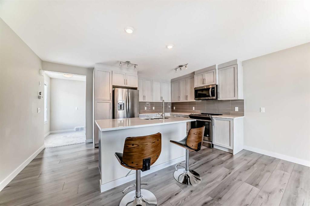 Welcome to this attractive end-unit townhouse in desirable Sage Hill, complete with central air conditioning for added year-round comfort. Featuring a fully developed basement, this spacious 3-bedroom home offers a total of 1,637 sq.ft. of comfortable living space. Functional and versatile layout with 3 full bathrooms and 1 half bath, ideal for families, guests, or multi-generational living. Enjoy soaring ceilings in the living room that create an open and airy feel, plus the convenience of a single attached garage. Perfectly positioned facing a cheerful playground, offering a pleasant outlook and a great setting for families with children. Located in a vibrant community surrounded by scenic walking and biking paths, with nature right at your doorstep. Just minutes to Sage Hill Crossing and Beacon Hill shopping centres, where you'll find Costco, H Mart, Walmart, T&T Supermarket, restaurants, parks, and everyday amenities. Quick and convenient access to Stoney Trail makes commuting across the city easy. Don’t miss this fantastic opportunity—book your private showing today!