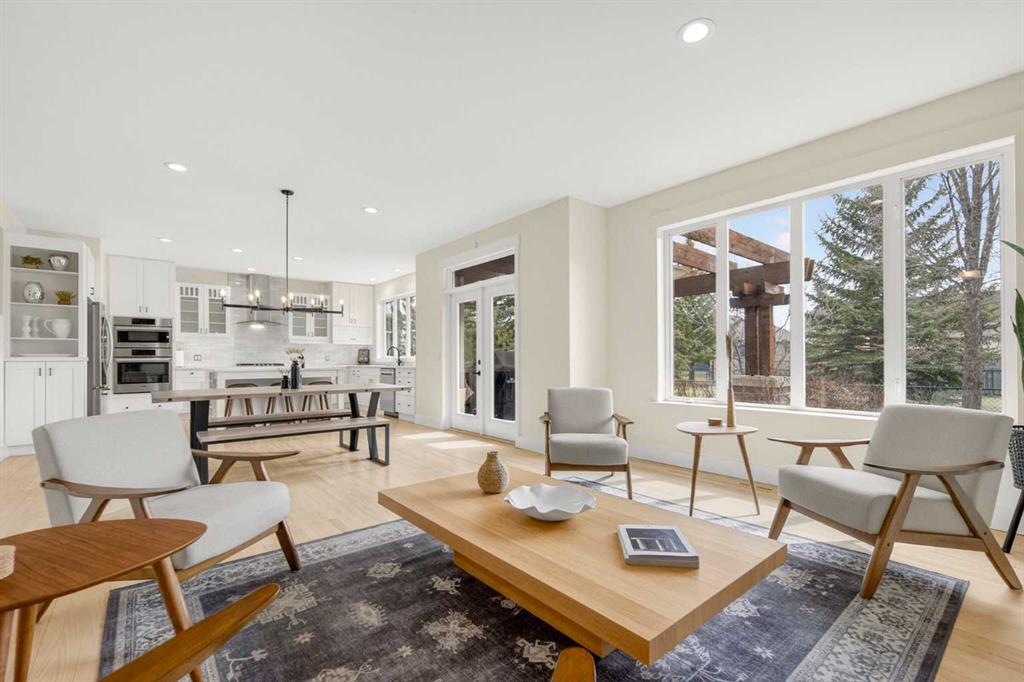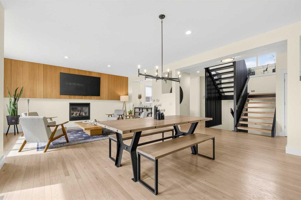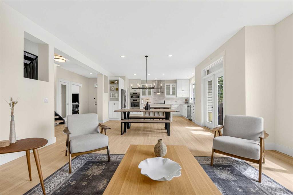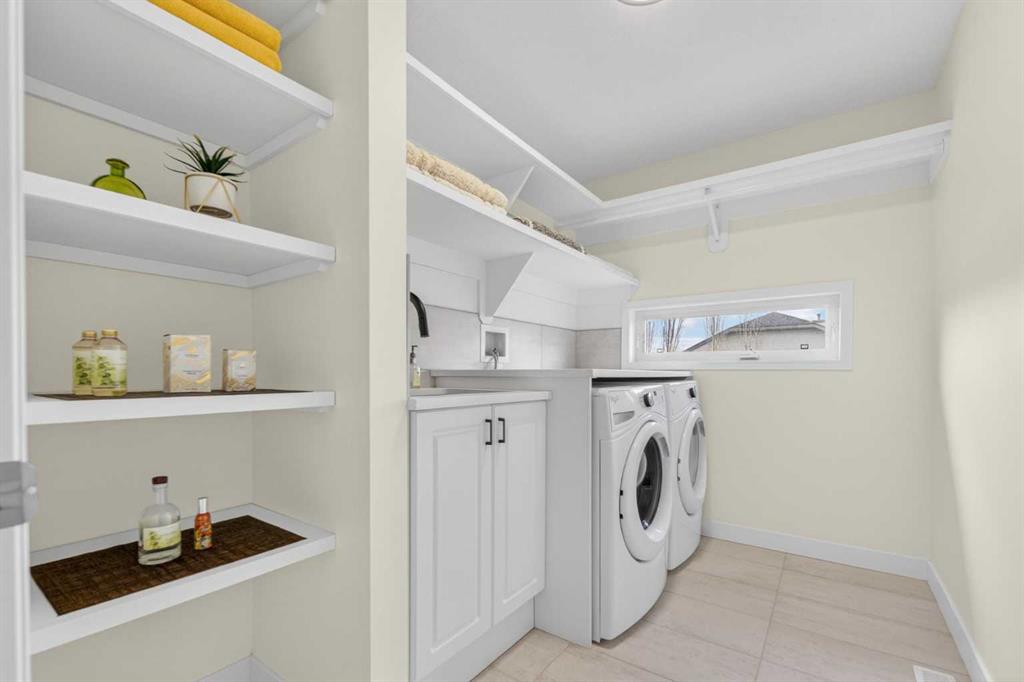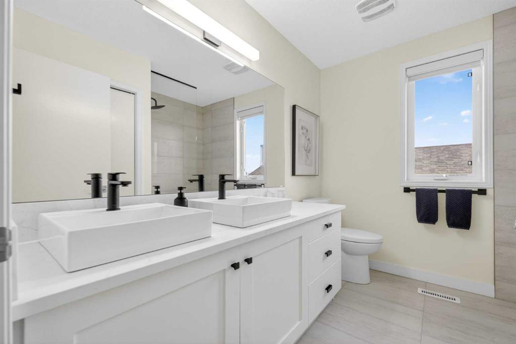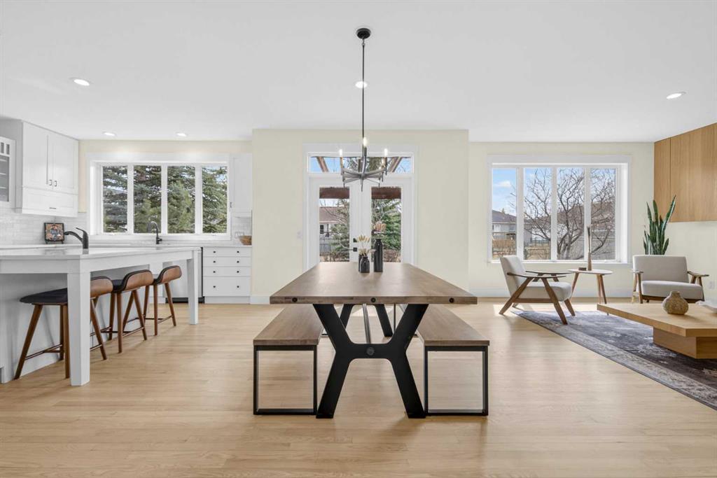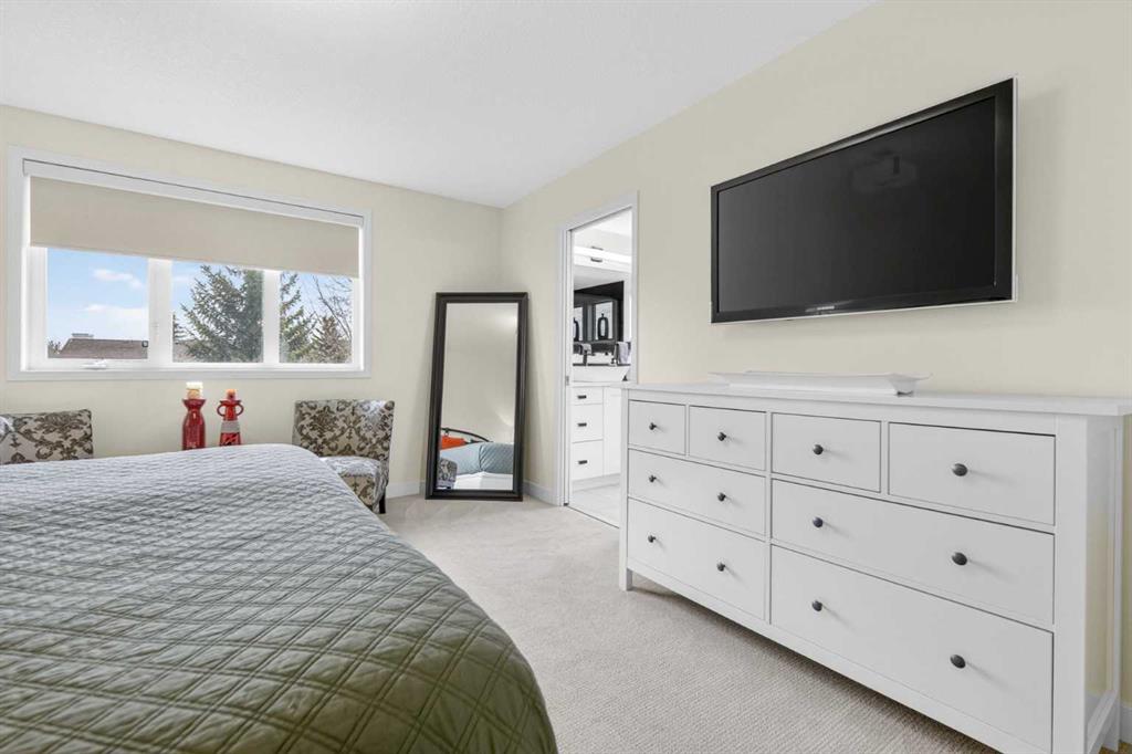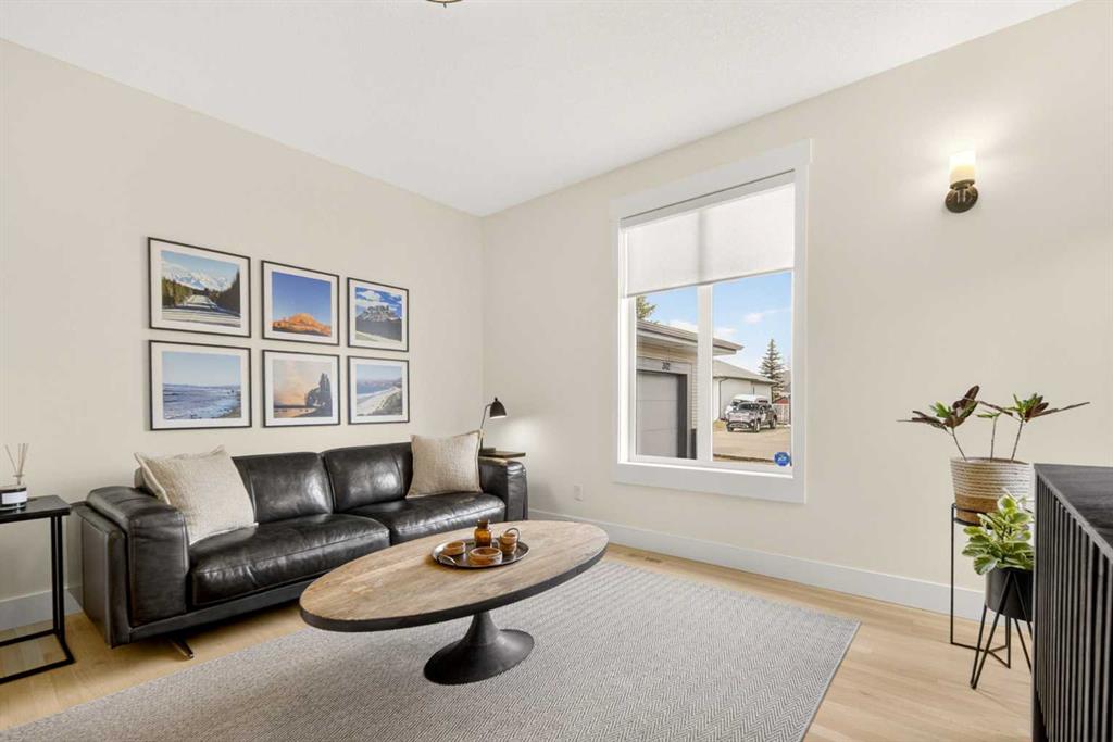 Welcome to this beautifully renovated 2,613 sq. ft. residence in the heart of Crossfield. Perfectly positioned on a quiet street backing onto a peaceful green belt, this home was extensively updated just two years ago to blend timeless craftsmanship with refined modern comfort. From the moment you arrive, the curb appeal is undeniable, highlighted by an oversized heated side-access garage, a new roof, freshly stained cedar shakes, and a uniquely finished driveway with colored concrete and an exposed aggregate border. Inside, a thoughtfully designed mudroom offers built-in wardrobe storage, bench seating, and wainscoting for a functional everyday entrance. The main floor showcases site-finished red oak hardwood with a white-washed matte finish, complemented by a stunning open-riser fir staircase and striking vertical slat feature walls. The great room is anchored by a gas fireplace with a light oak feature wall. French doors lead to the private south facing backyard oasis, complete with mature trees, underground sprinklers, and a paving stone patio with a cedar pergola. An additional flex room on the main floor offers versatility as a formal sitting area, private den, or guest space. At the heart of the home is a chef-inspired kitchen featuring a large island with a prep sink, a second sink overlooking the backyard, high-end built-in appliances, a gas cooktop, quartz countertops, solid oak cabinetry with under-cabinet lighting. The upper floor is tailored for family living, offering four spacious bedrooms. The newly renovated ensuite serves as a luxurious retreat with double vanities, a freestanding soaker tub, full tile shower, and a walk-in closet with custom shelving. The fully renovated laundry room is equally well appointed with a sink and custom storage. The unfinished basement presents an excellent opportunity to customize additional living space to suit your needs, while the rest of the home is truly move-in ready with updated plumbing fixtures and designer lighting throughout. This beautifully appointed property is a rare offering in a friendly family community. Book your private tour today and experience everything this exceptional home has to offer.
