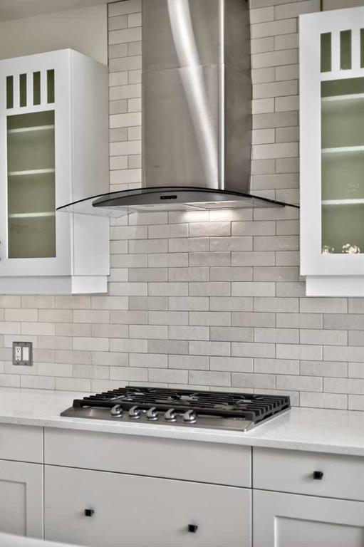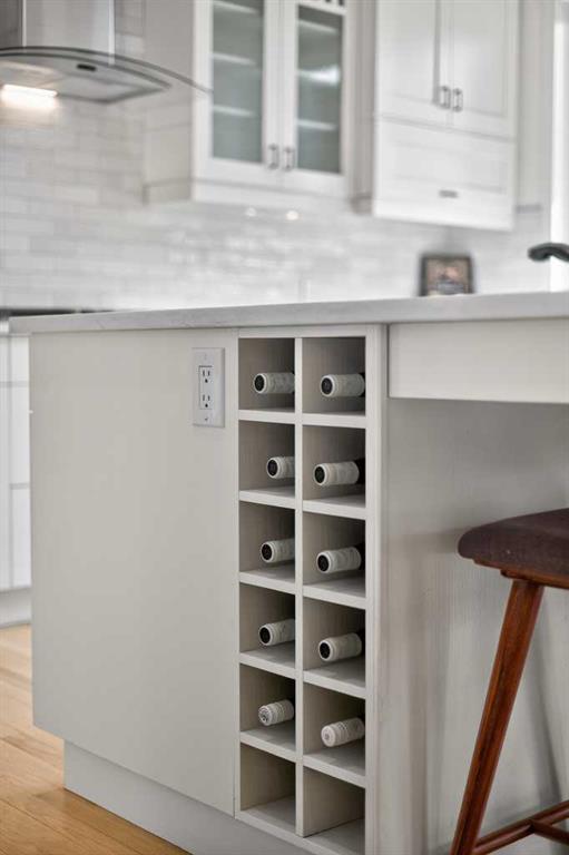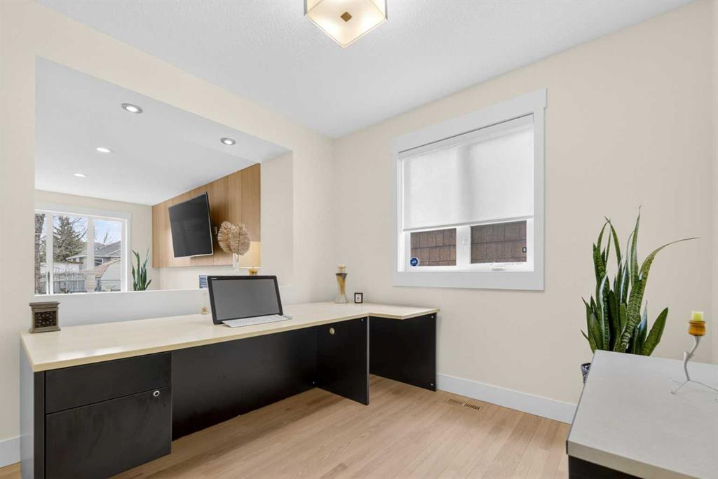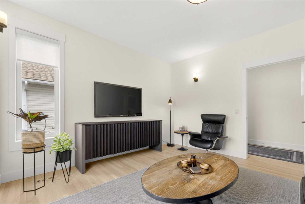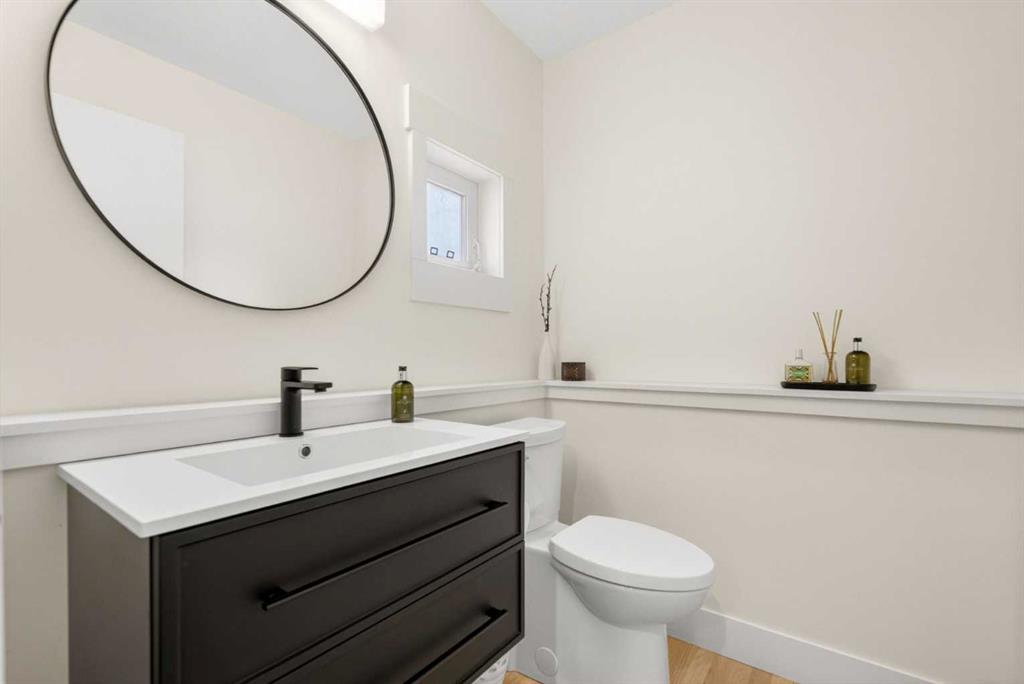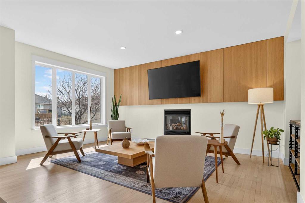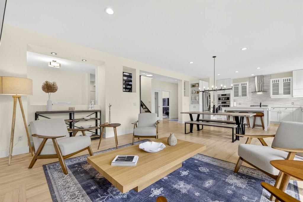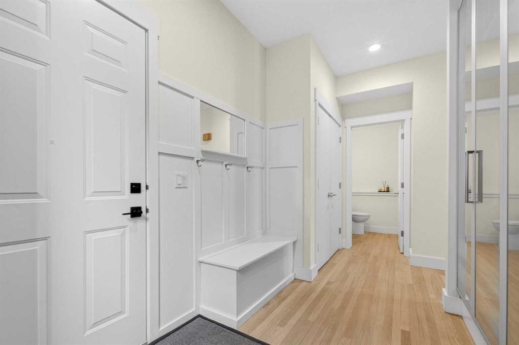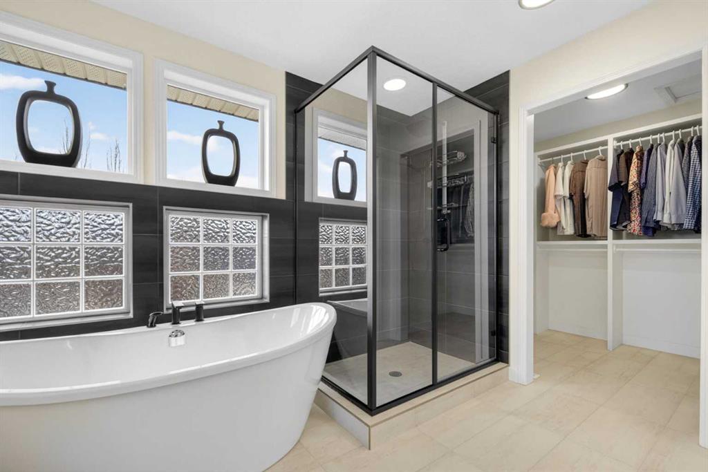 Welcome to this beautifully renovated 2,613 sq. ft. residence in the heart of Crossfield. Perfectly positioned on a quiet street backing onto a peaceful green belt, this home was extensively updated just two years ago to blend timeless craftsmanship with refined modern comfort. From the moment you arrive, the curb appeal is undeniable, highlighted by an oversized heated side-access garage, a new roof, freshly stained cedar shakes, and a uniquely finished driveway with colored concrete and an exposed aggregate border. Inside, a thoughtfully designed mudroom offers built-in wardrobe storage, bench seating, and wainscoting for a functional everyday entrance. The main floor showcases site-finished red oak hardwood with a white-washed matte finish, complemented by a stunning open-riser fir staircase and striking vertical slat feature walls. The great room is anchored by a gas fireplace with a light oak feature wall. French doors lead to the private south facing backyard oasis, complete with mature trees, underground sprinklers, and a paving stone patio with a cedar pergola. An additional flex room on the main floor offers versatility as a formal sitting area, private den, or guest space. At the heart of the home is a chef-inspired kitchen featuring a large island with a prep sink, a second sink overlooking the backyard, high-end built-in appliances, a gas cooktop, quartz countertops, solid oak cabinetry with under-cabinet lighting. The upper floor is tailored for family living, offering four spacious bedrooms. The newly renovated ensuite serves as a luxurious retreat with double vanities, a freestanding soaker tub, full tile shower, and a walk-in closet with custom shelving. The fully renovated laundry room is equally well appointed with a sink and custom storage. The unfinished basement presents an excellent opportunity to customize additional living space to suit your needs, while the rest of the home is truly move-in ready with updated plumbing fixtures and designer lighting throughout. This beautifully appointed property is a rare offering in a friendly family community. Book your private tour today and experience everything this exceptional home has to offer.